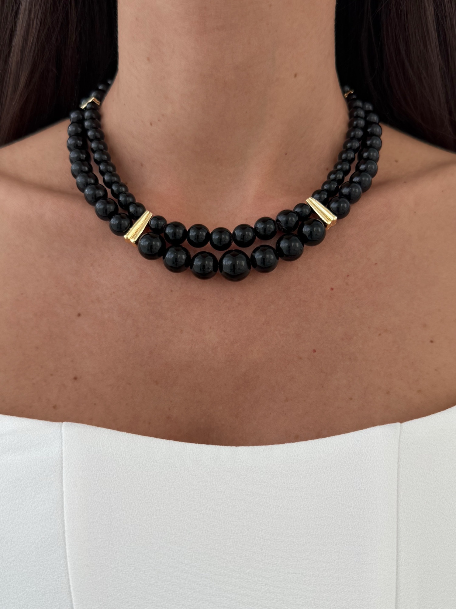 Özel Seri Siyah Top Detay İkili Gold Kolye
