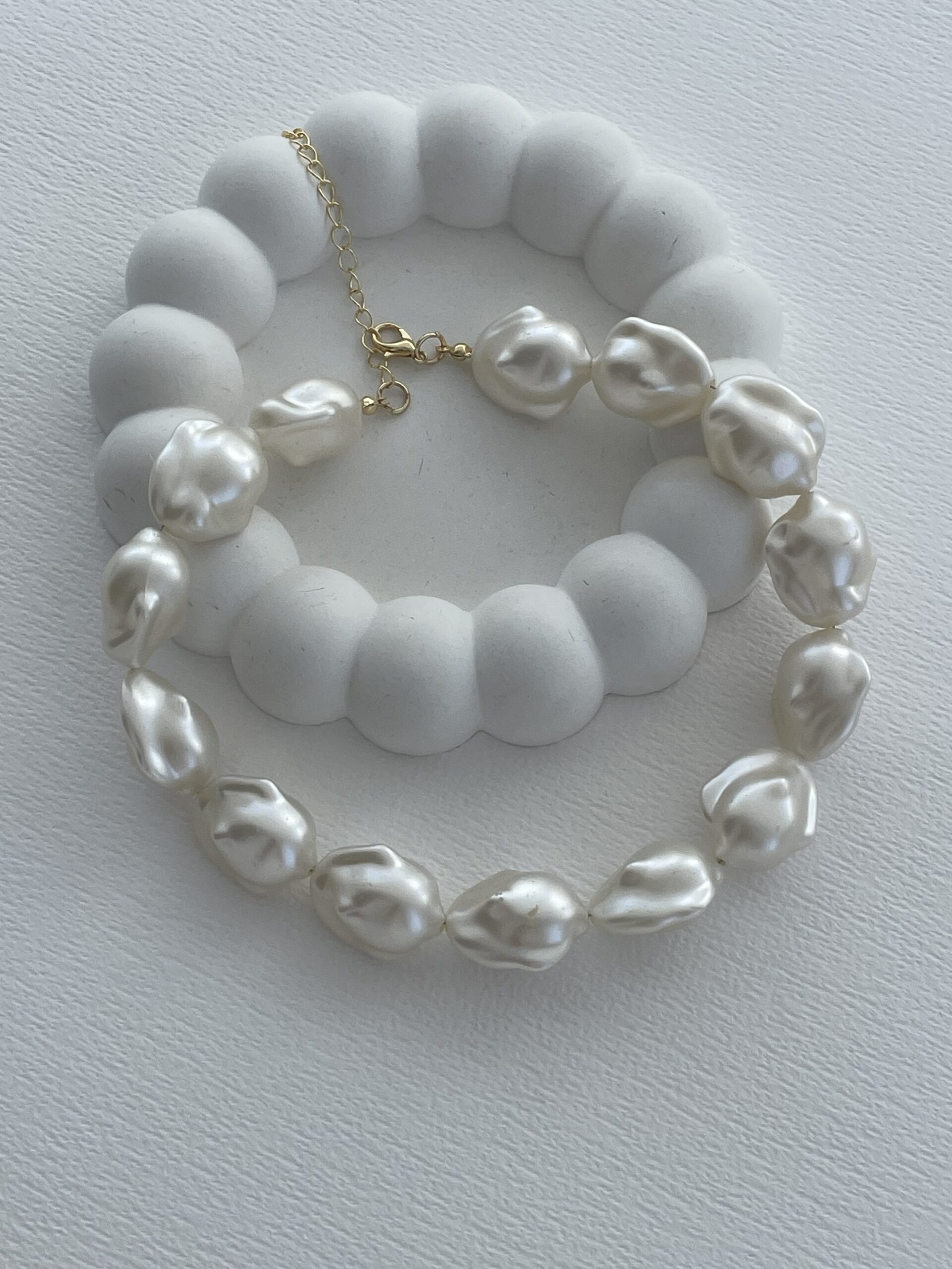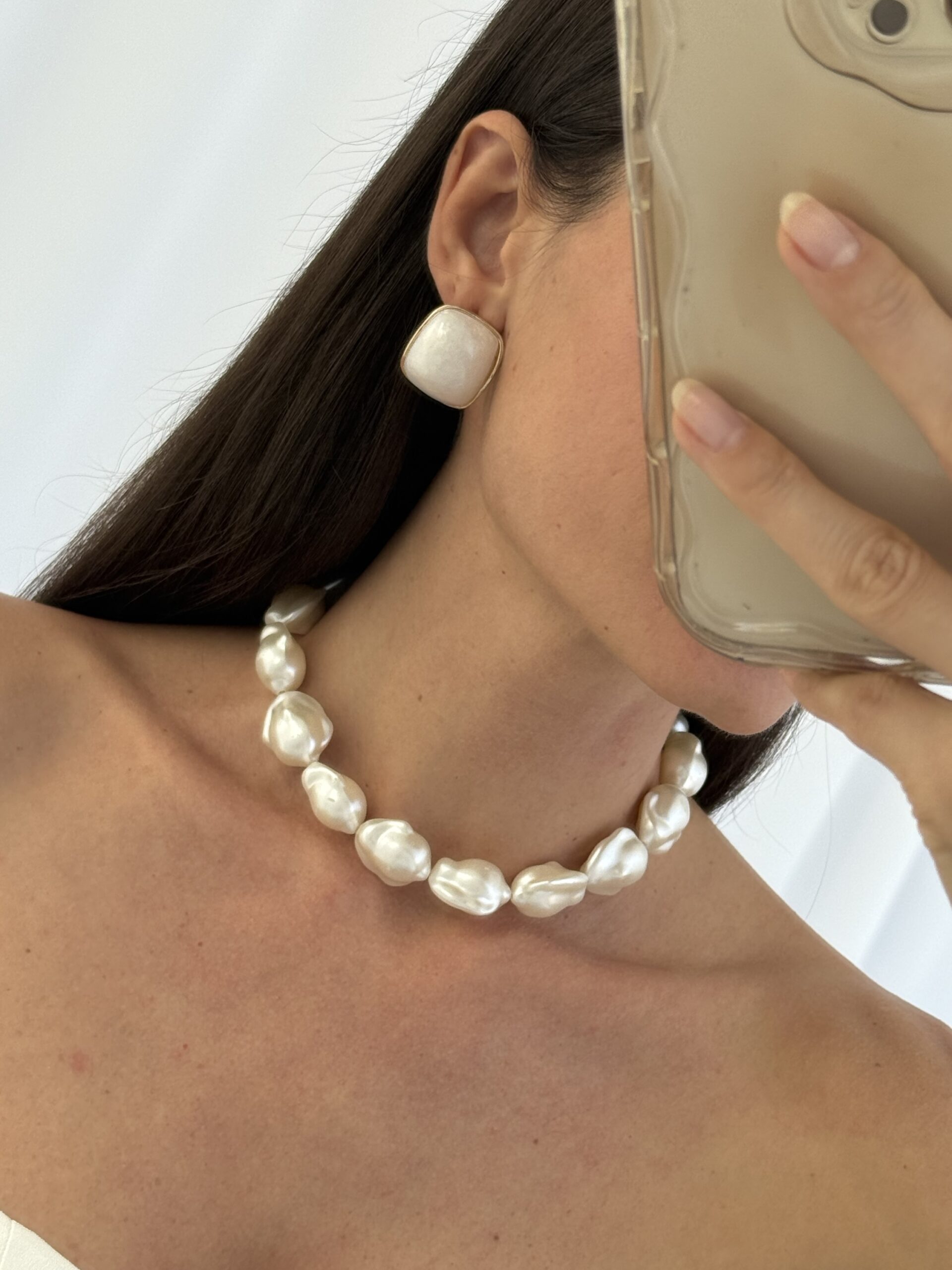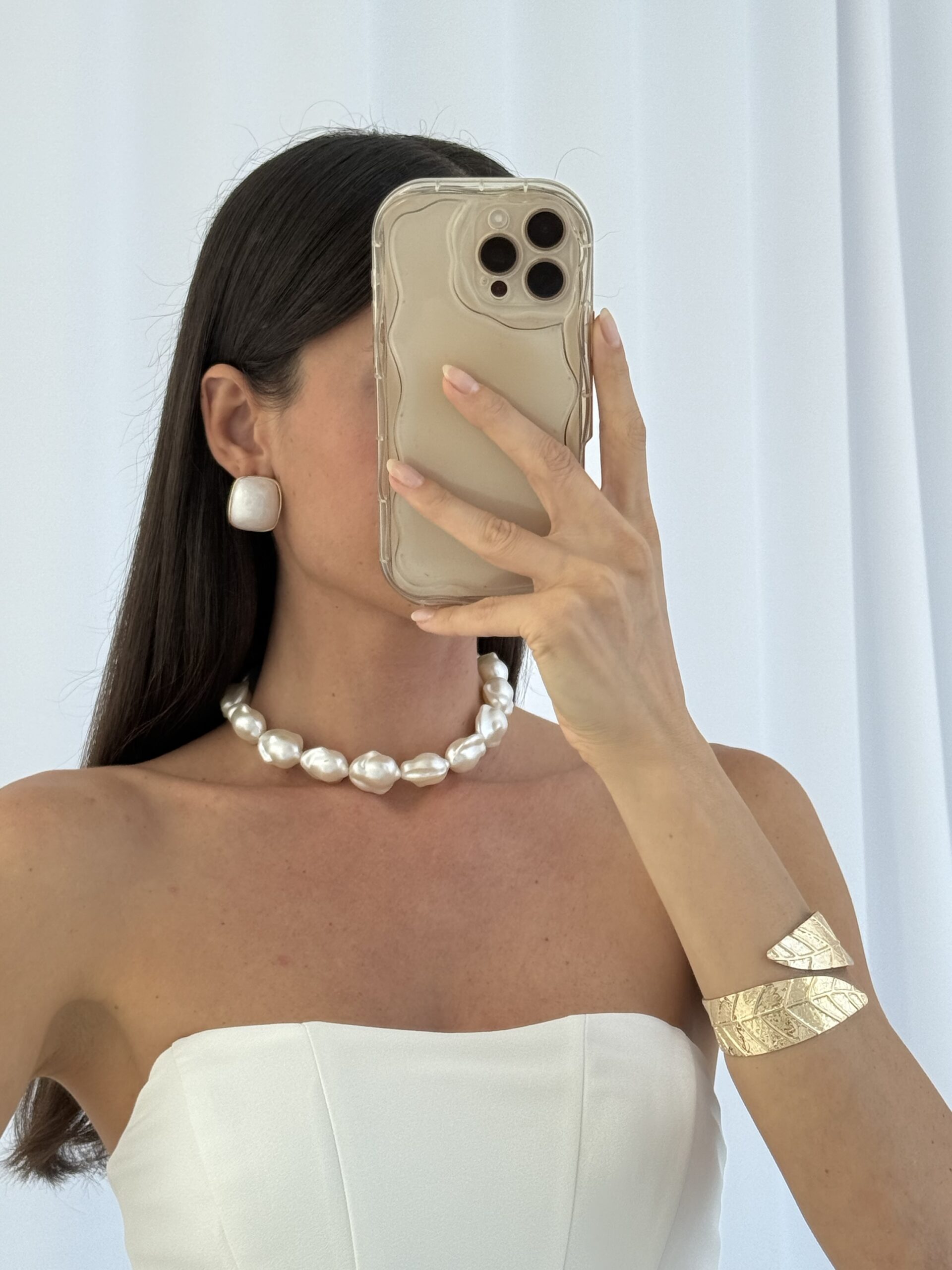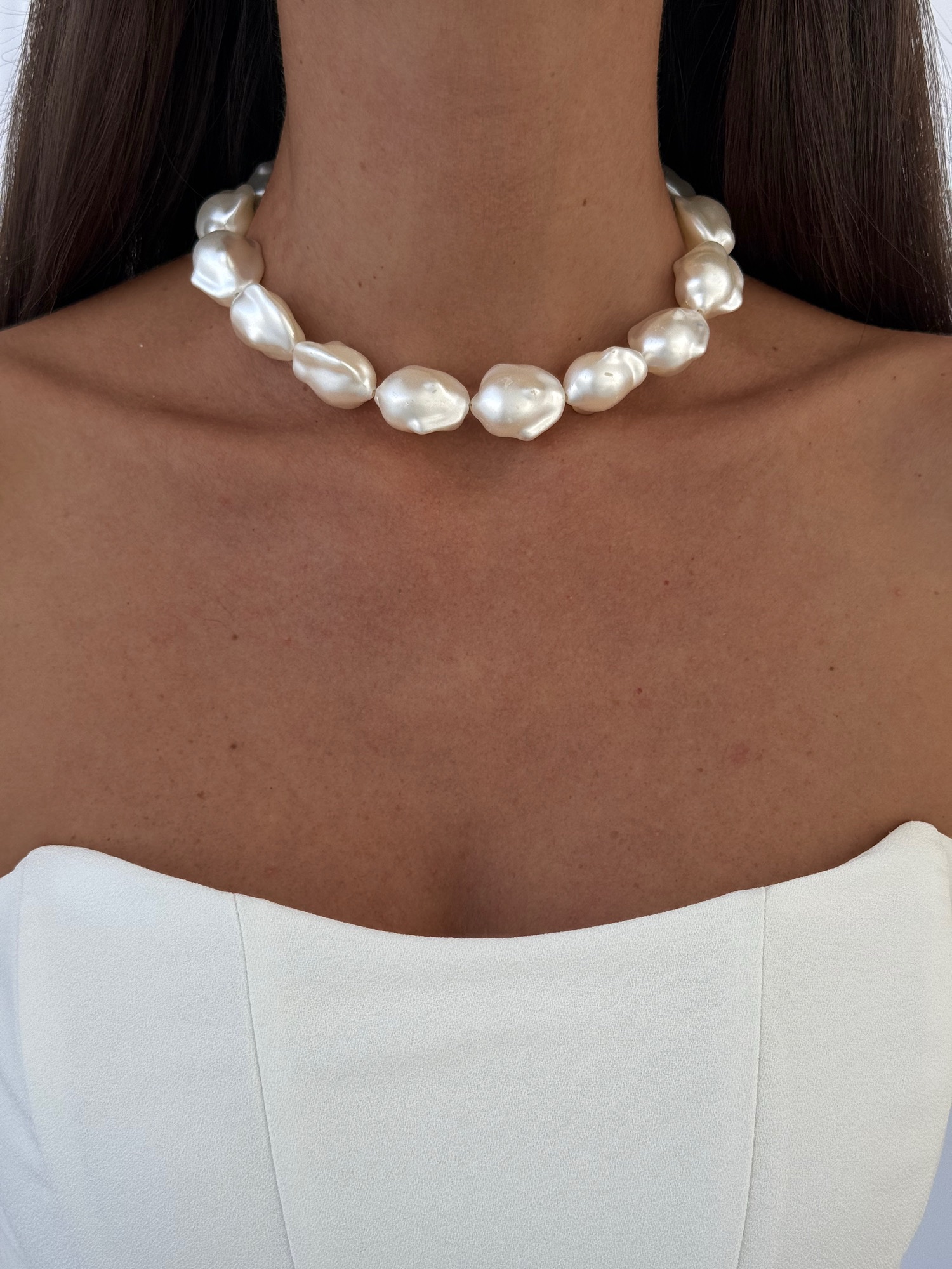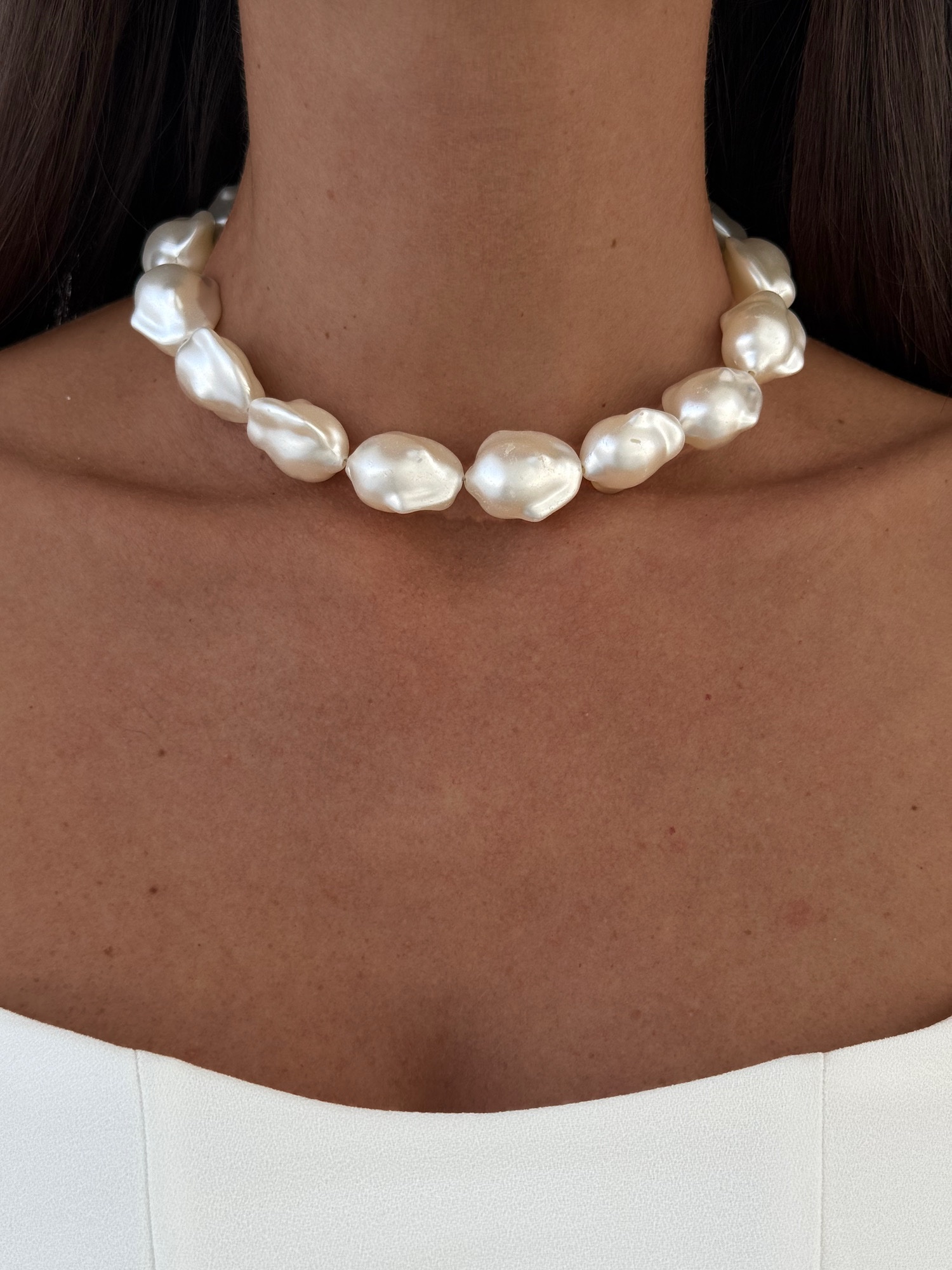 Özel Seri Büyük Barok İncili Gold Choker Kolye