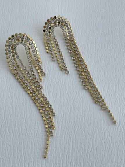 Özel Seri Zirkon Taşlı Gold Ezme Zincir Küpe