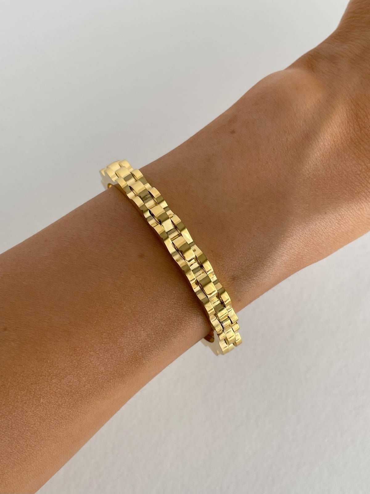 Çelik Gold Kordon Tasarım Kelepçe Bileklik