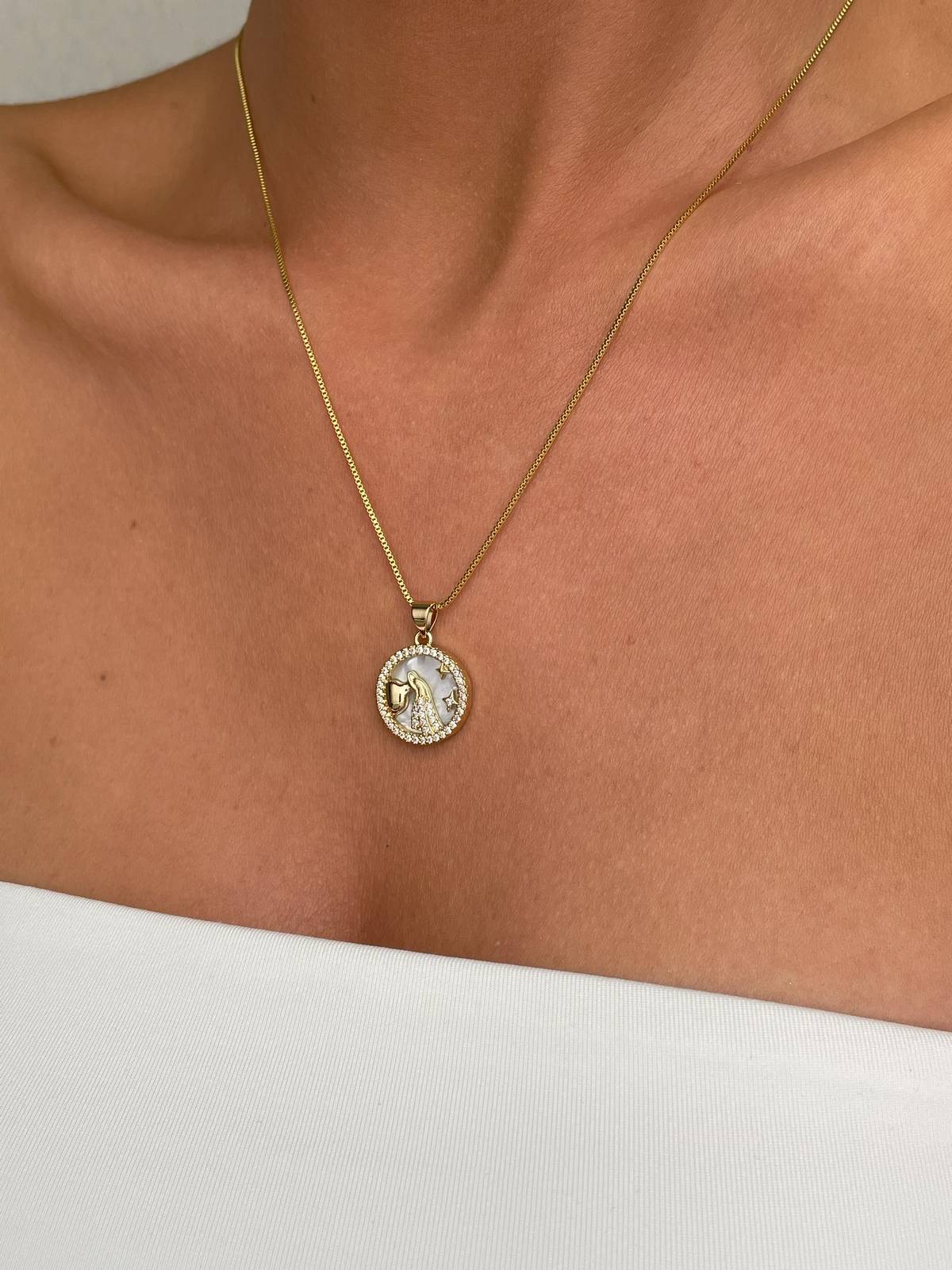 Kova Burç Tasarımlı Altın Kaplama Kolye