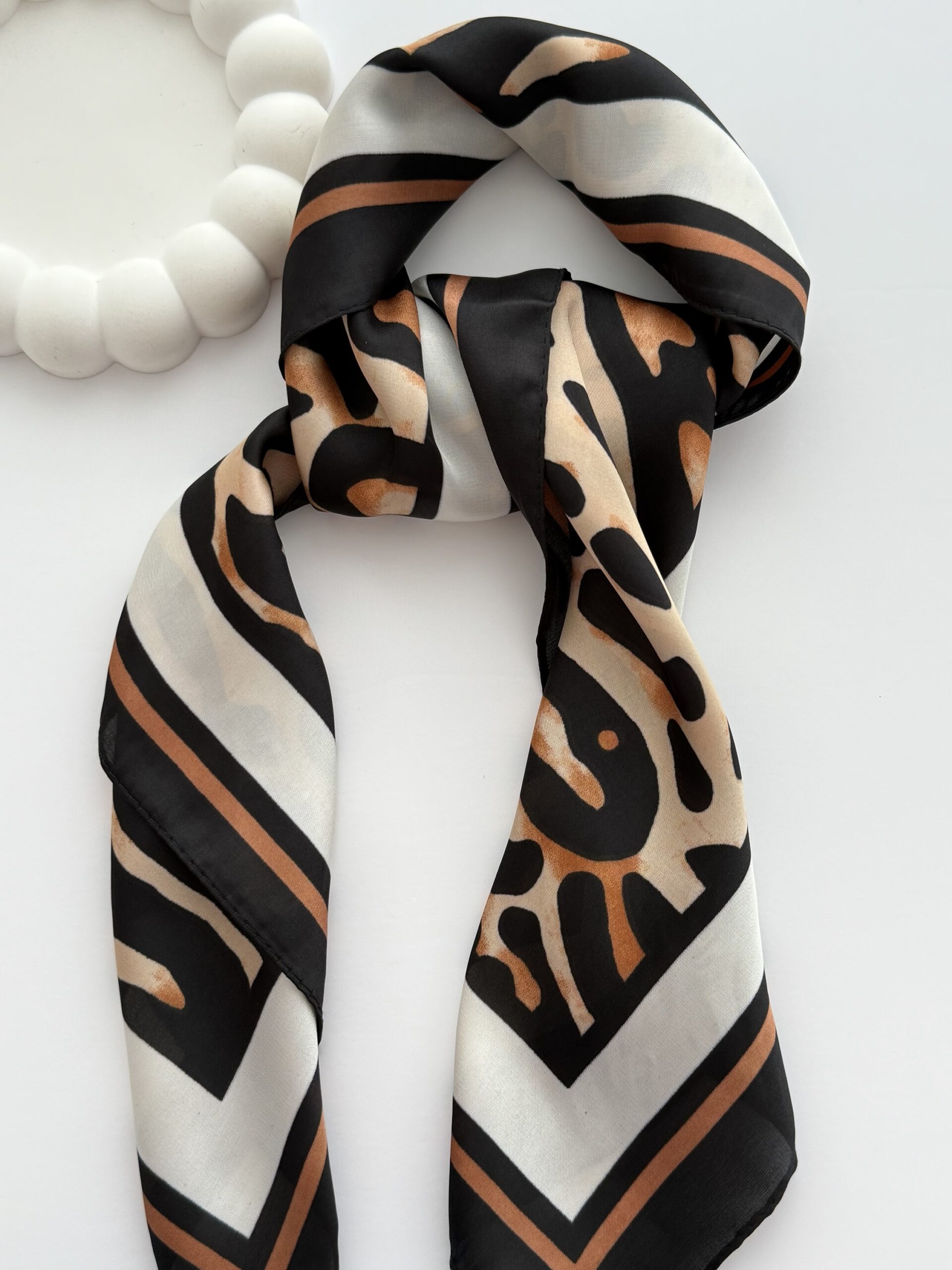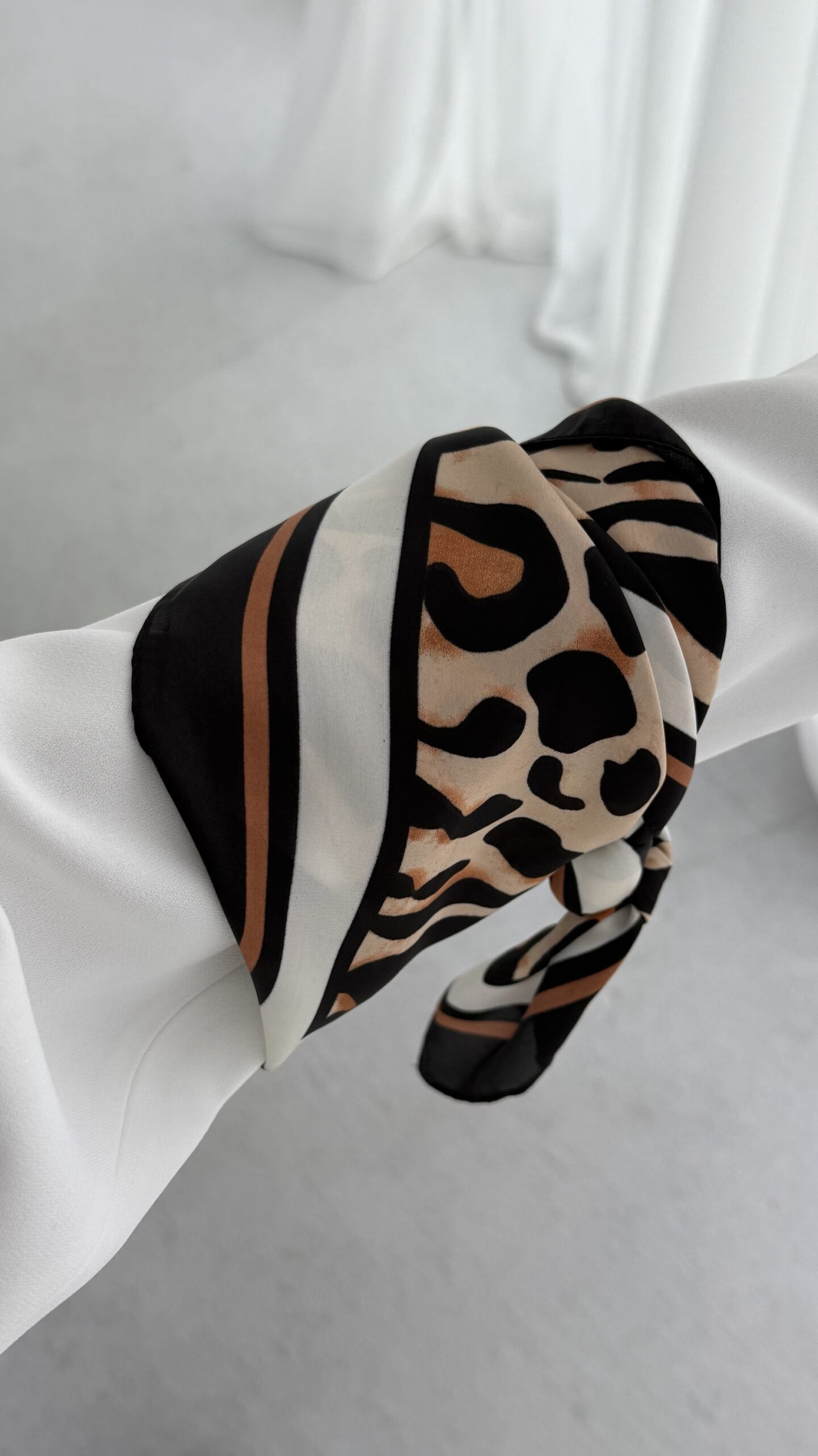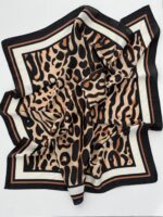 Leopar Desen İnce Kahverengi Biyeli Fular