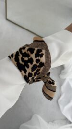 Leopar Desen Kalın Kahverengi Biyeli Fular