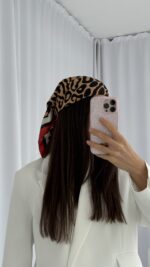 Leopar Desen Kalın Kırmızı Biyeli Fular