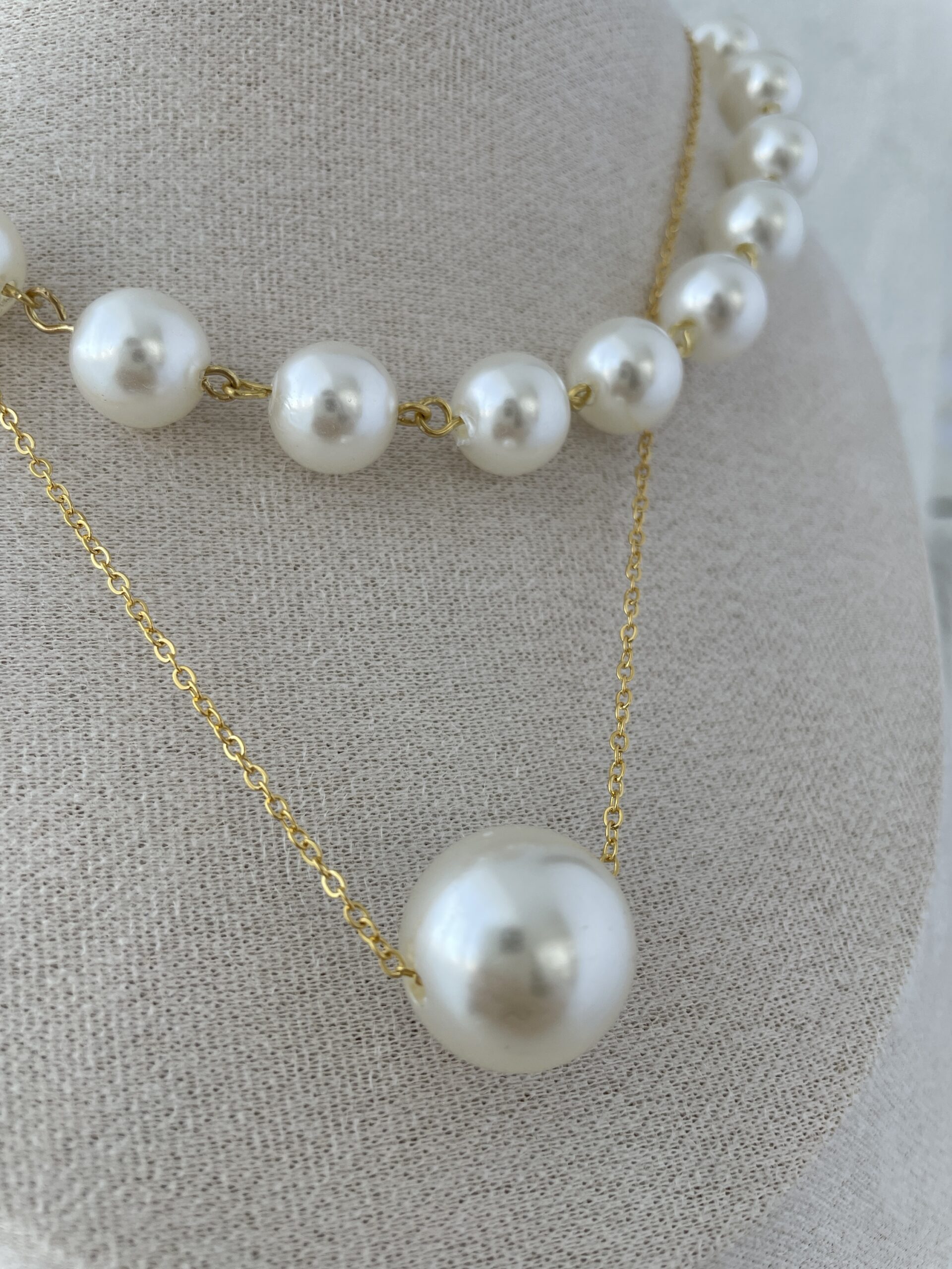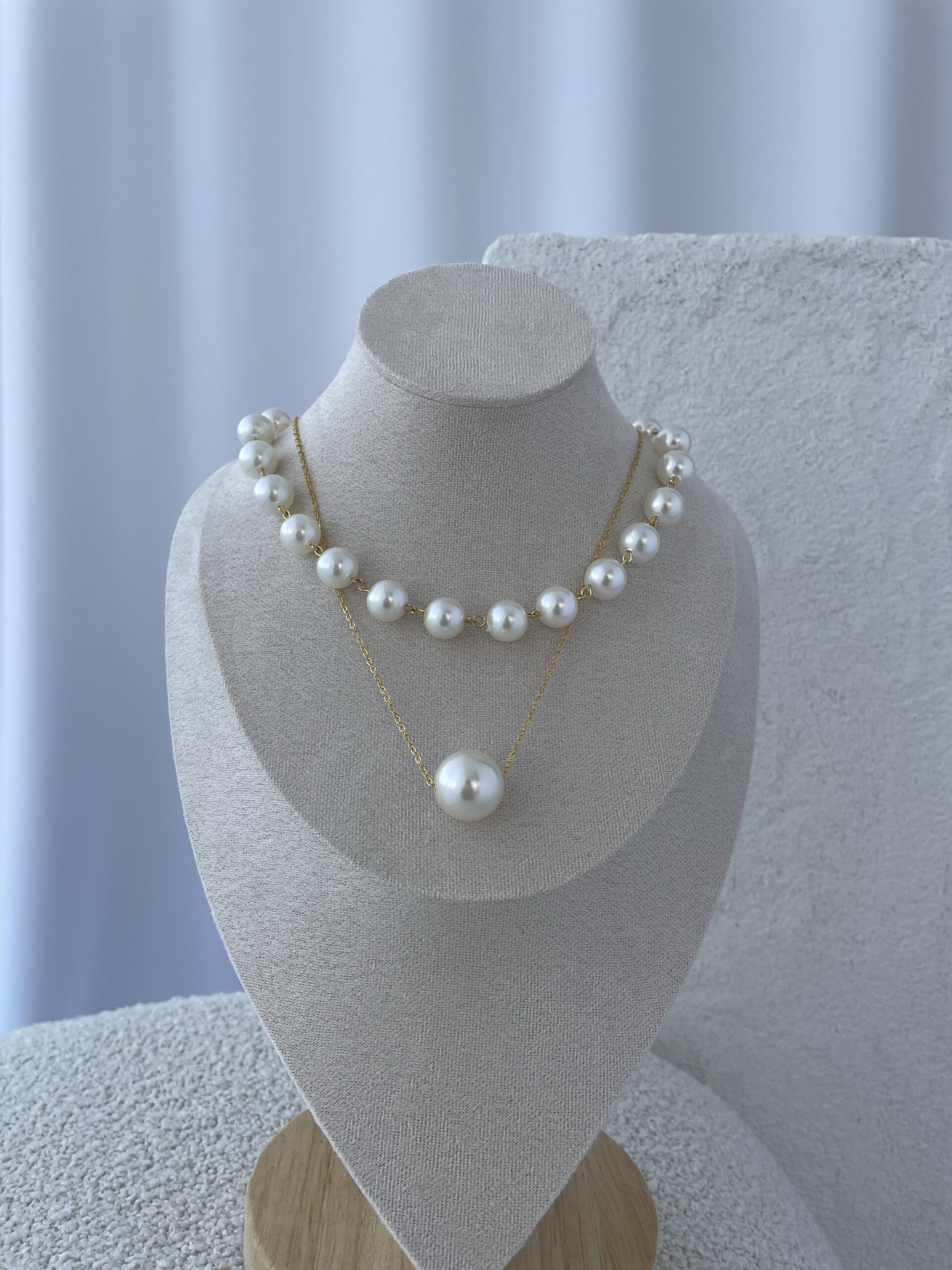 LP Özel Üretim Gold Detaylı İkili İnci Kolye