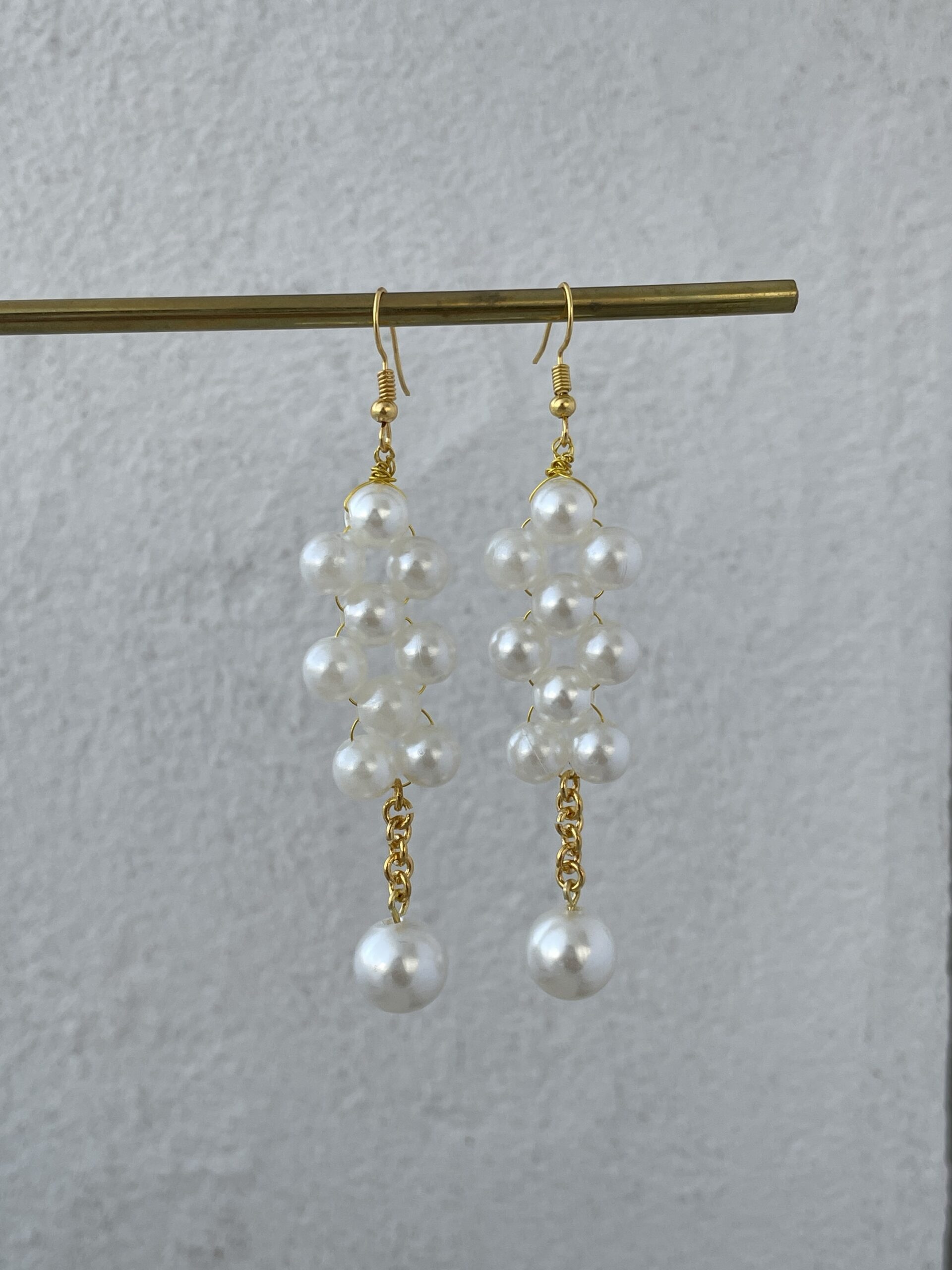 LP Özel Üretim Gold Detaylı Örgü İnci Küpe