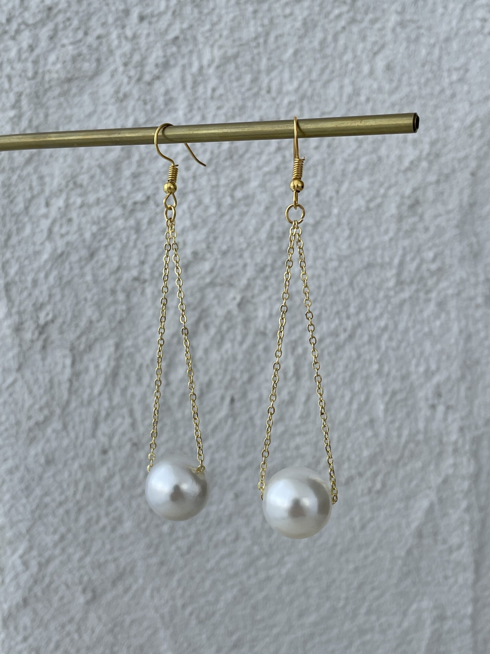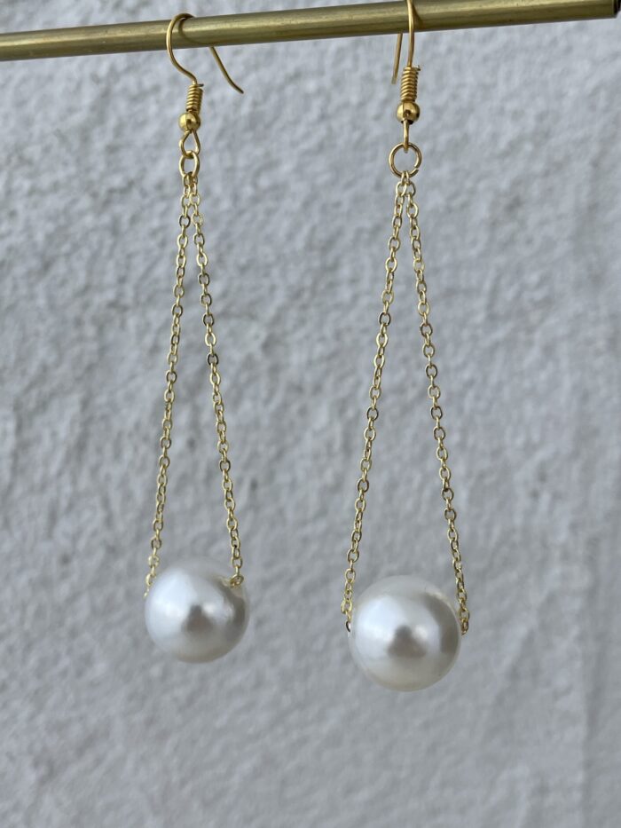 LP Özel Üretim Gold Zincir Sallantılı İnci Küpe