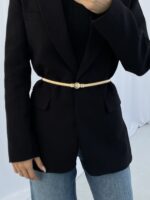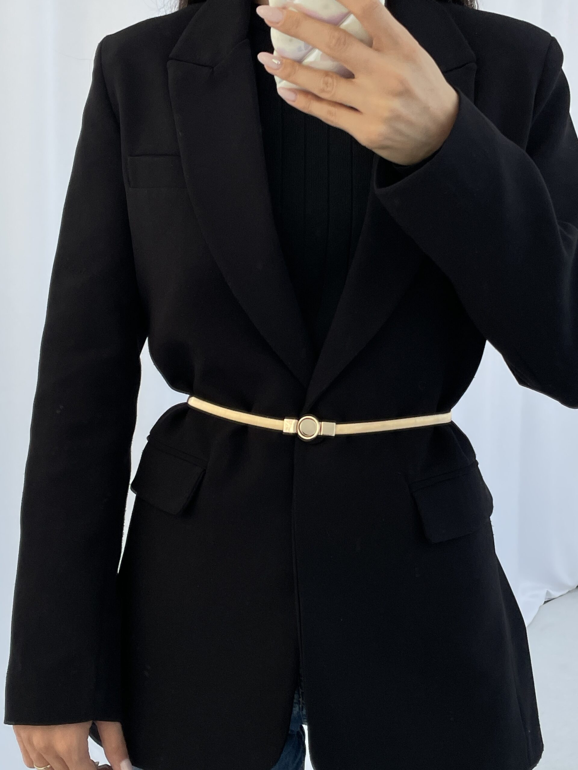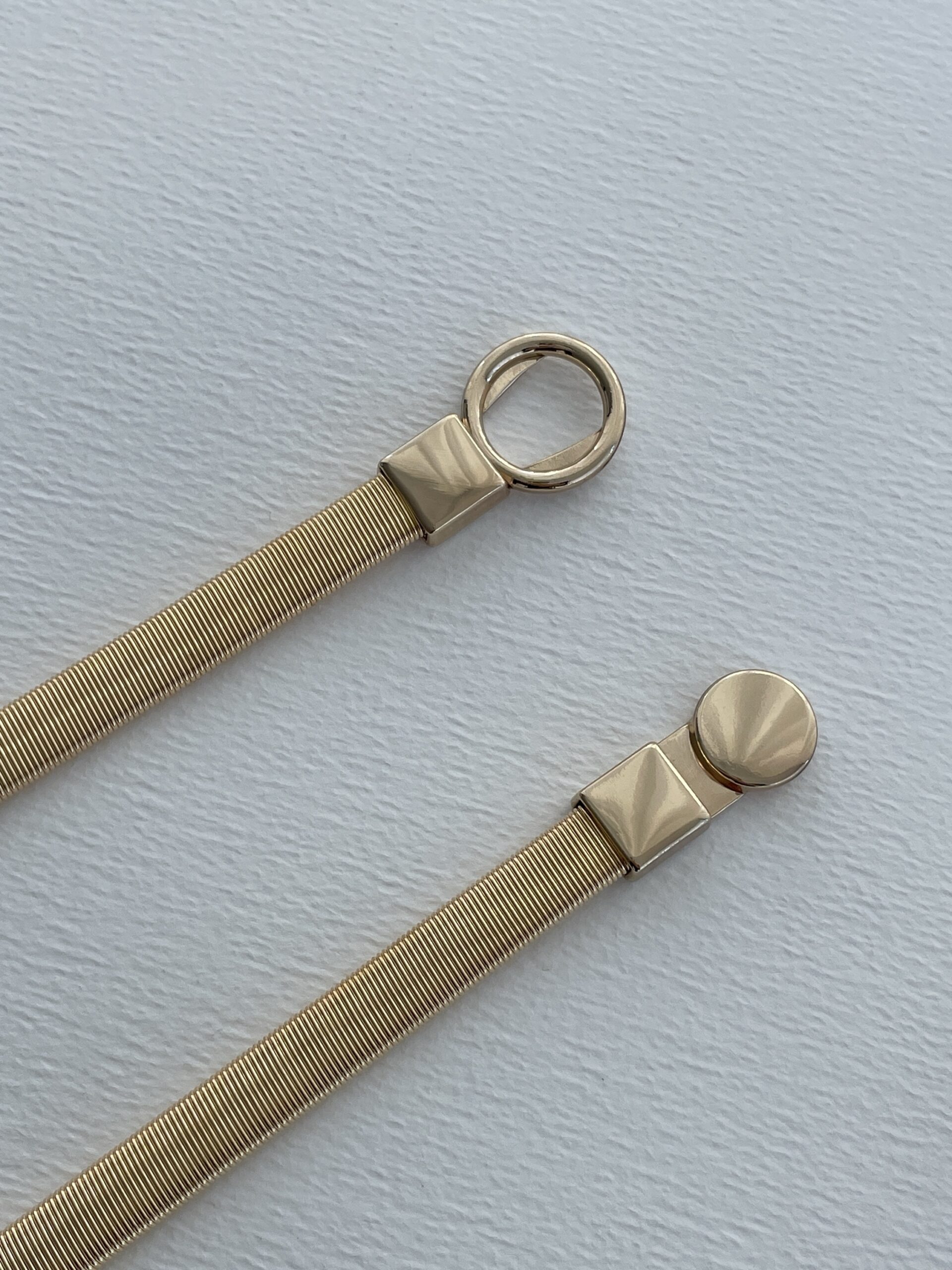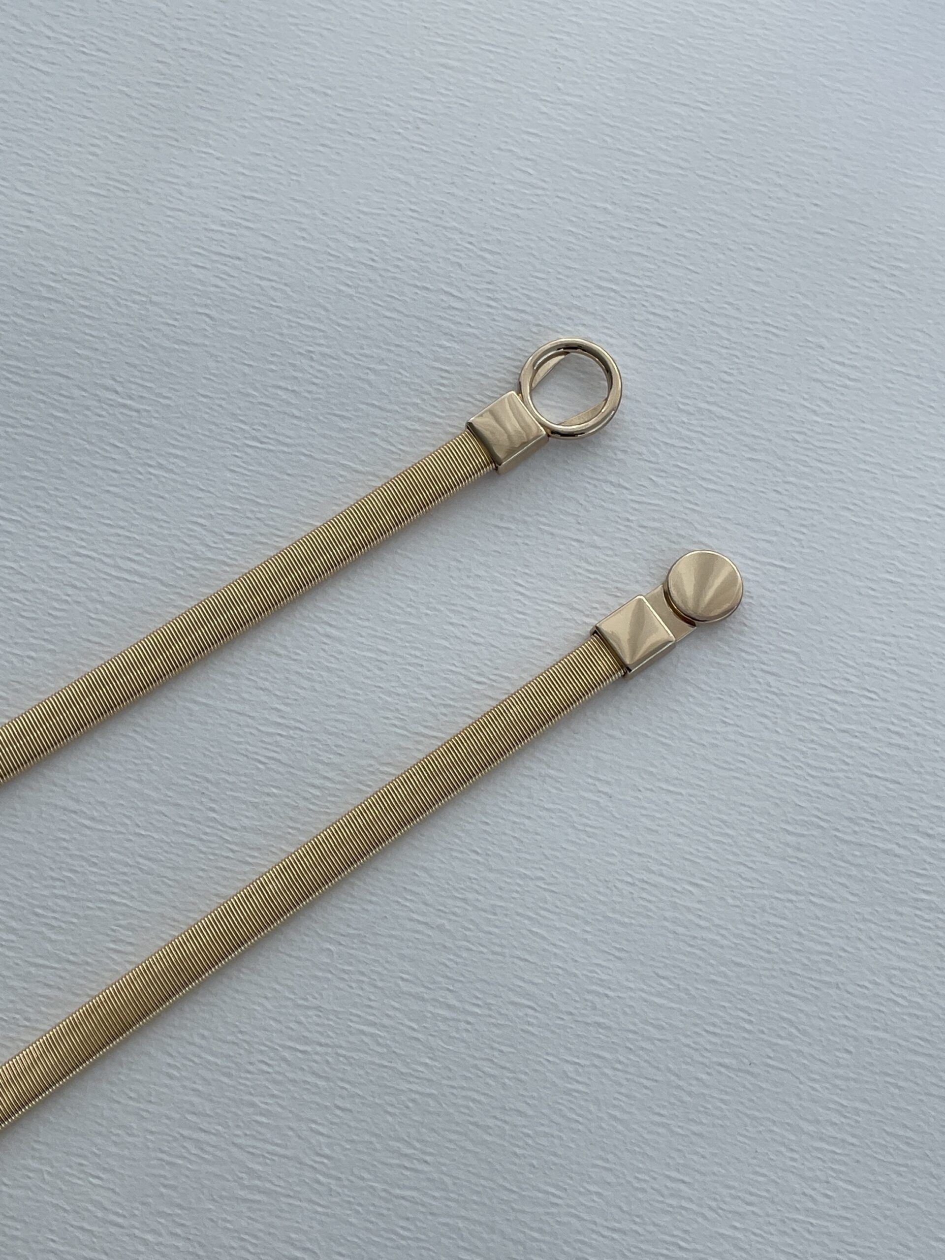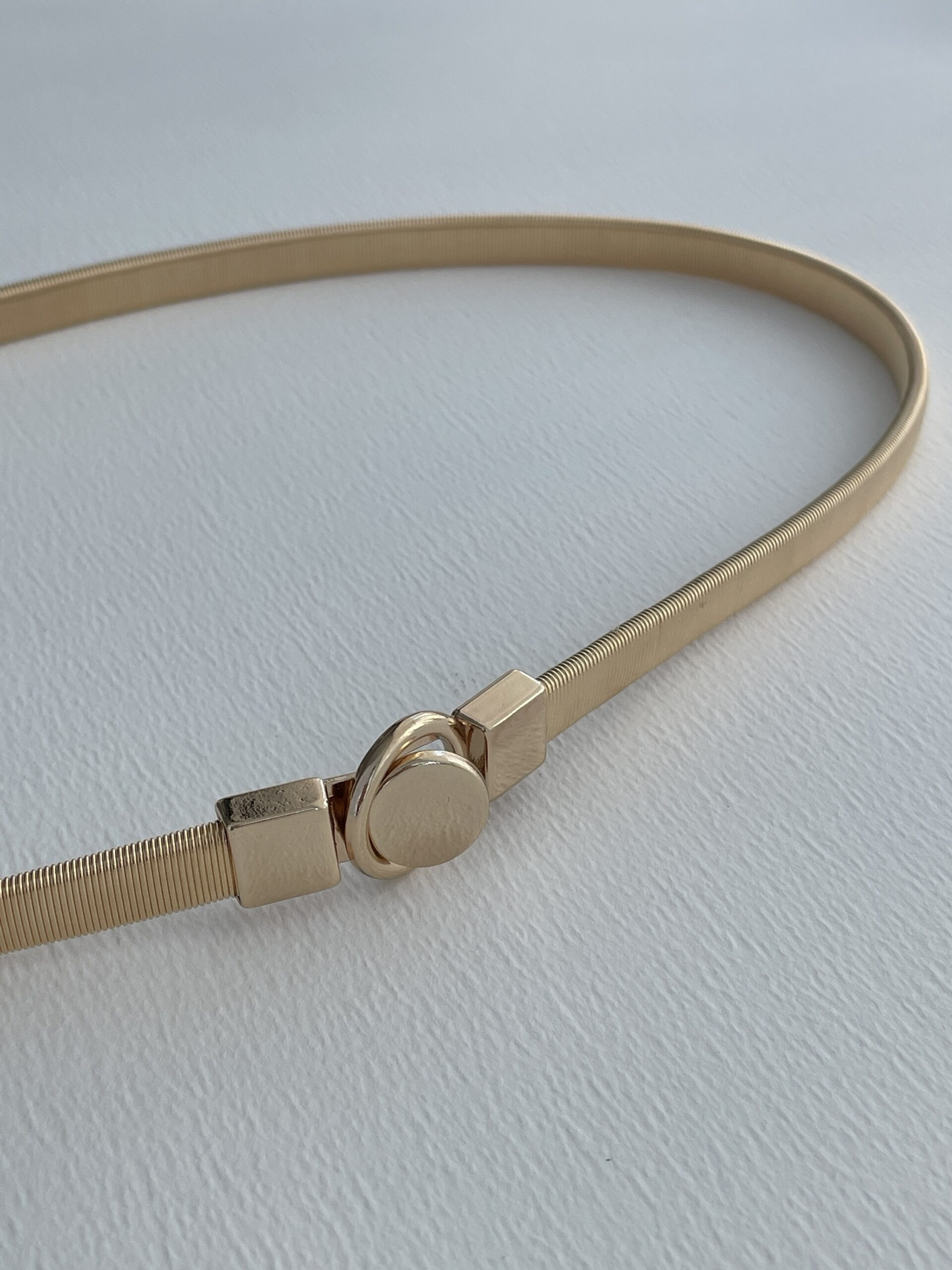 Mini Daire Metal Tasarım Tırtık Desen Lastikli Gold Kemer