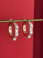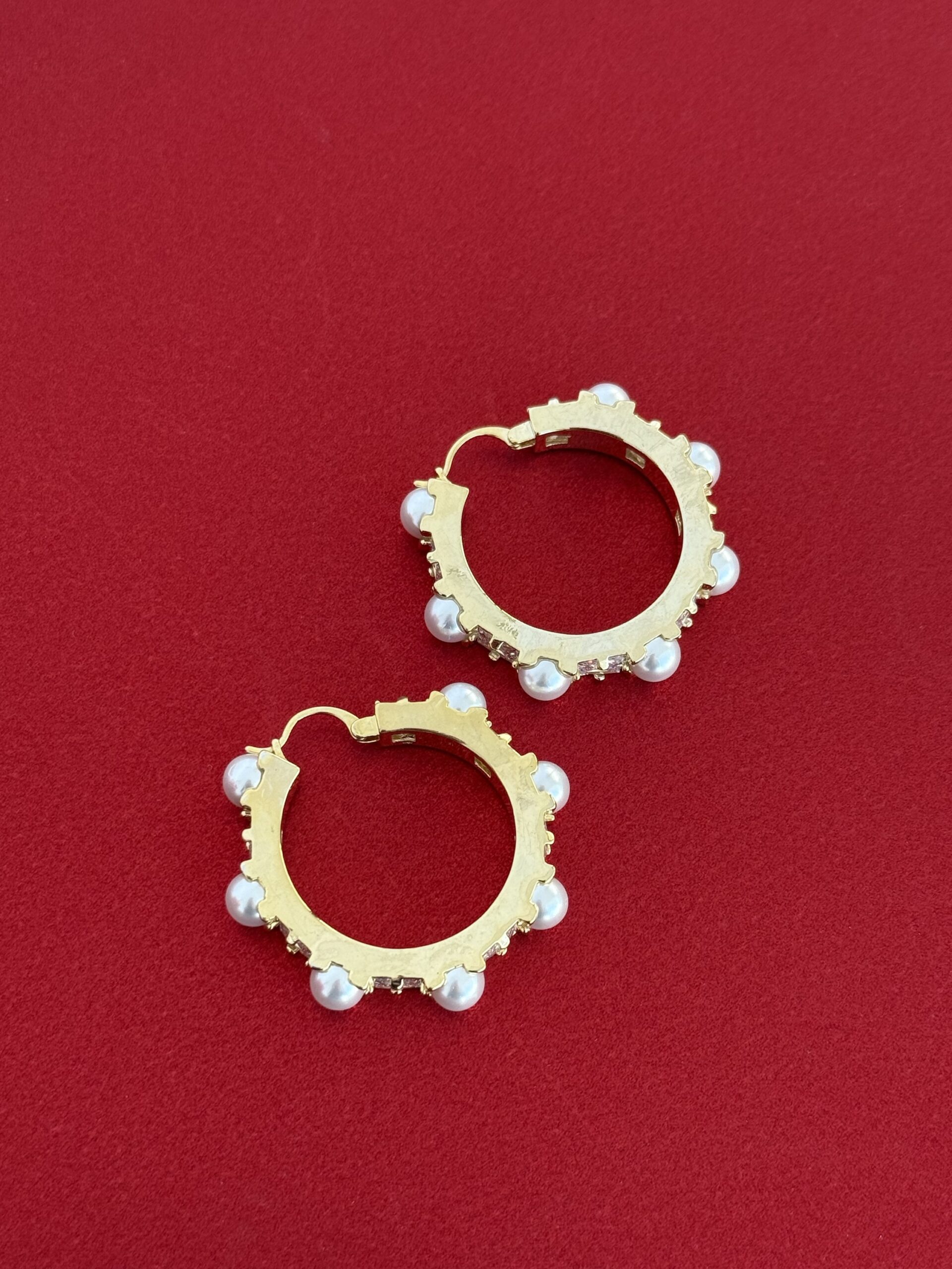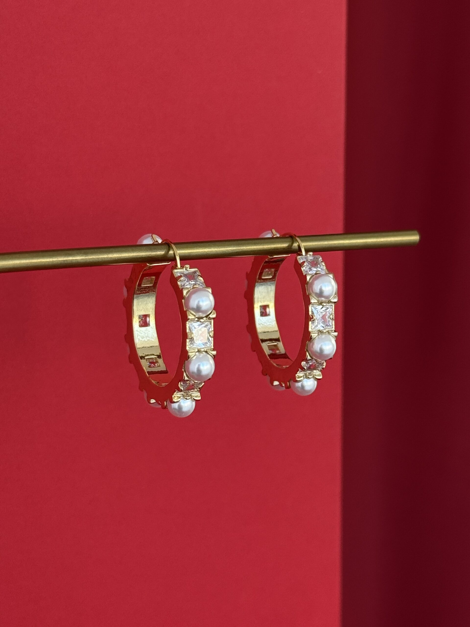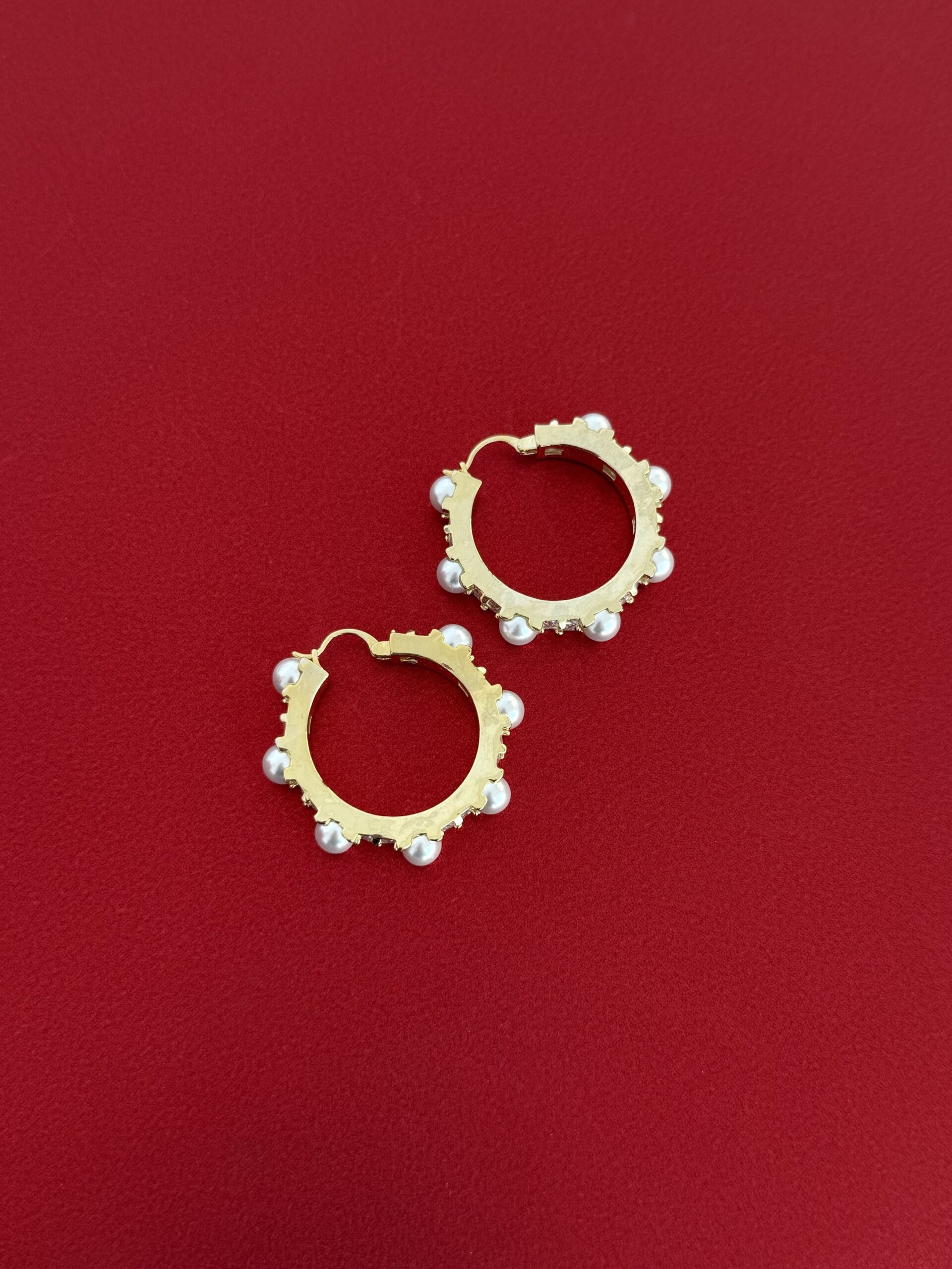 NS-Baget Taş İnci Detay Halka Gold Küpe
