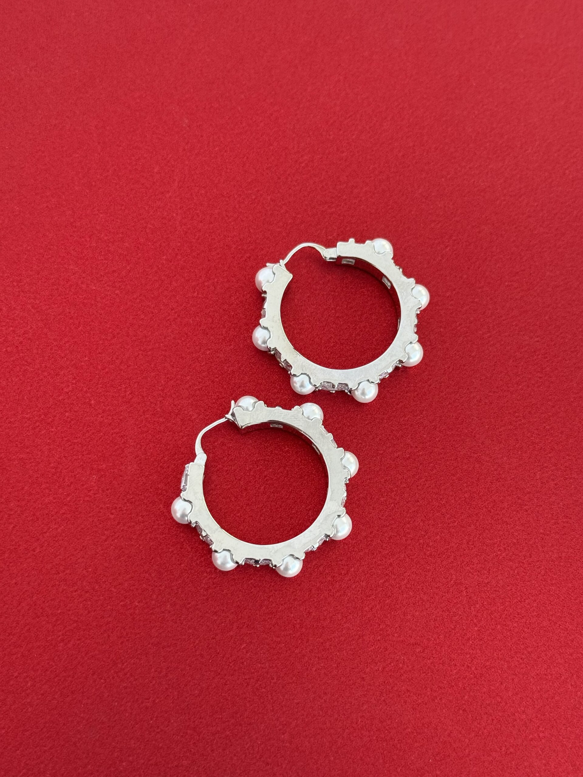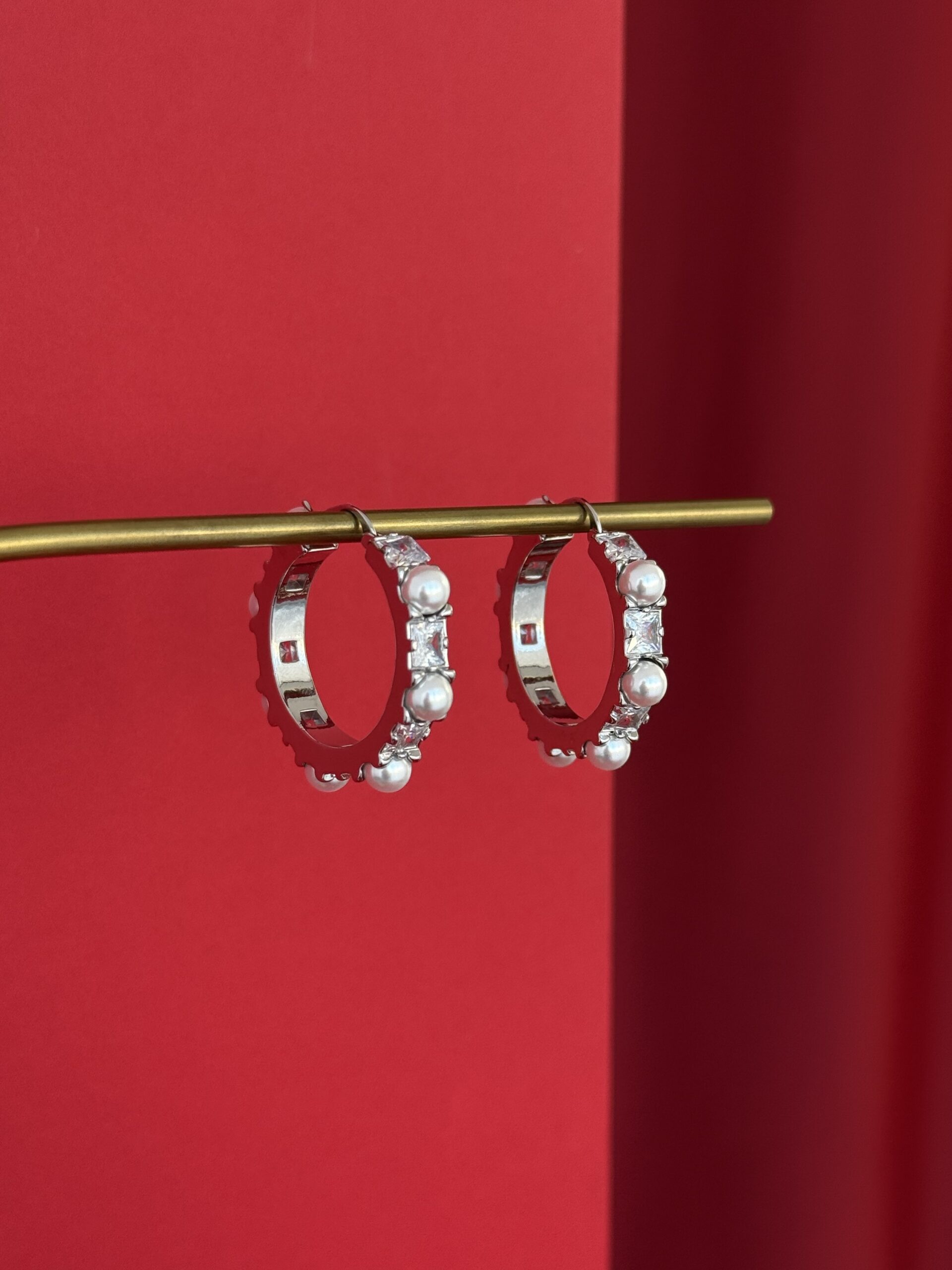 NS-Baget Taş İnci Detay Halka Gümüş Küpe