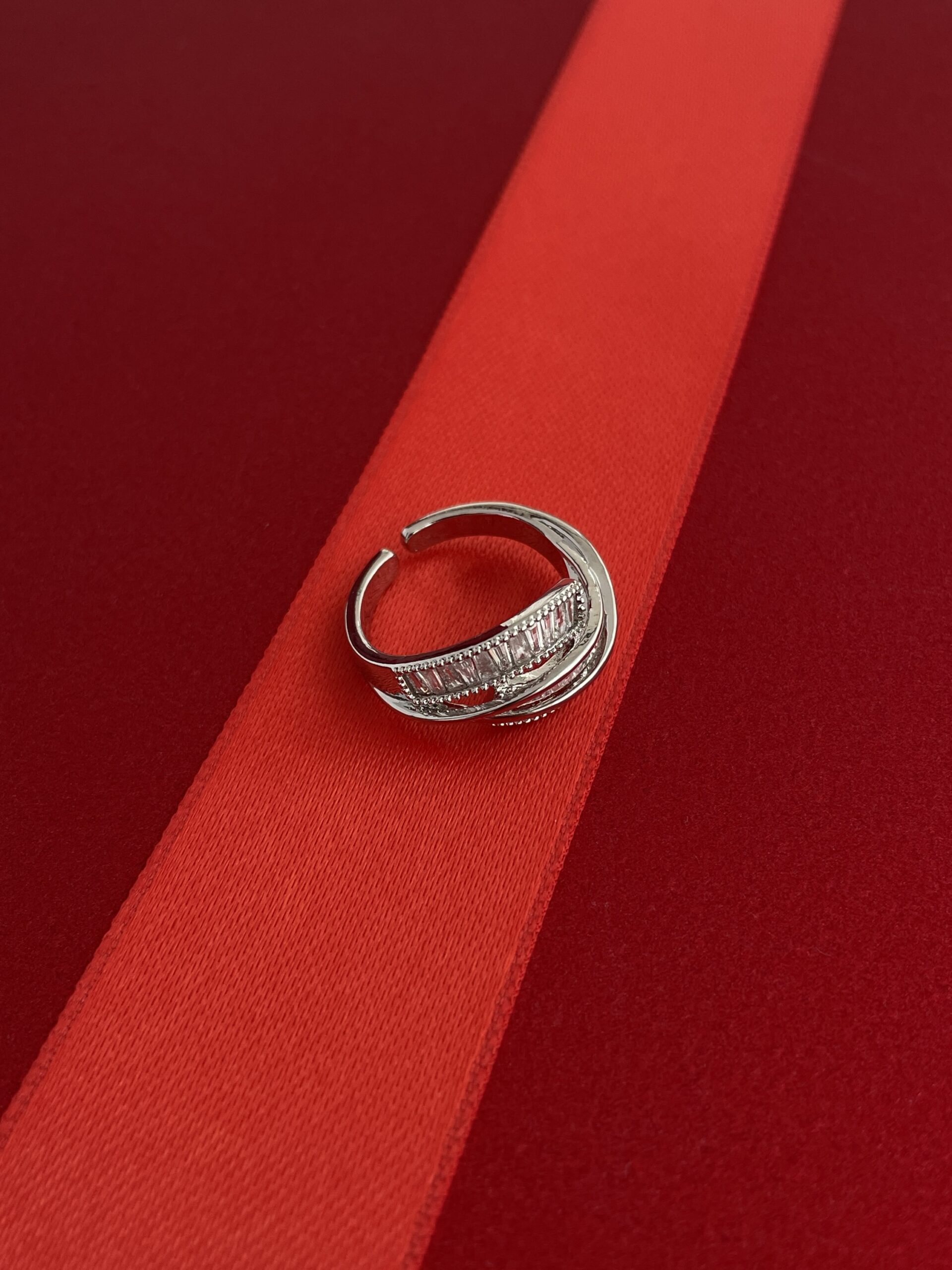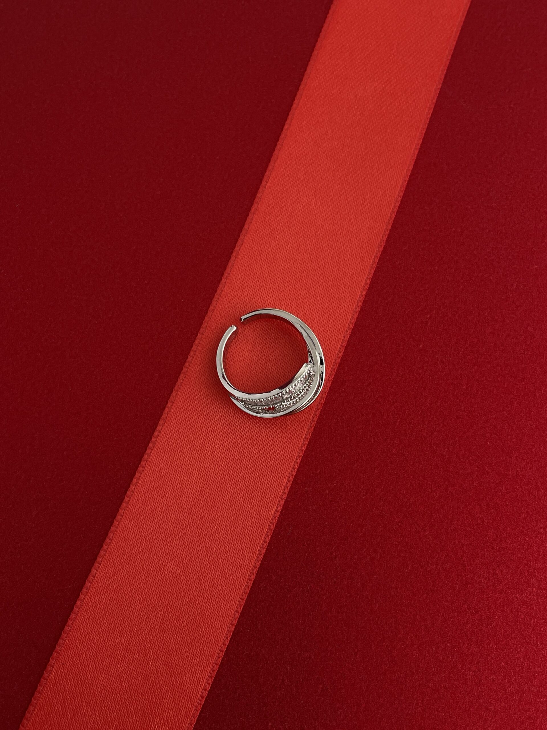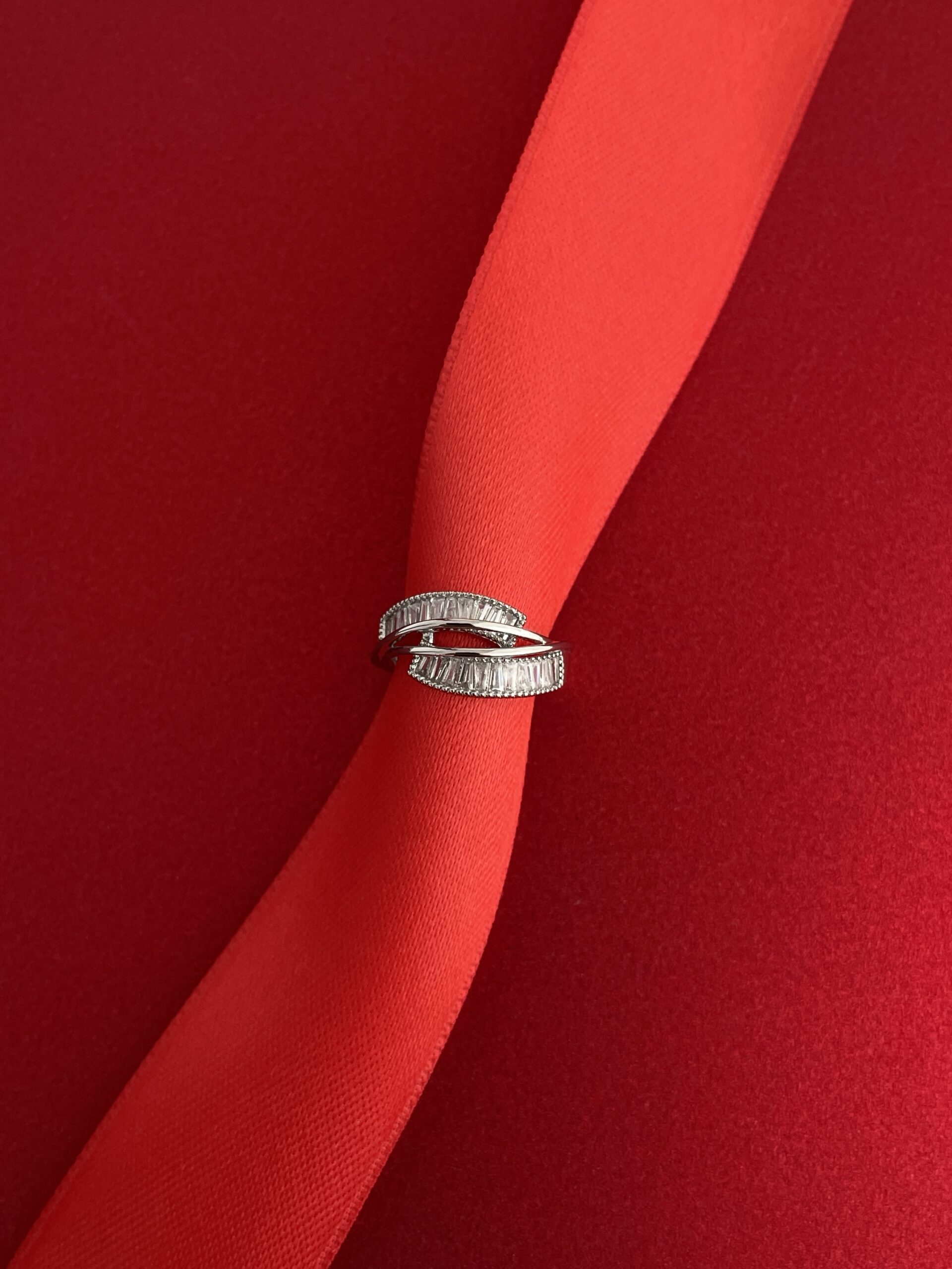NS-Baget Taşlı İkili Tasarım Ayarlanabilir Gümüş Yüzük