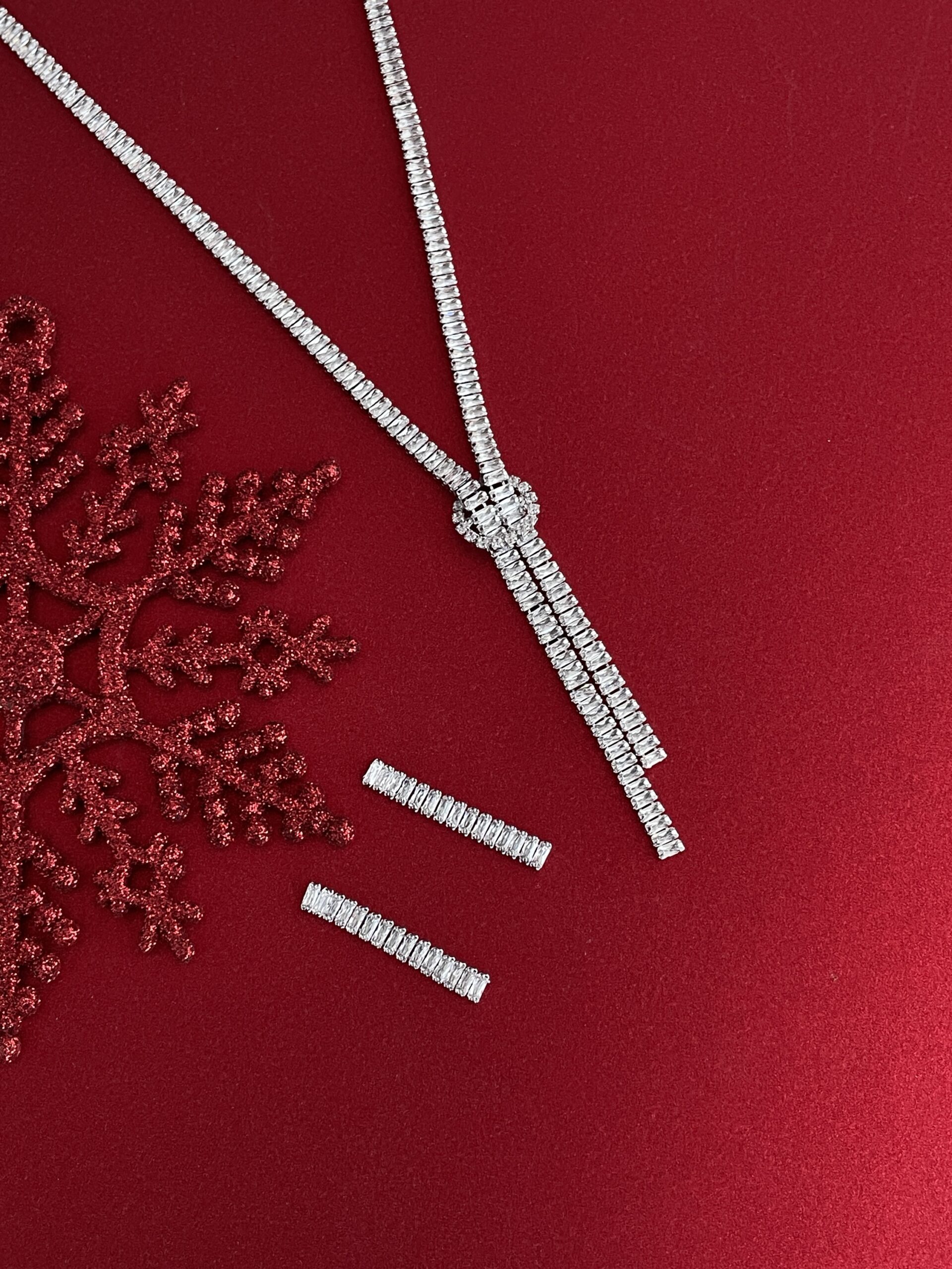 NS-Baget Taşlı Suyolu Tasarım Gümüş Kolye