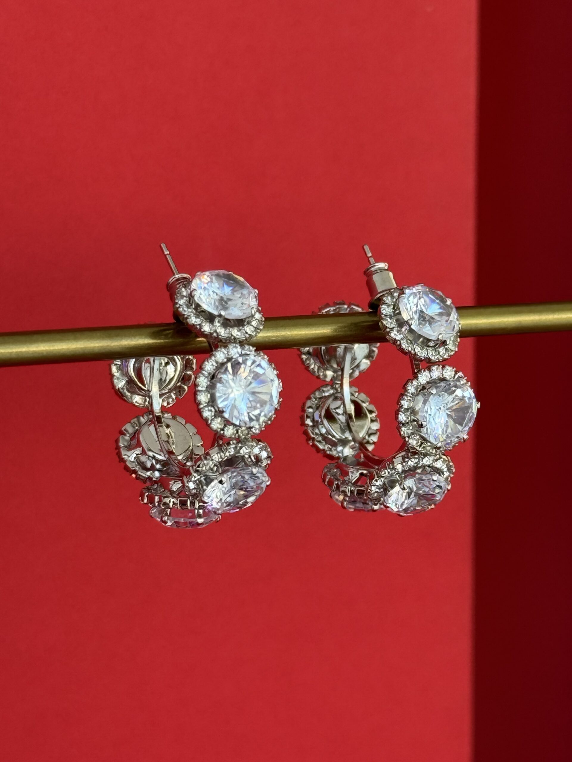 NS-Çevresi Zirkon Taş Altılı Halka Gümüş Küpe
