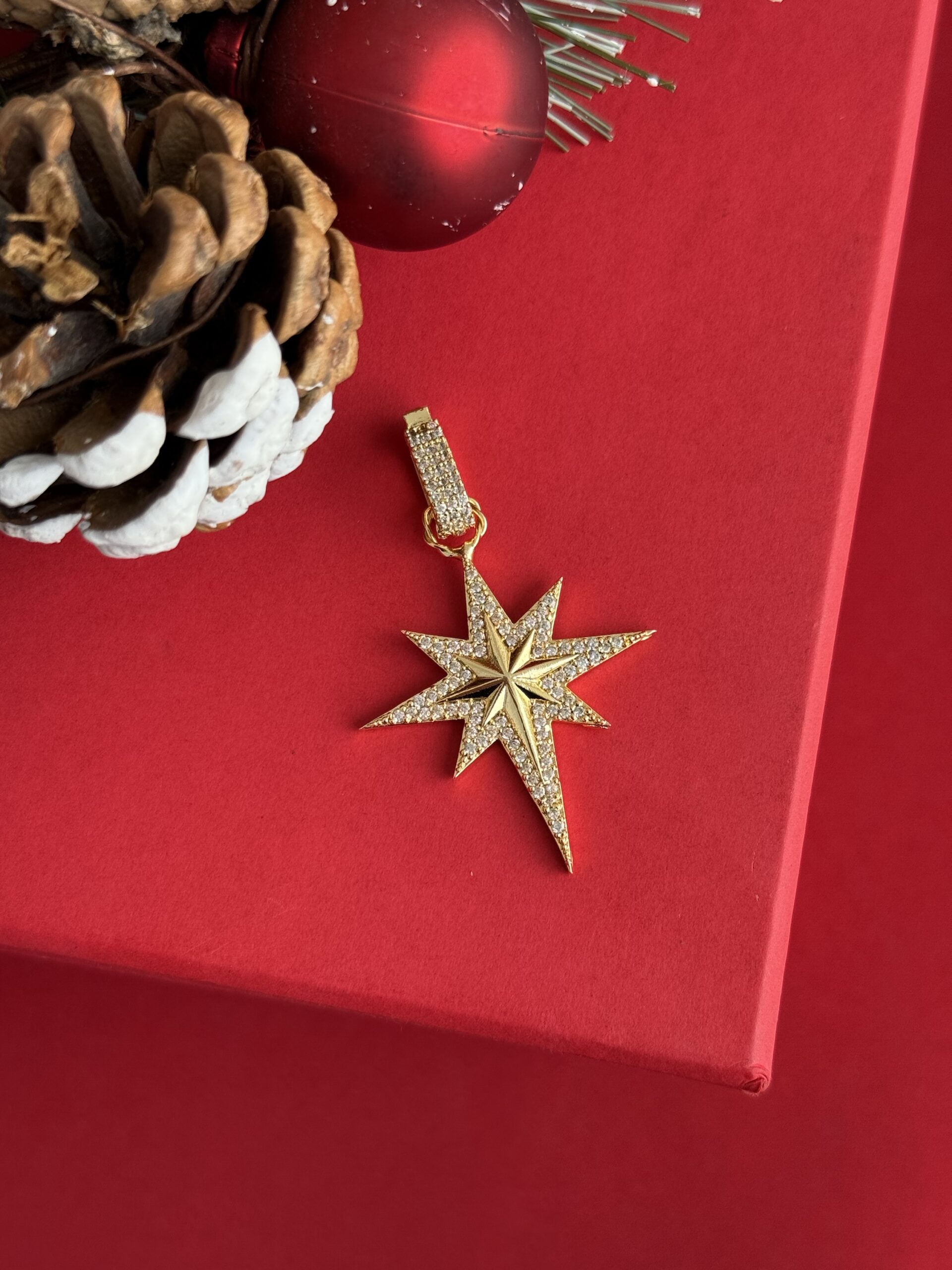 NS-Çevresi Zirkon Taş Kuzey Yıldızı Gold Charm Uç