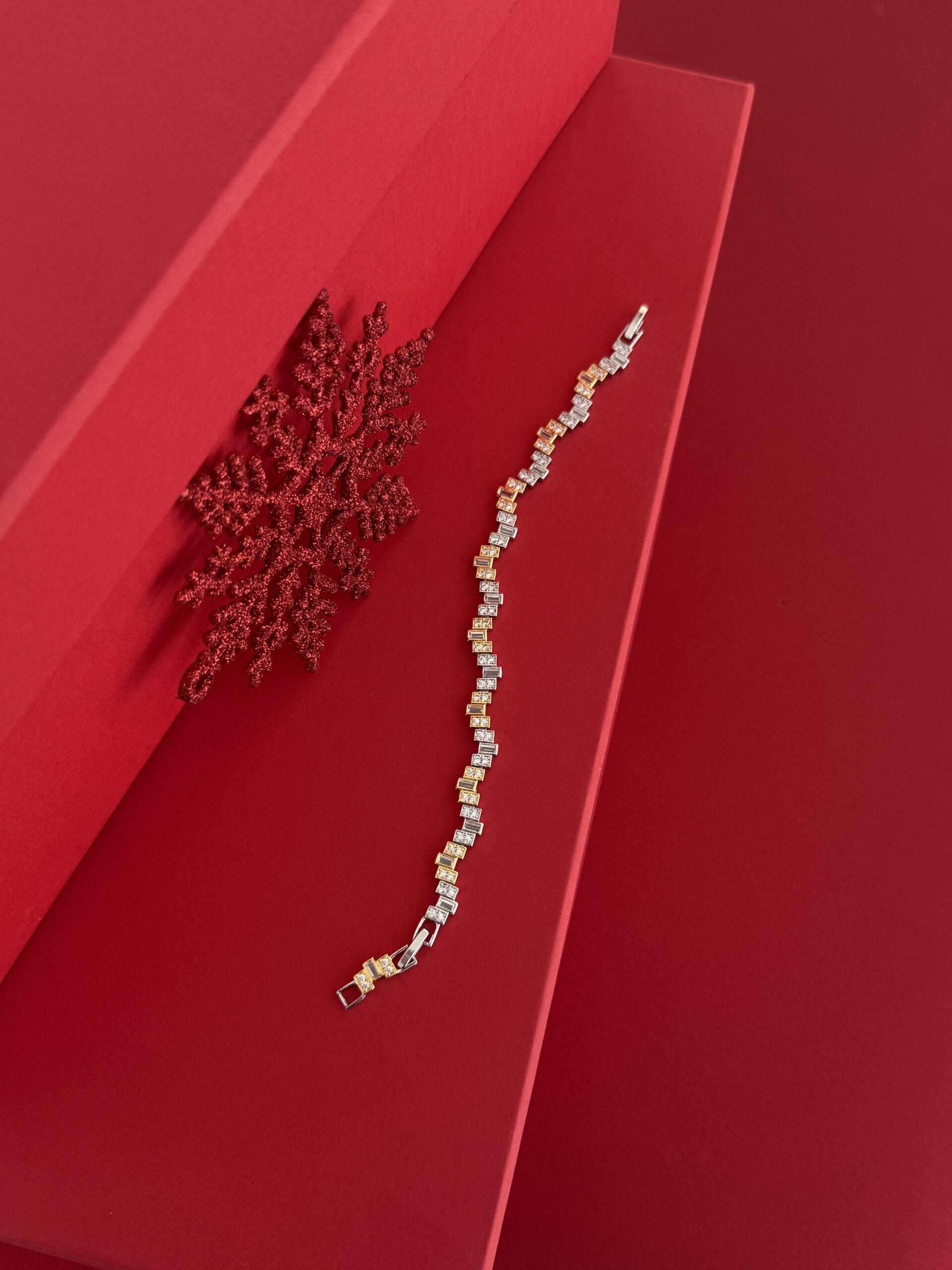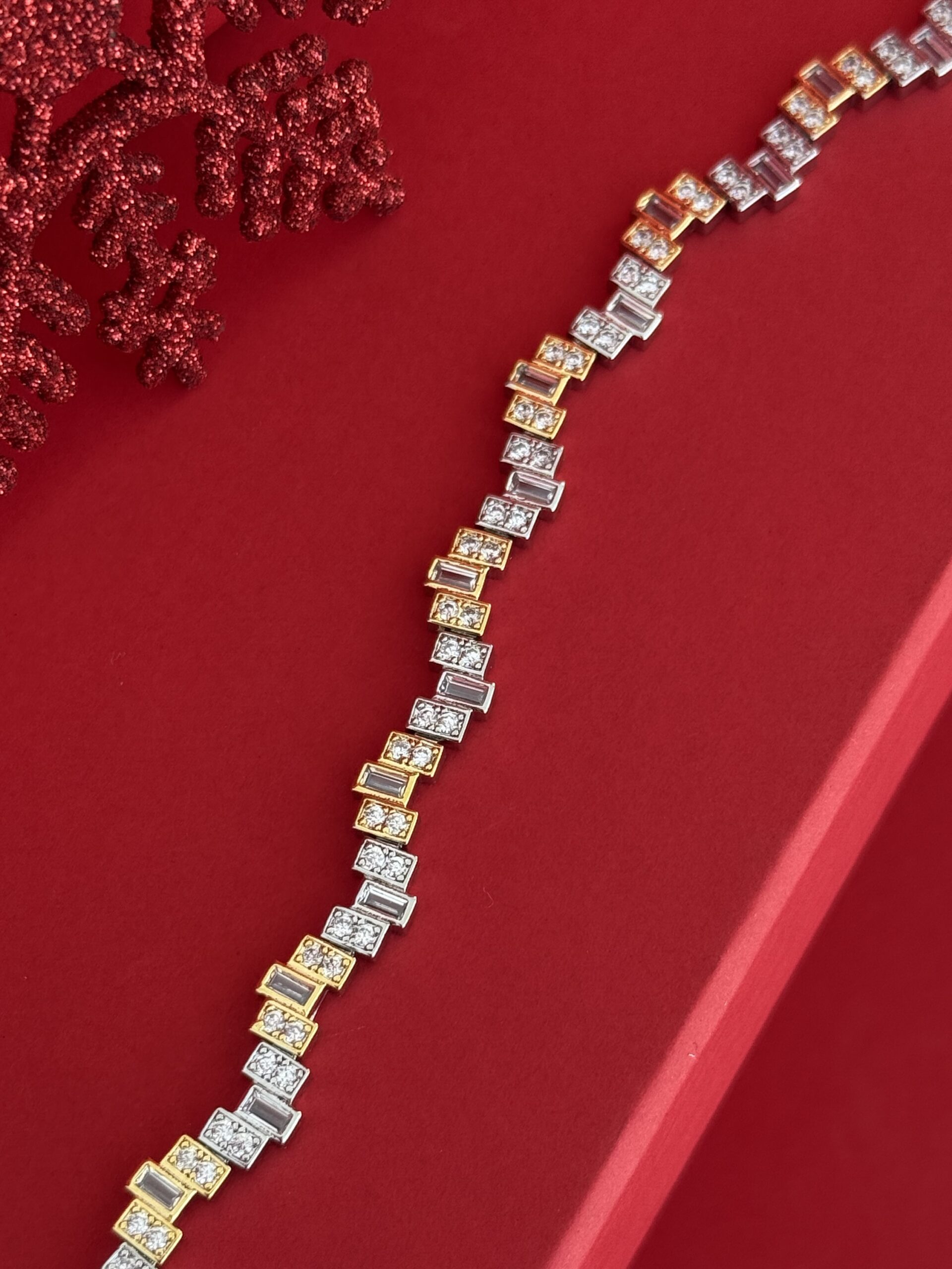 NS-Dikdörtgen Model Zirkon Taşlı Gold & Gümüş Bileklik