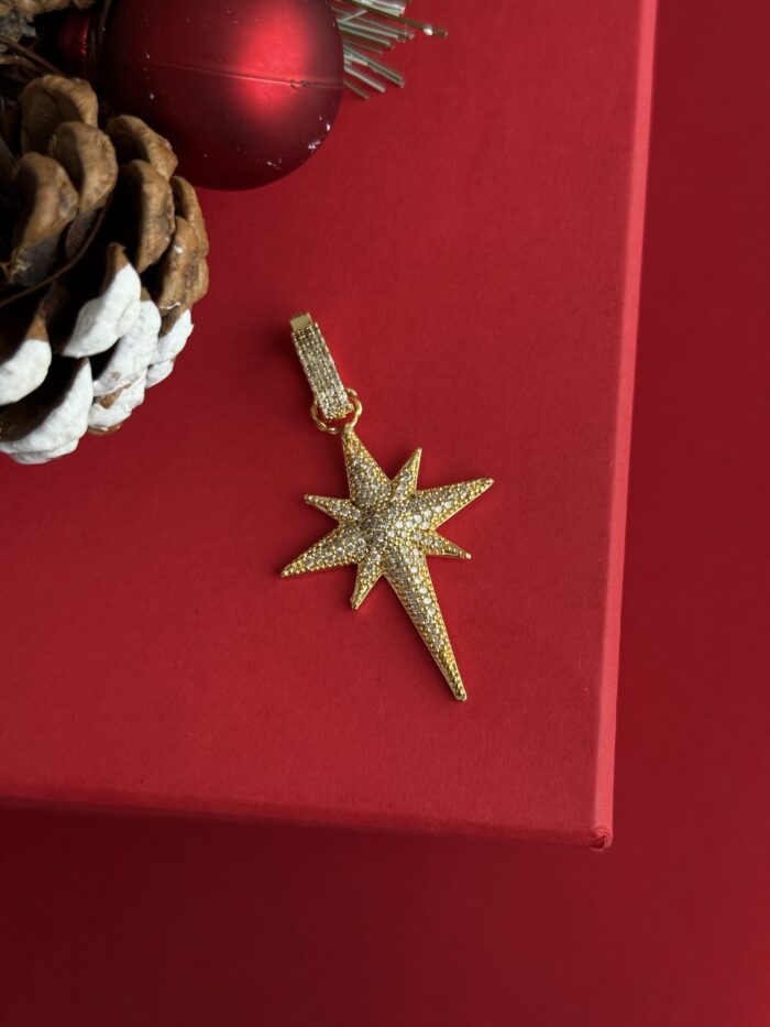 NS-Full Zirkon Taş Kuzey Yıldızı Gold Charm Uç