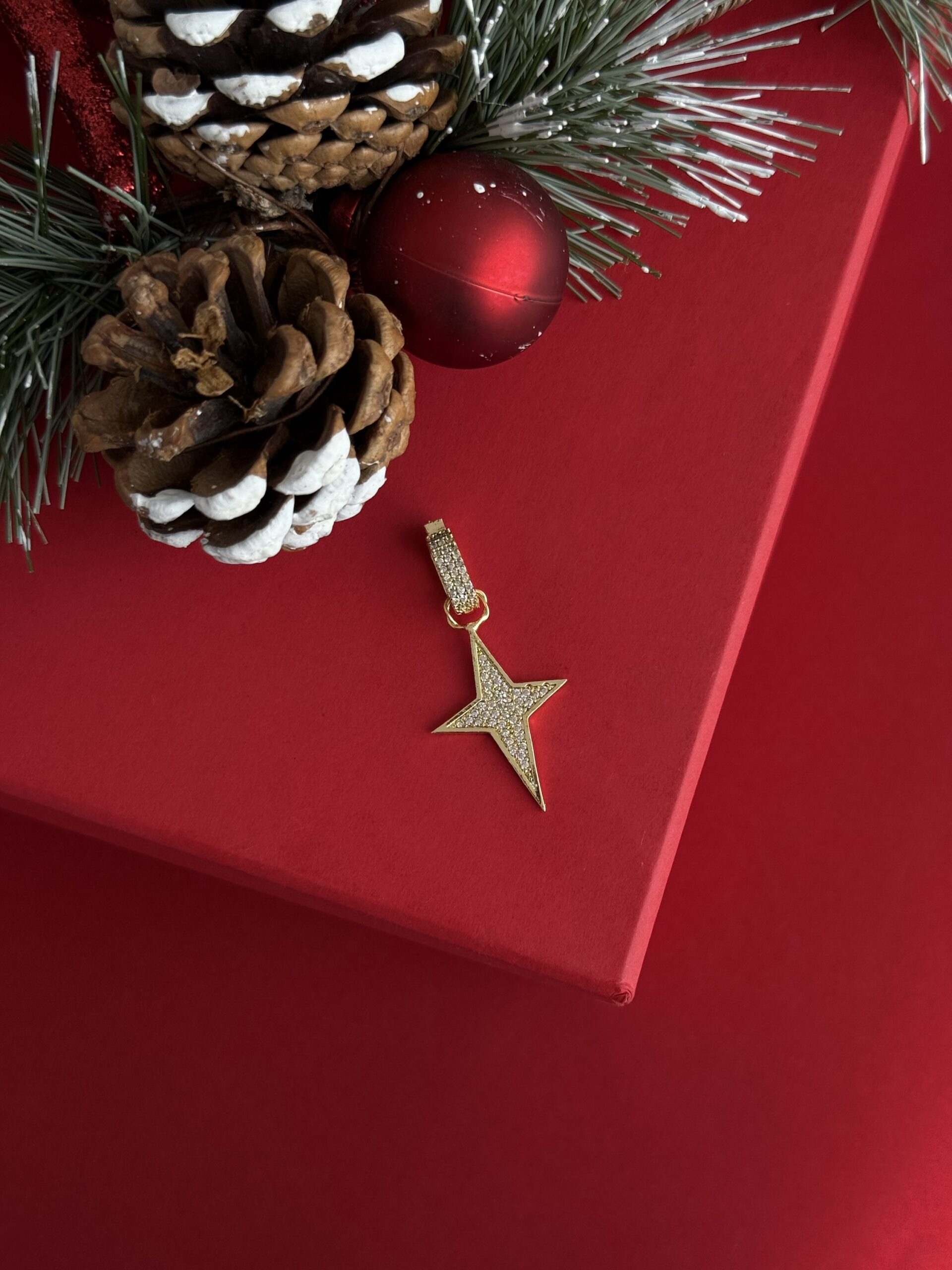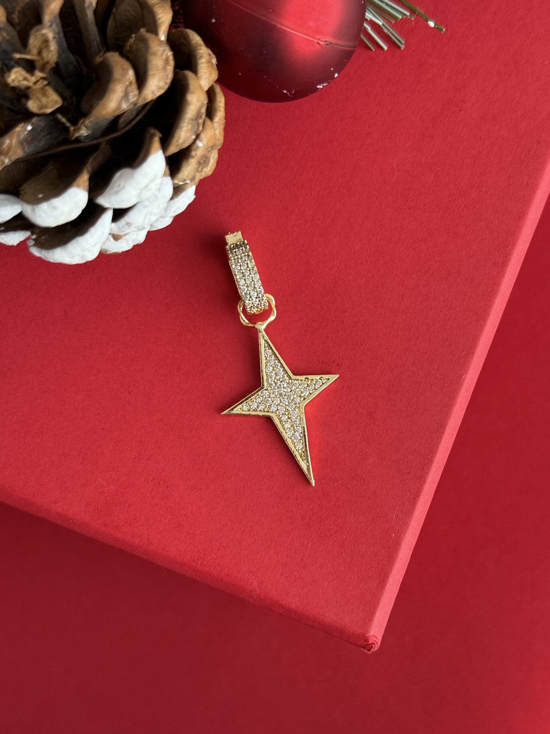 NS-Full Zirkon Taş Yıldız Model Gold Charm Uç