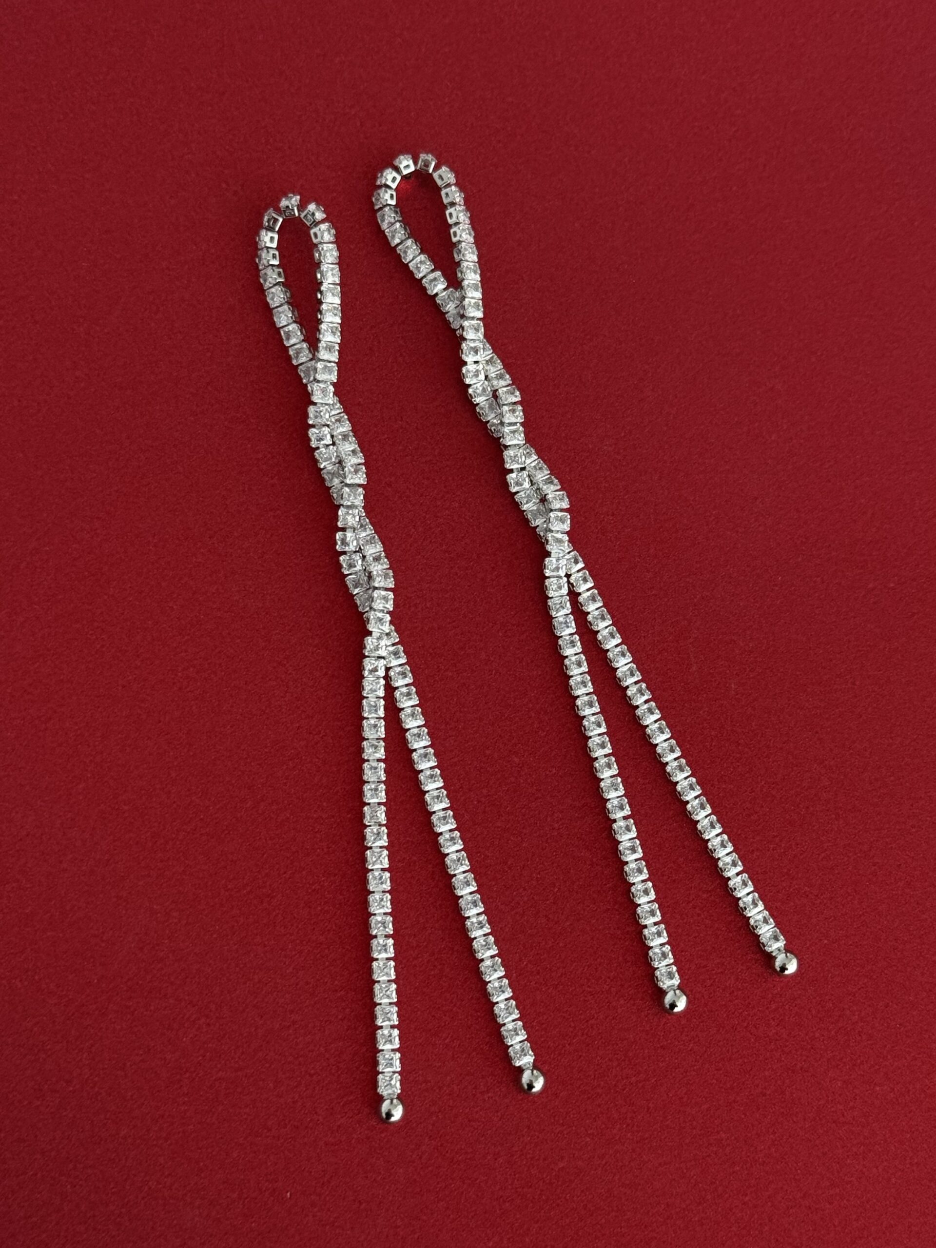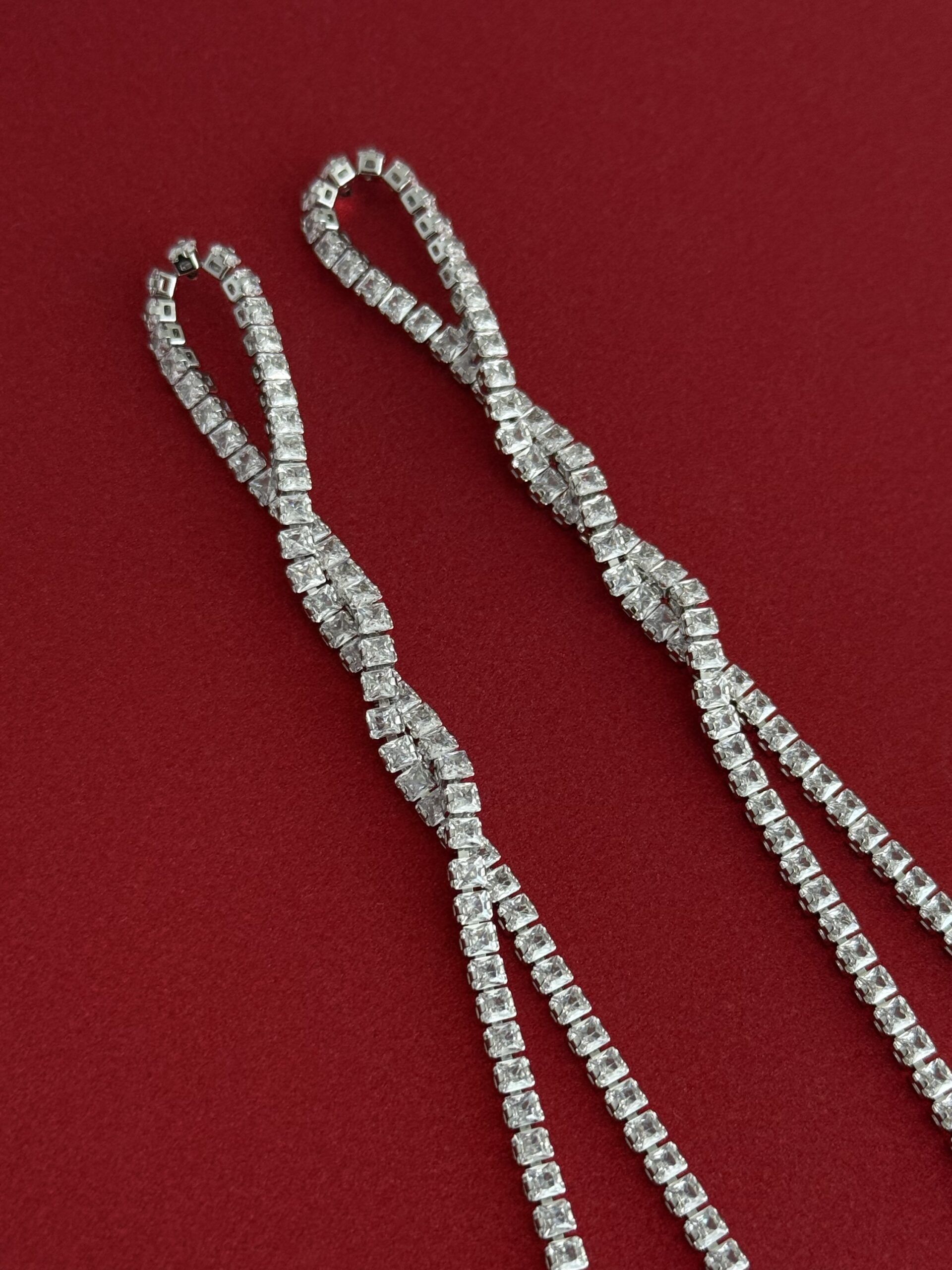 NS-Kıvrımlı Minik Baget Taşlu Uzun Gümüş Küpe