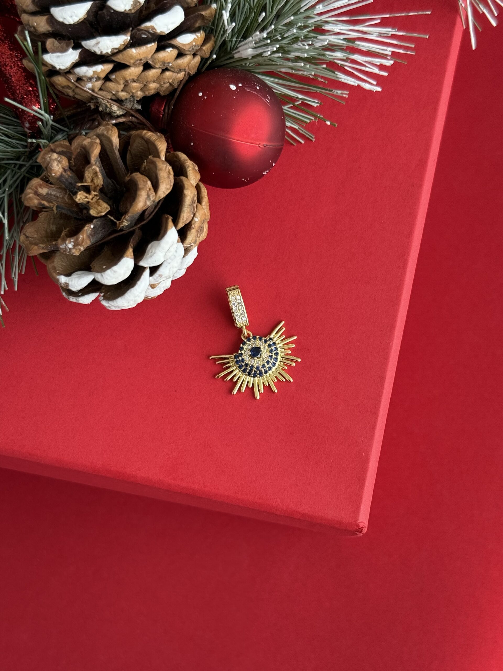 NS-Lacivert Zirkon Taşlı Güneş Tasarım Charm Uç