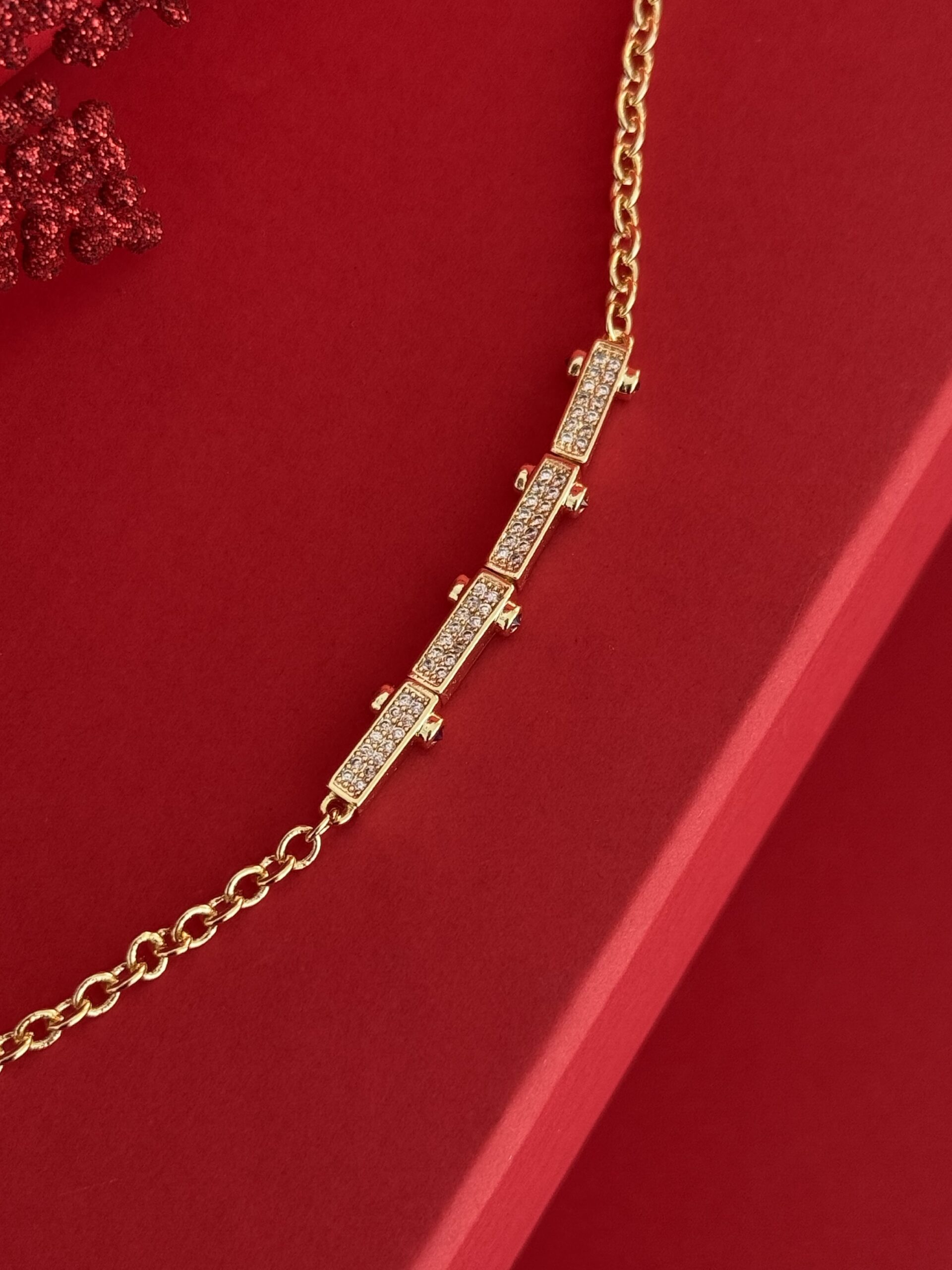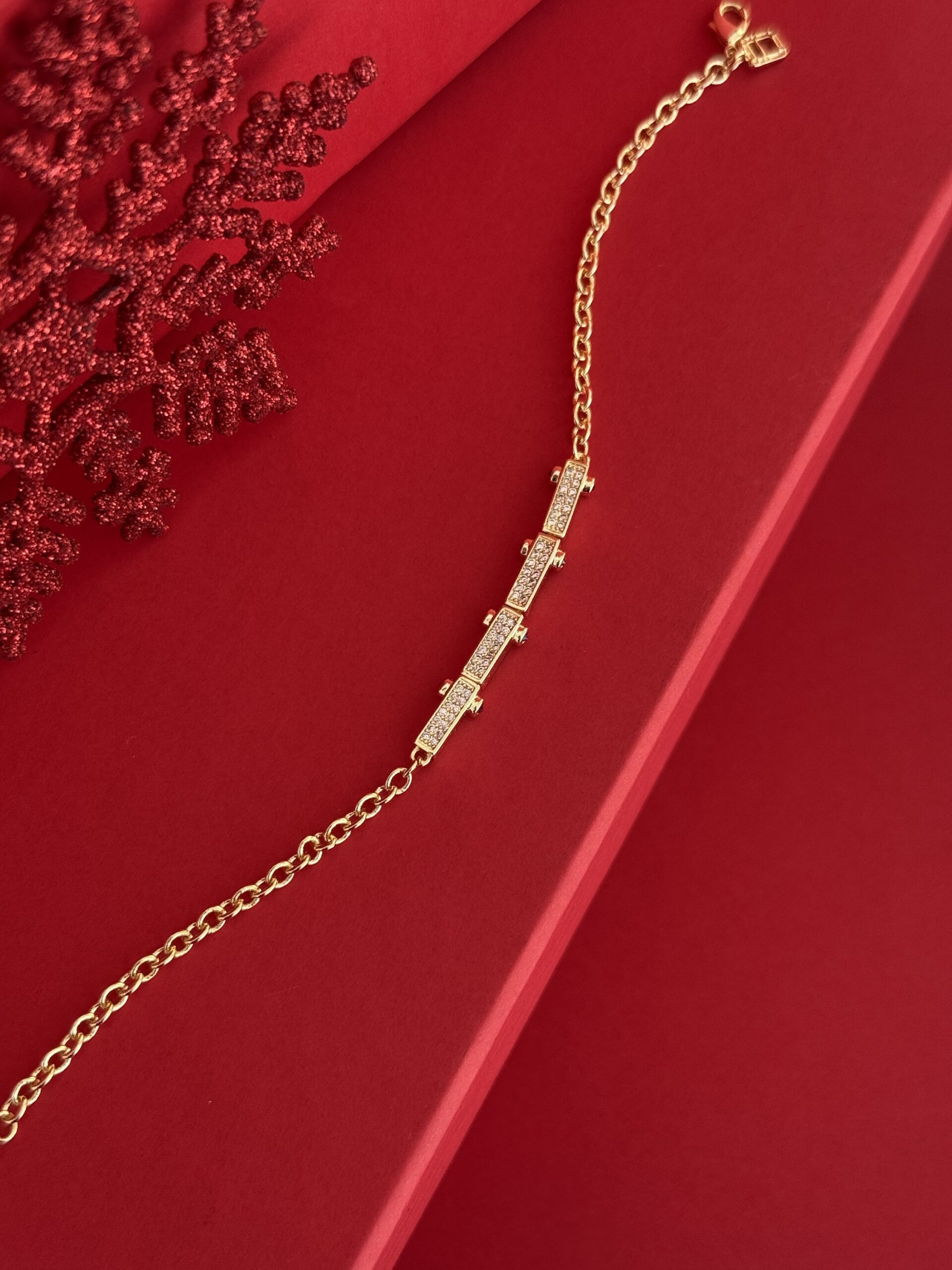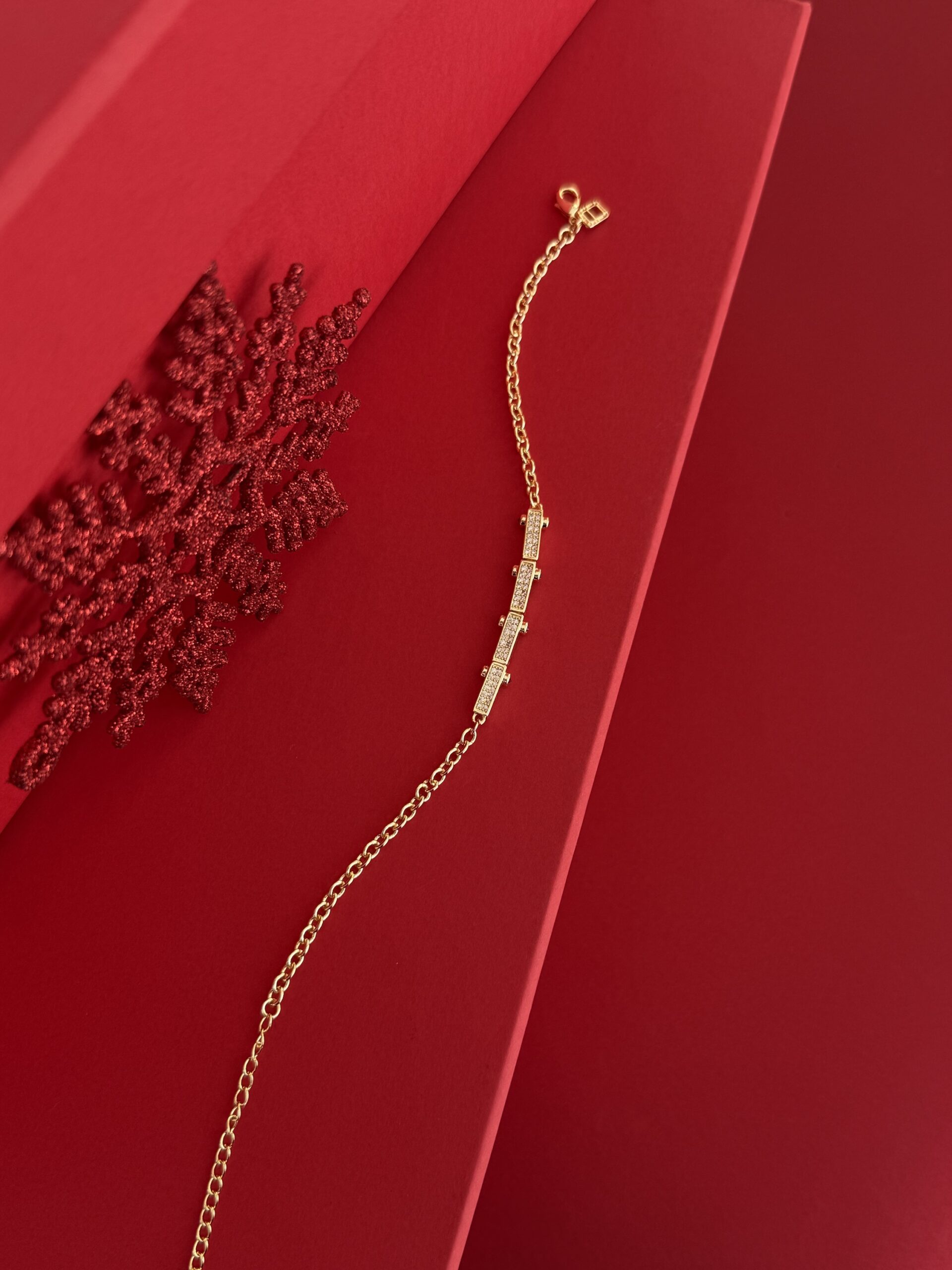 NS-Marka Model Dikdörtgen Zirkon Taşlı Gold Bileklik