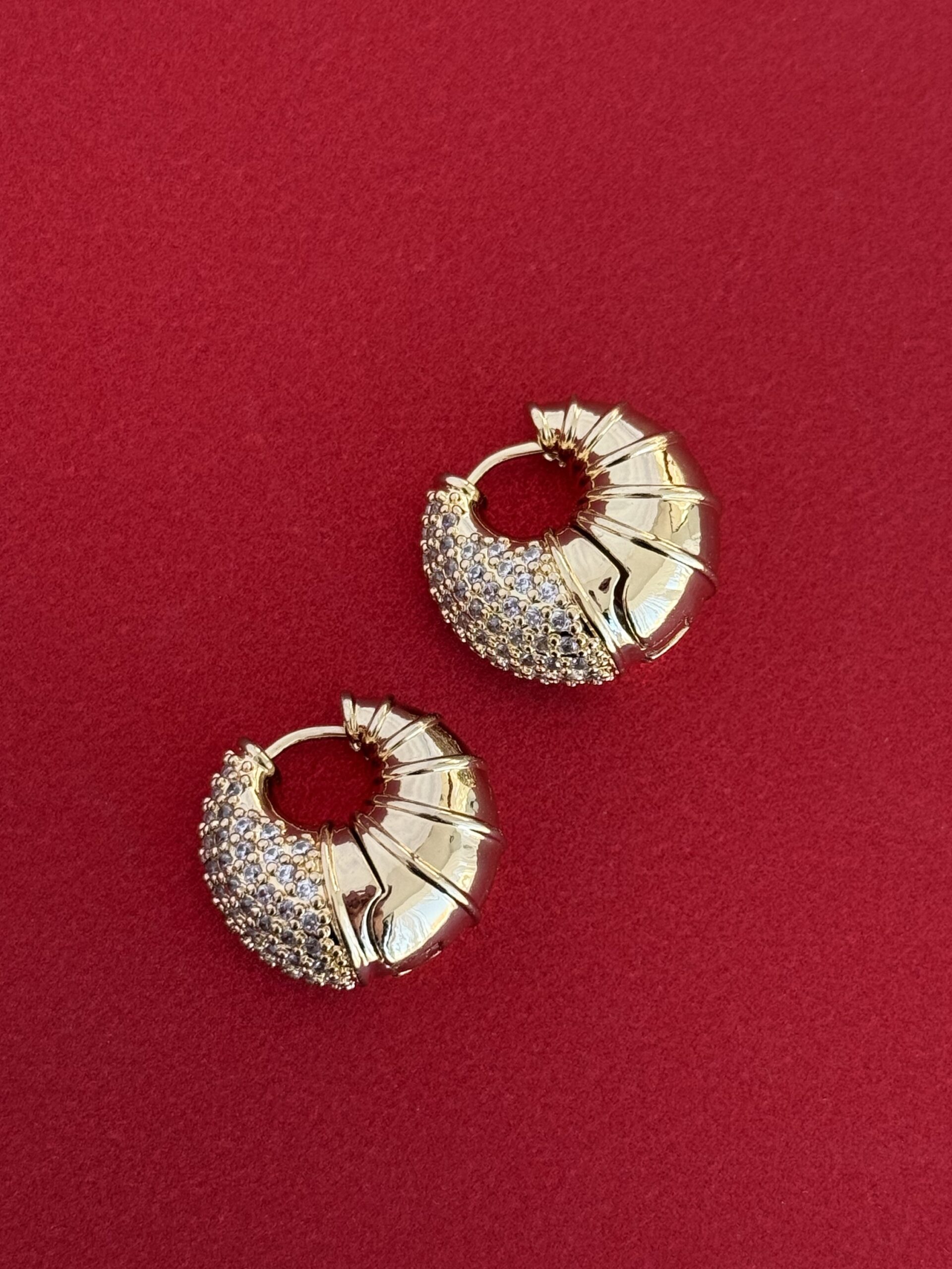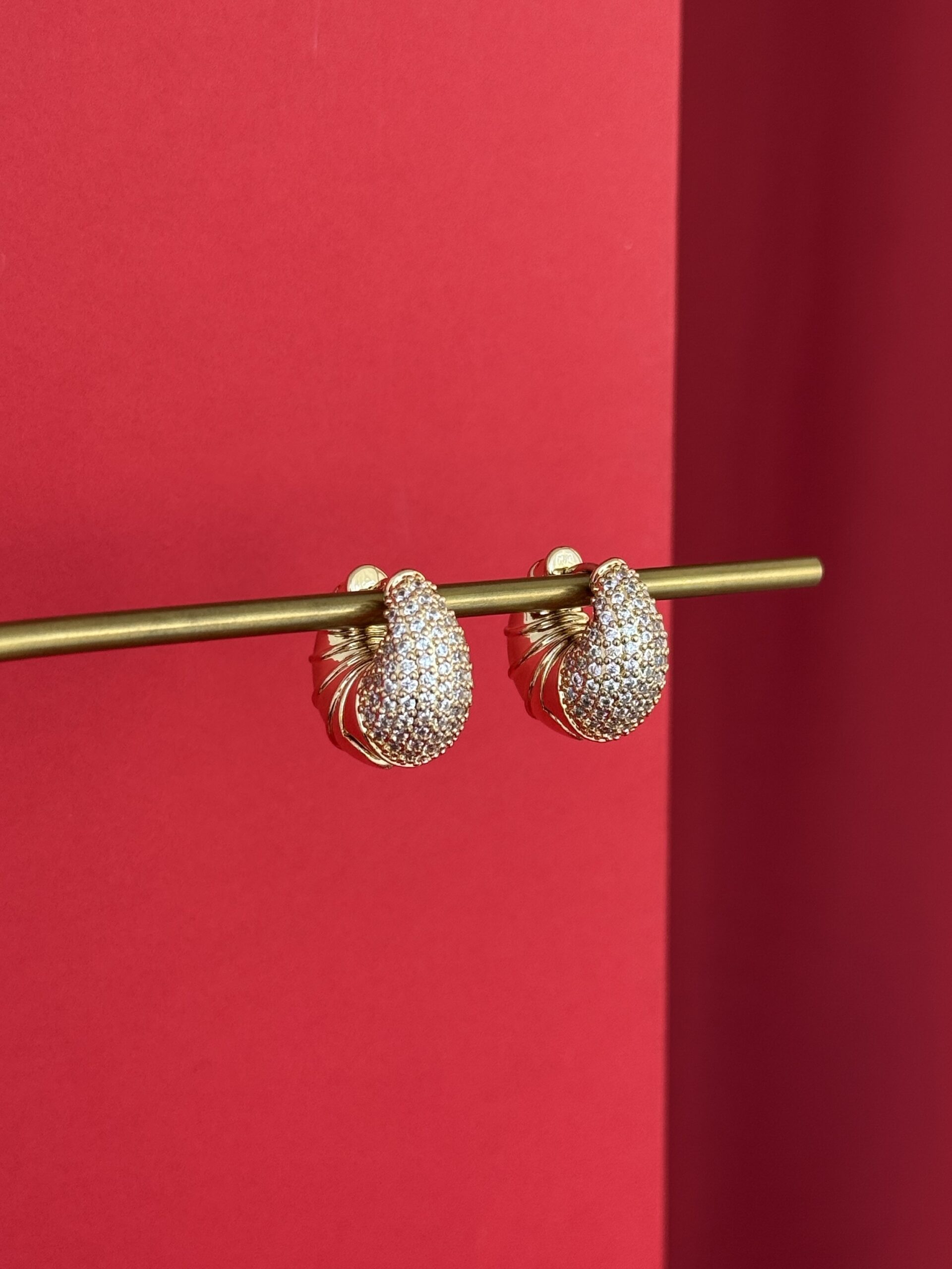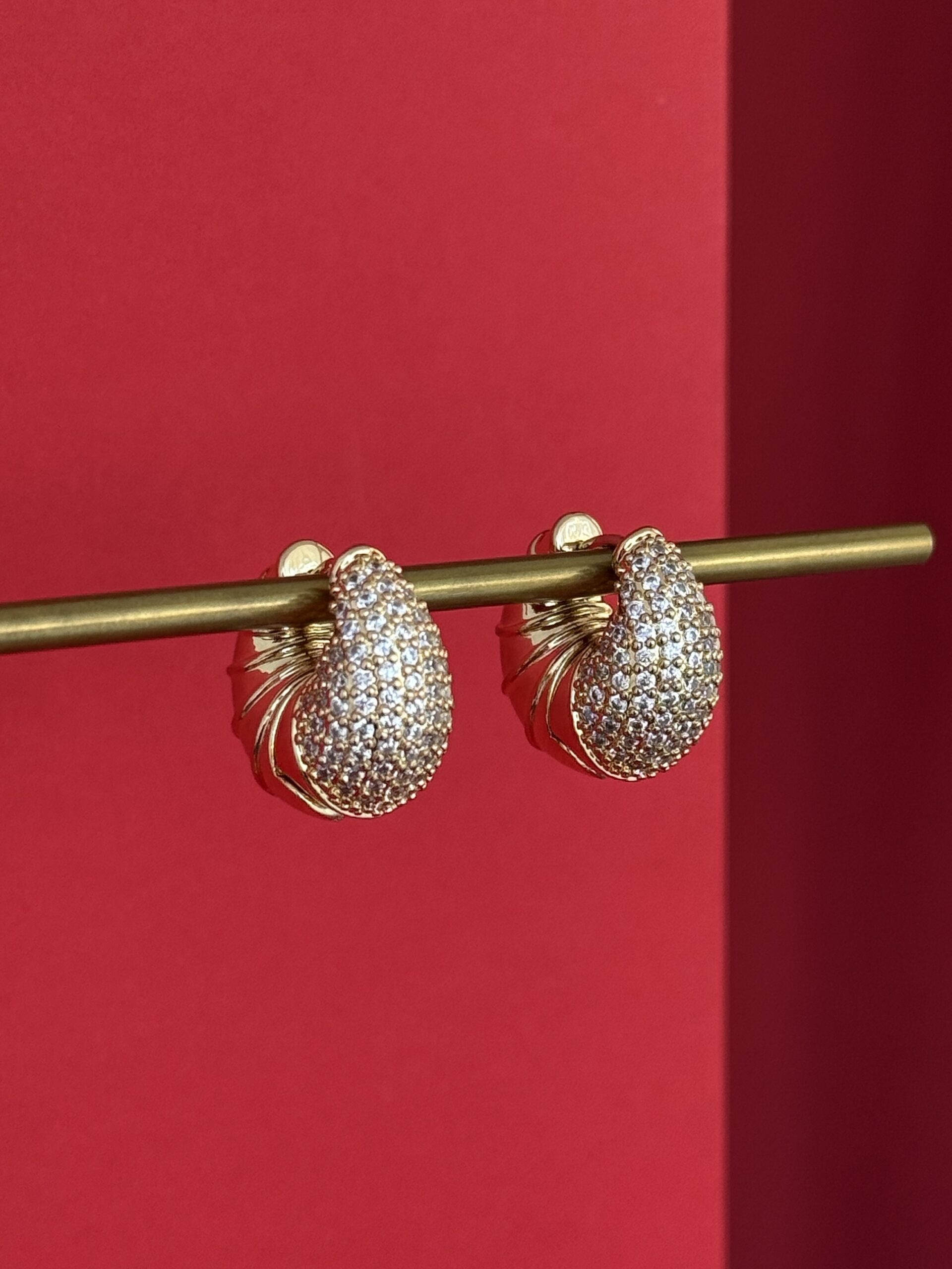 NS-Minik Zirkon Taşlı Tombul Gold Küpe