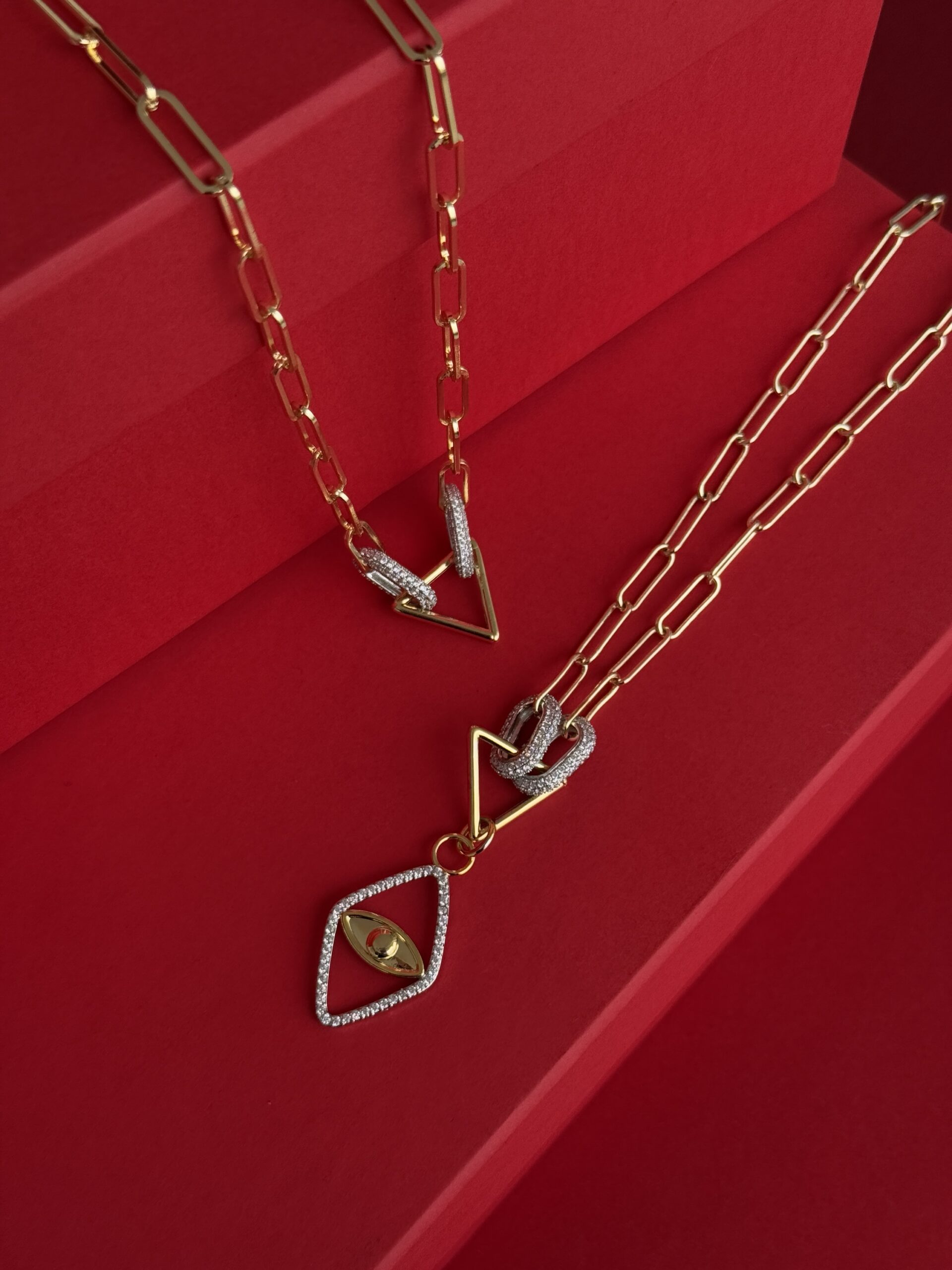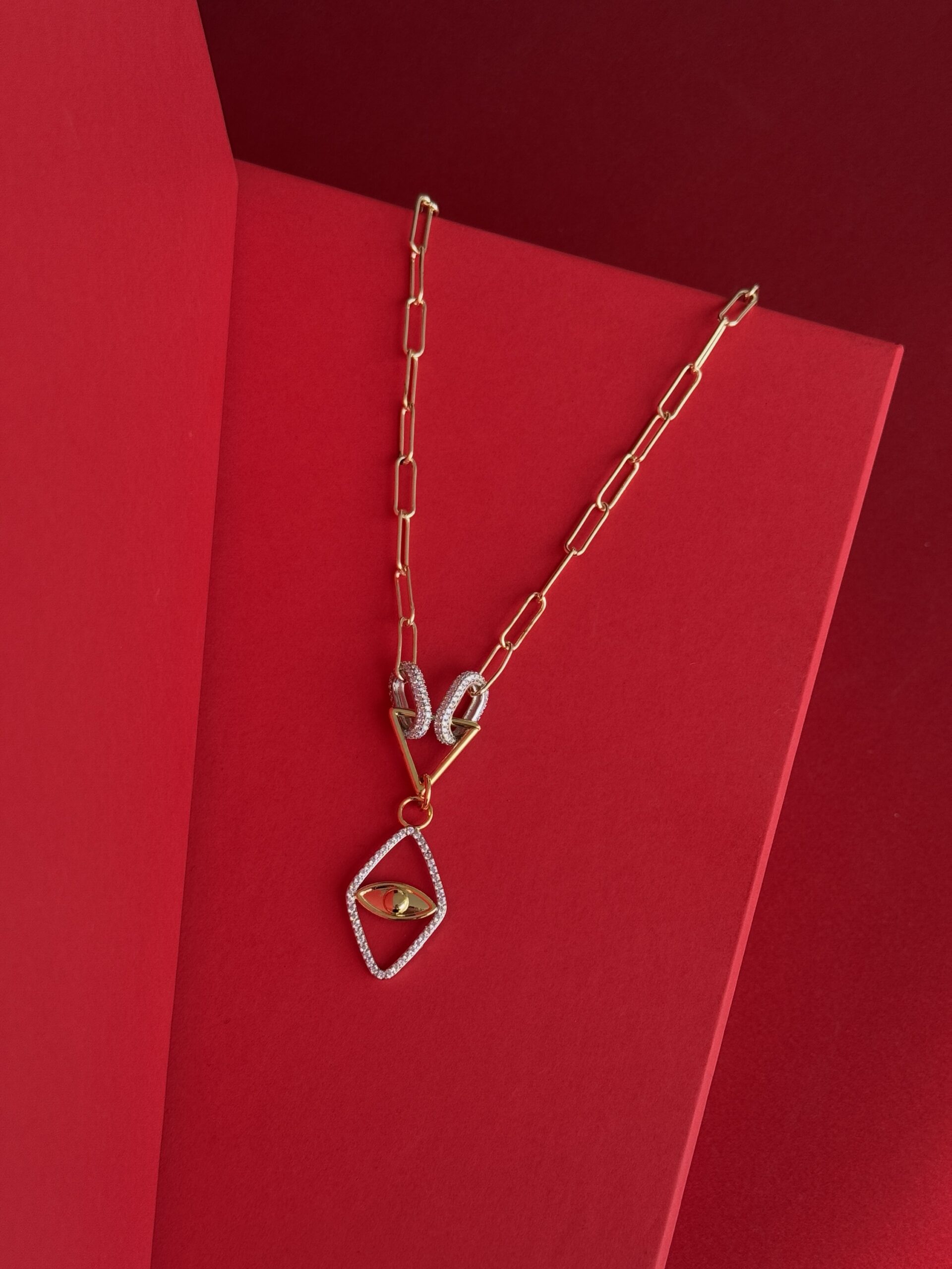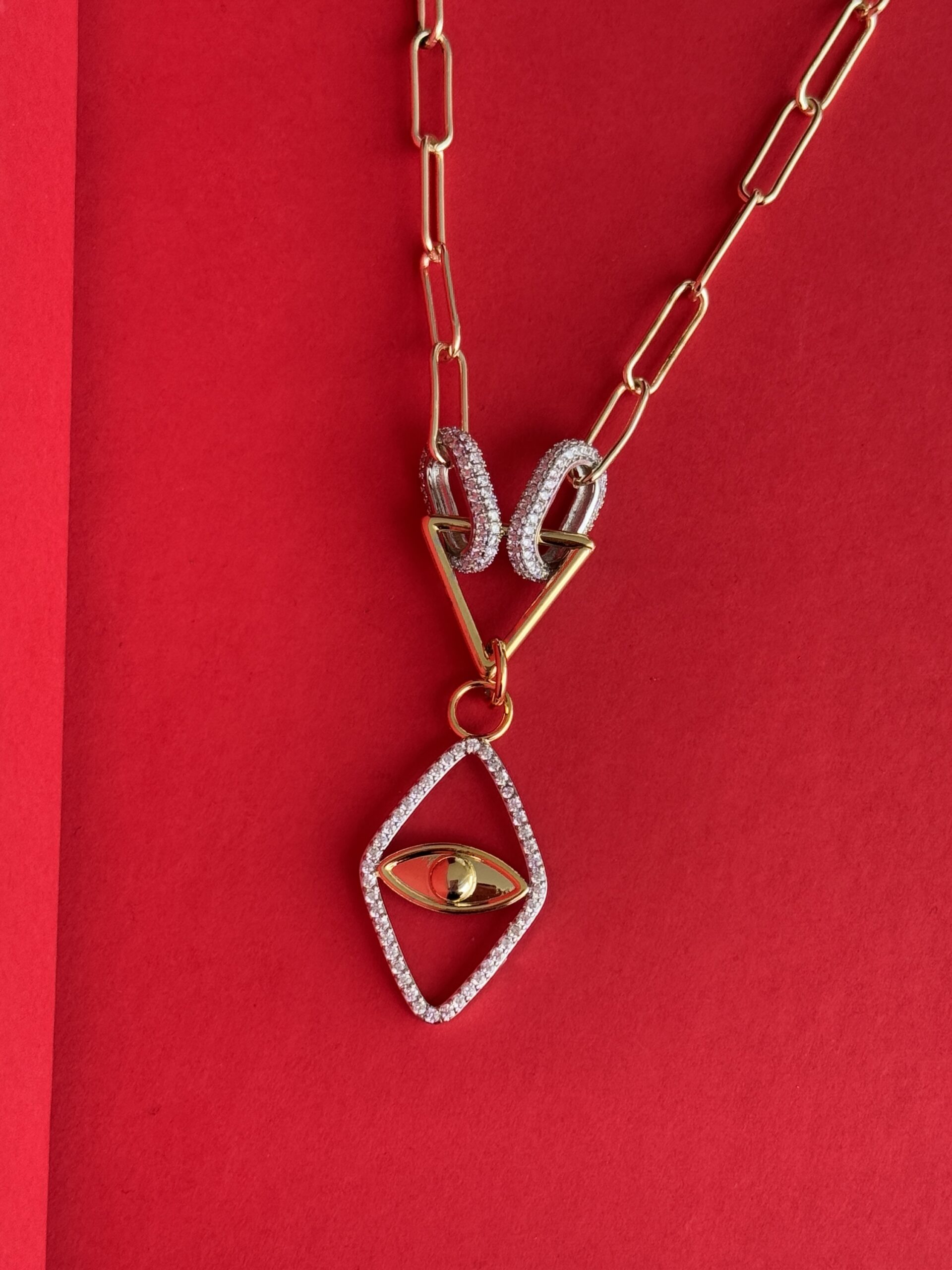 NS-Premium Zincir Model Gold & Gümüş Göz Uç Kolye