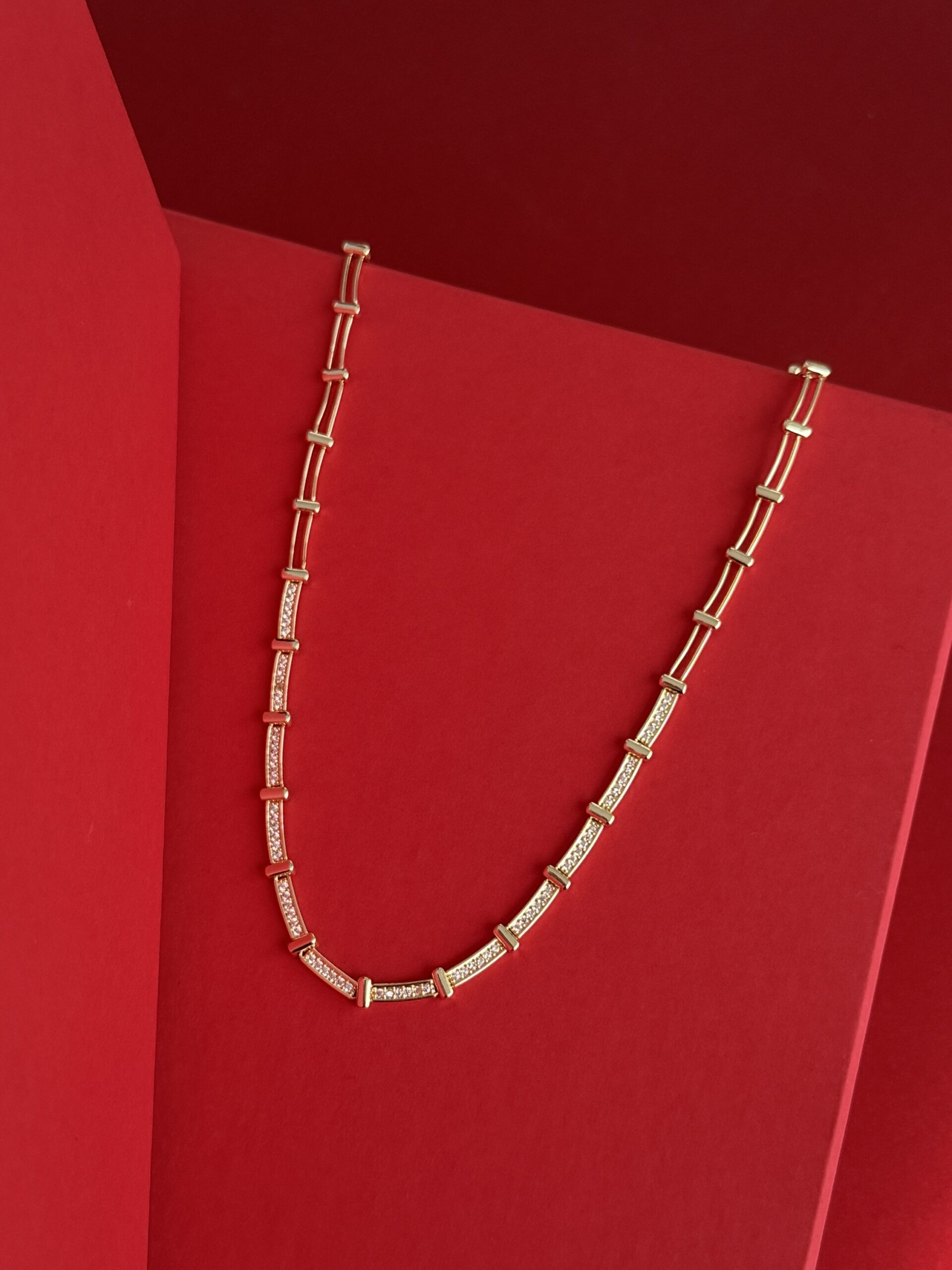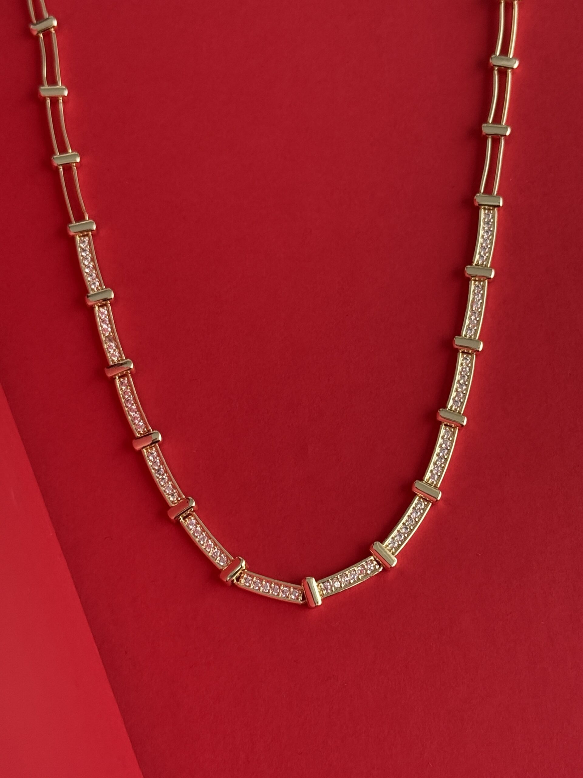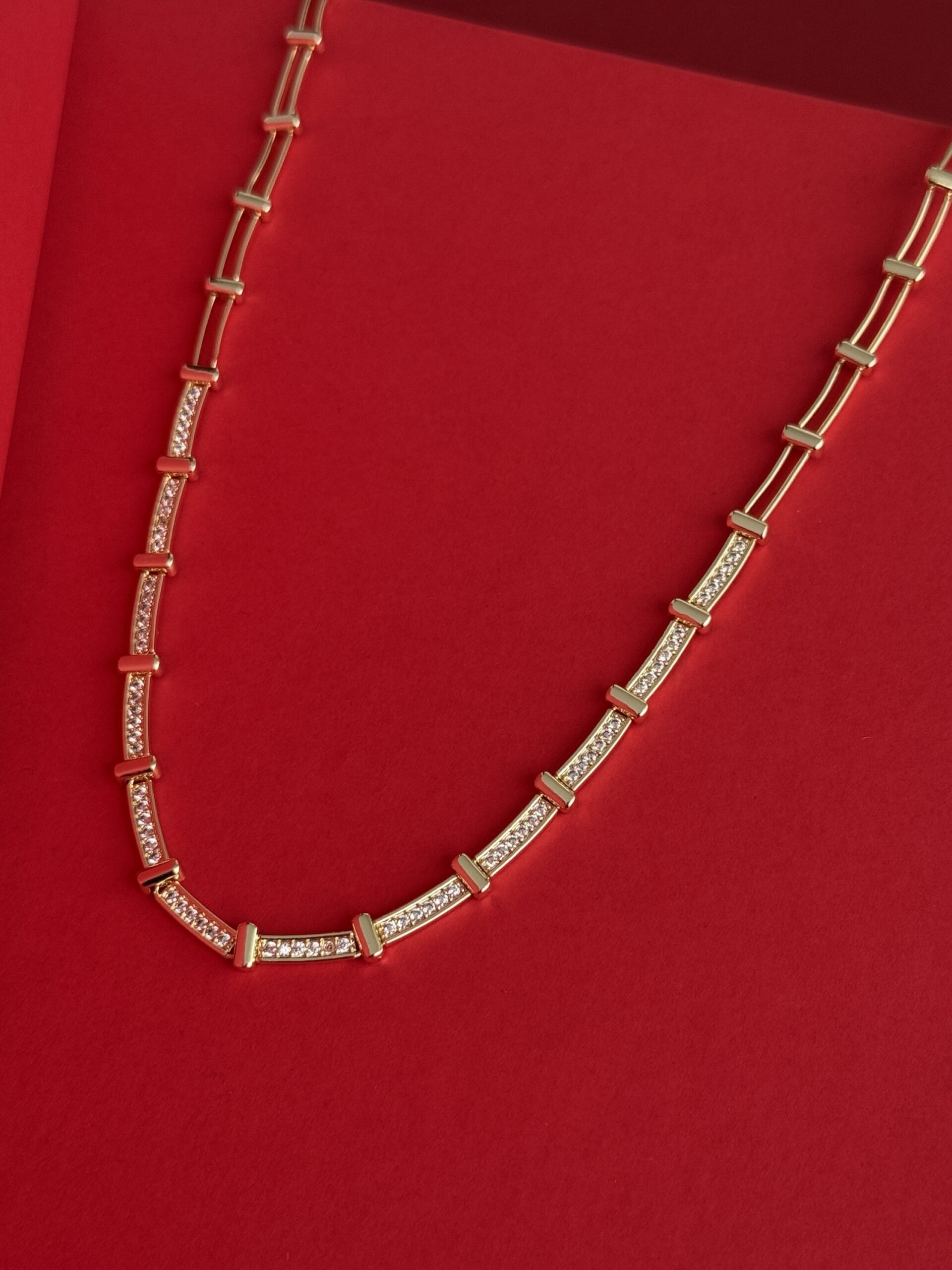 NS-Premium Zirkon Taş Dikdörtgen Tasarım Gold Kolye