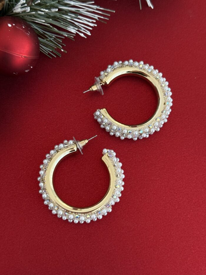 NS-Pul Taşlı İncili Büyük Kalın Gold Halka Küpe