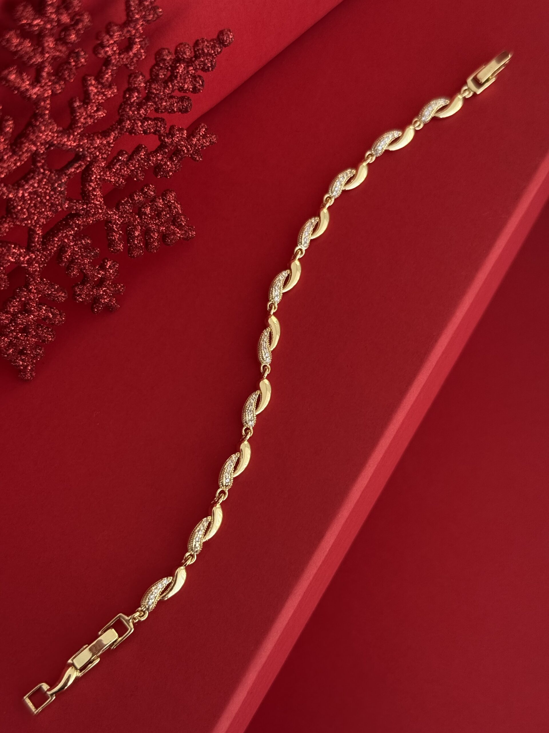 NS-Sarmal Tasarım Zirkon Taşlı Gold Bileklik