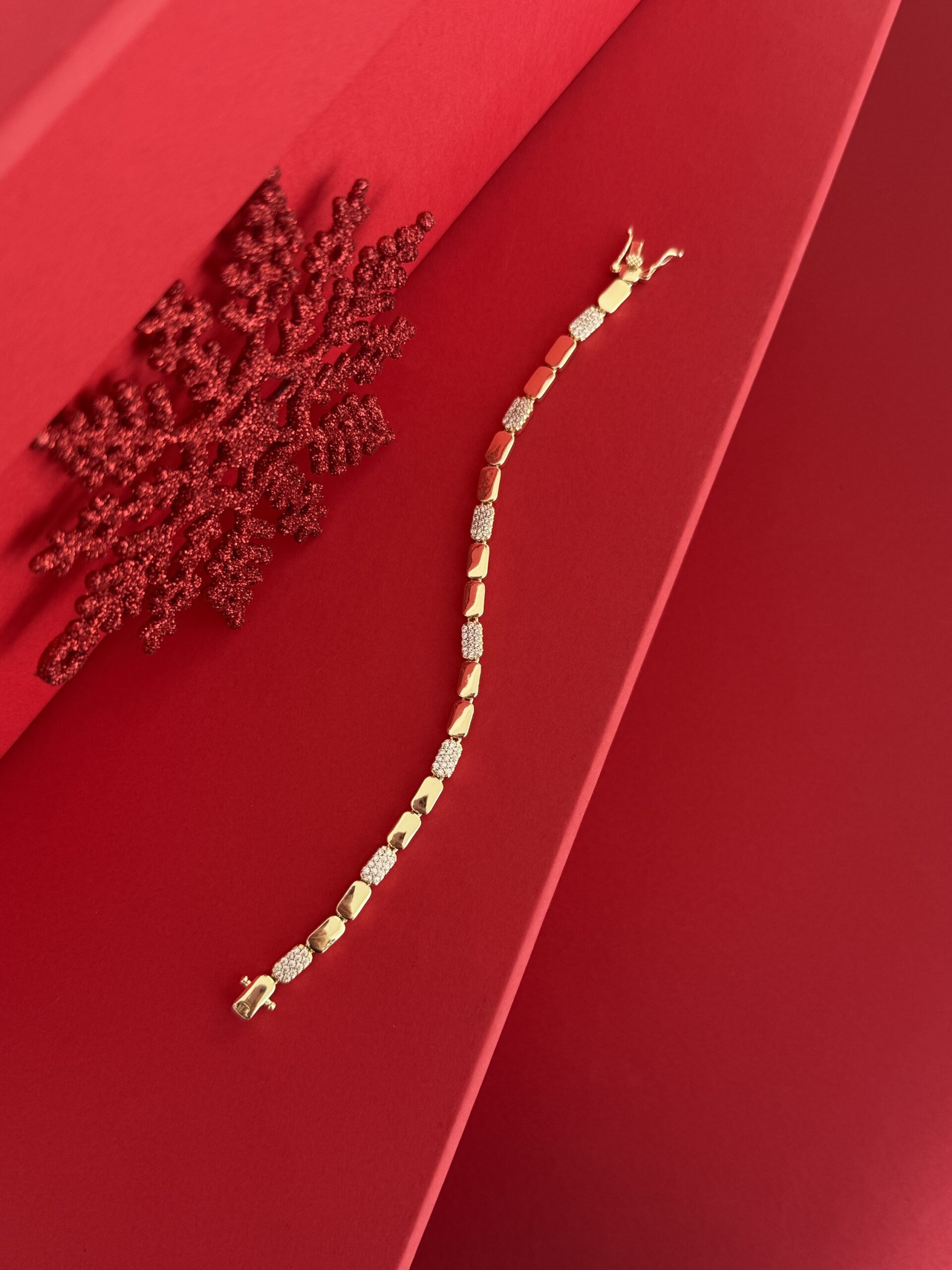 NS-Sıralı Dikdörtgen Model Zirkon Taşlı Gold Bileklik