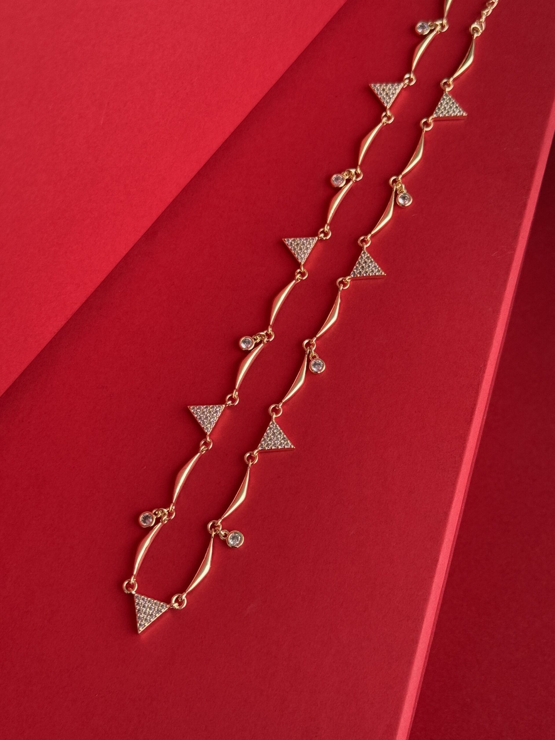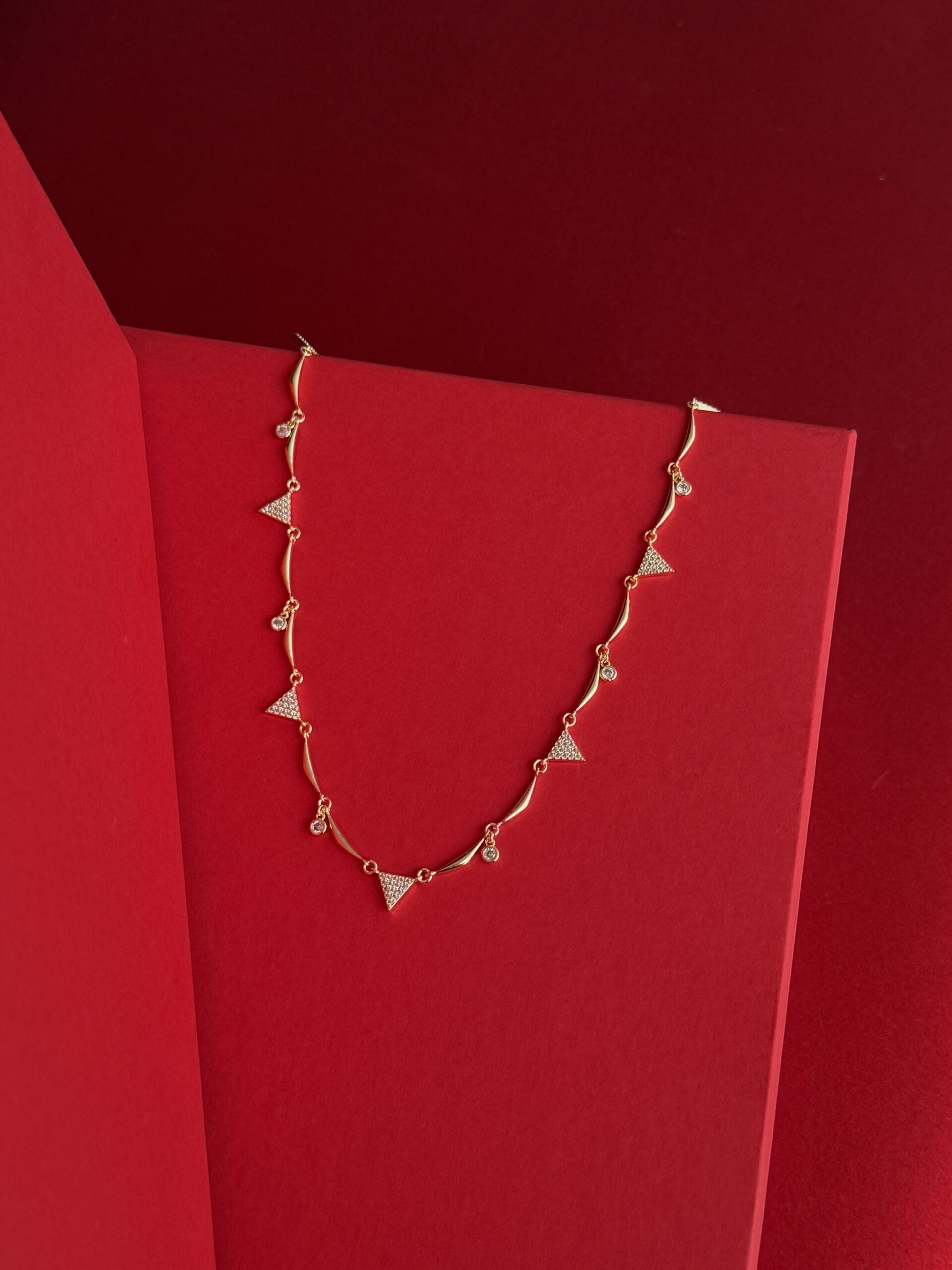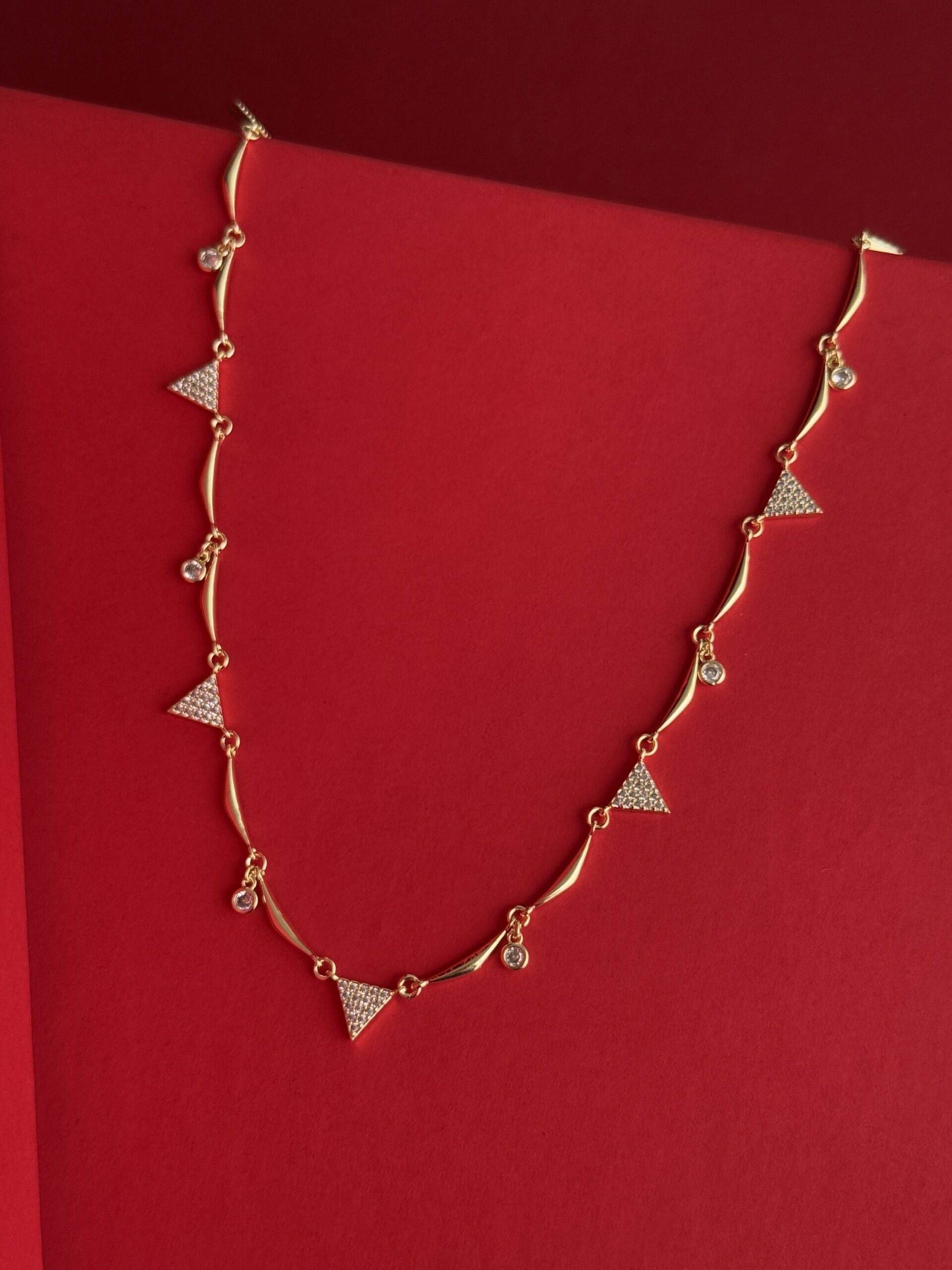 NS- Üçgen Tasarım Zirkon Taşlı Gold Kolye