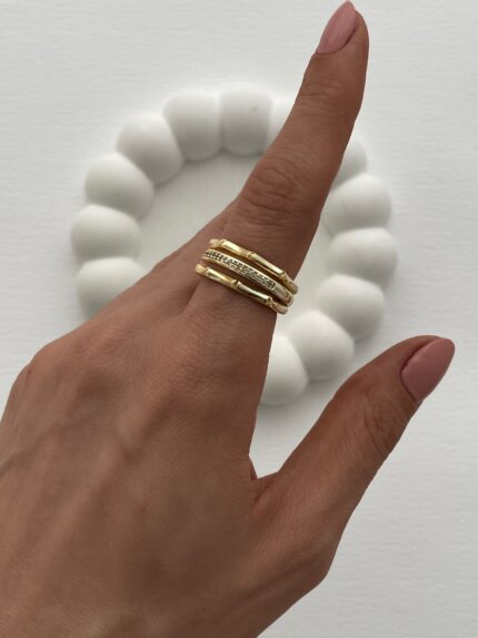 NS-Üçgen Taşlı Tasarım Ayarlanabilir Gümüş Yüzük