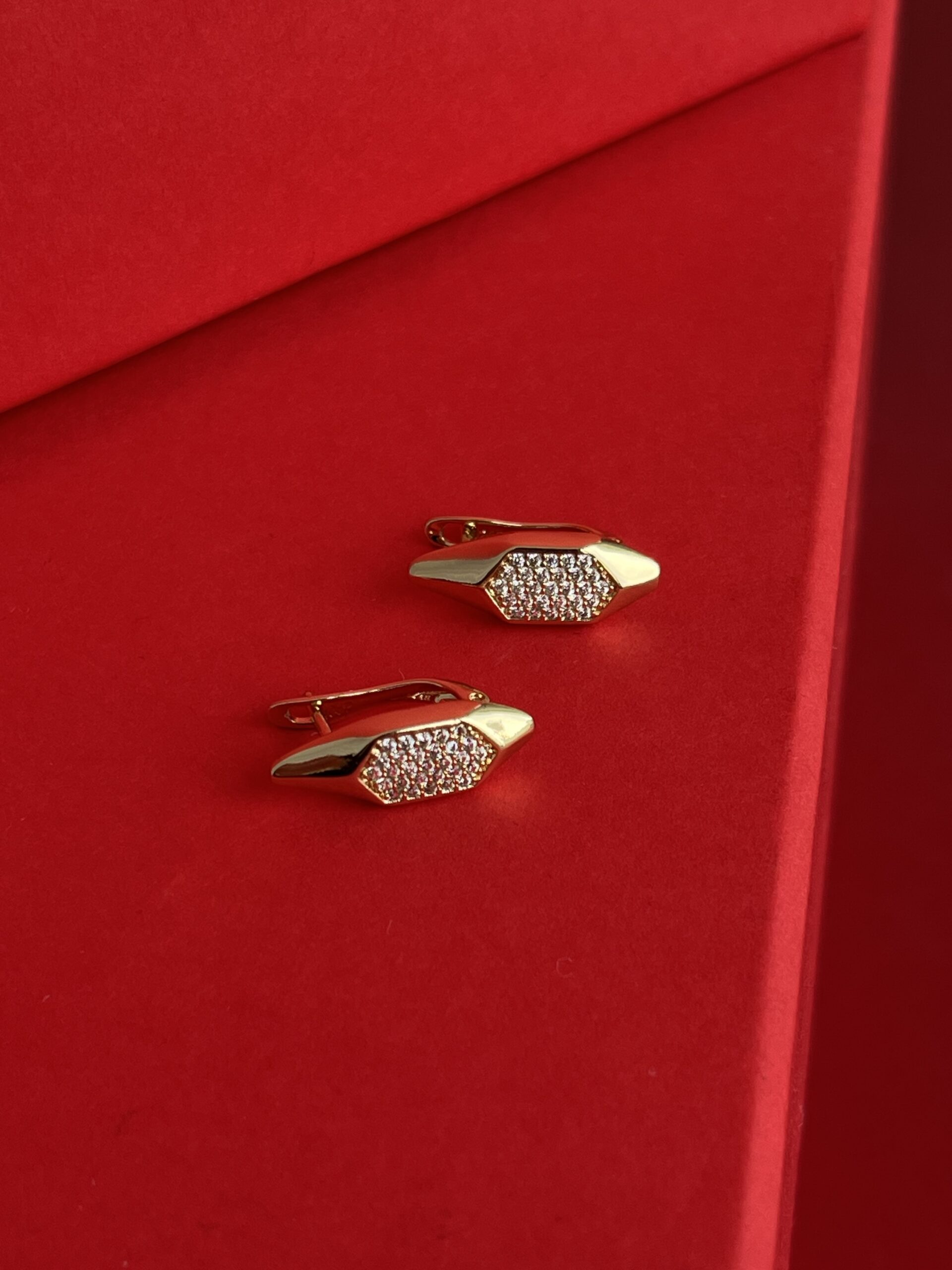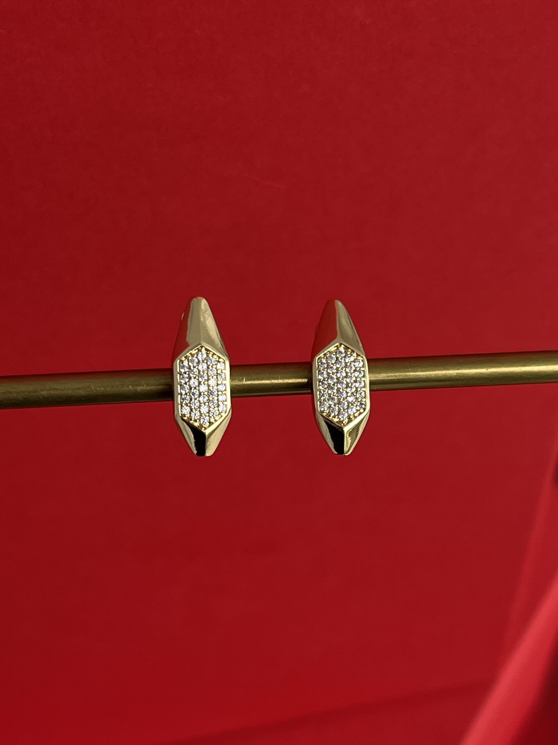 NS-XUPING Minik Zirkon Taş Üçgen Model Gold Küpe