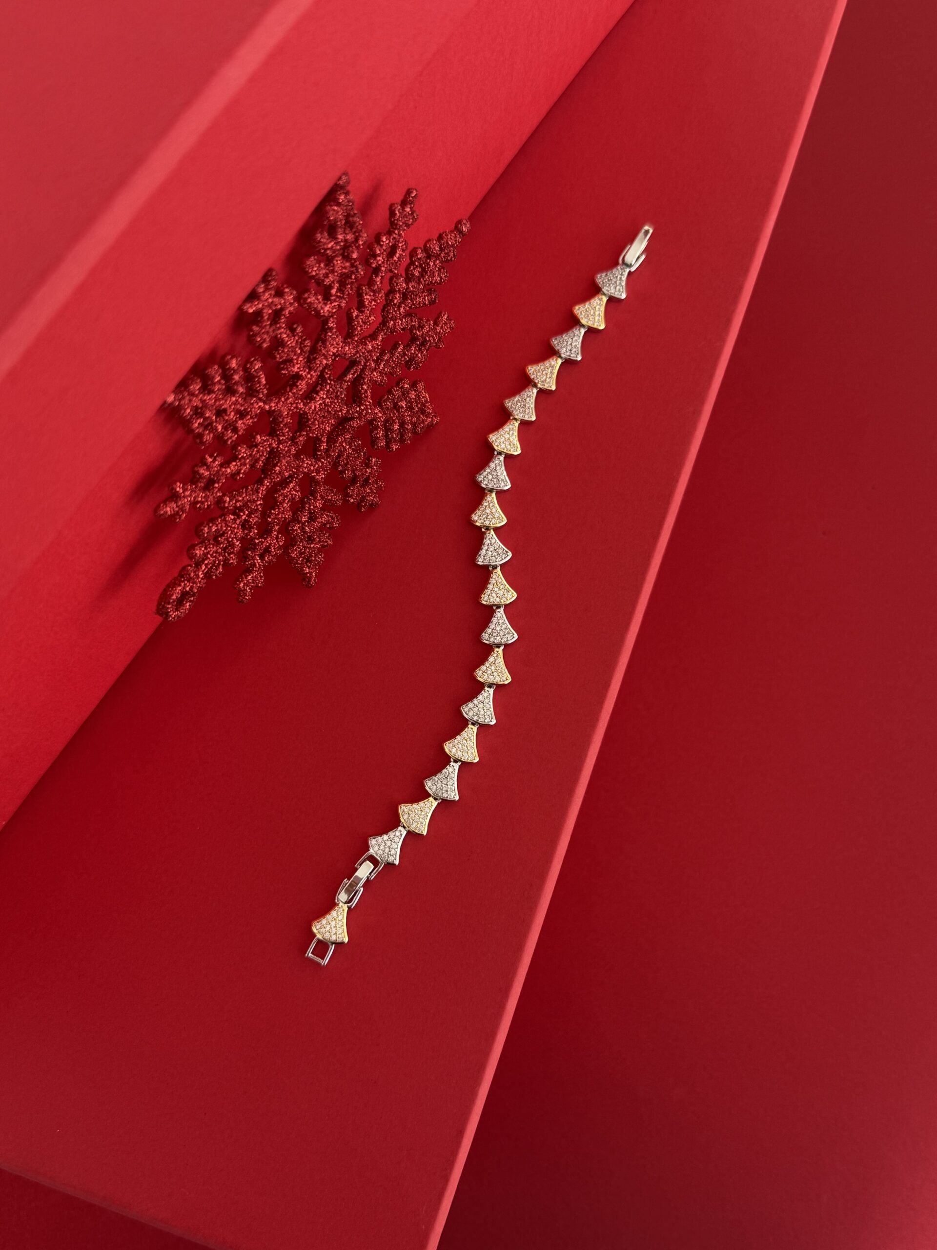 NS- Yaprak Tasarım Gold & Gümüş Bileklik
