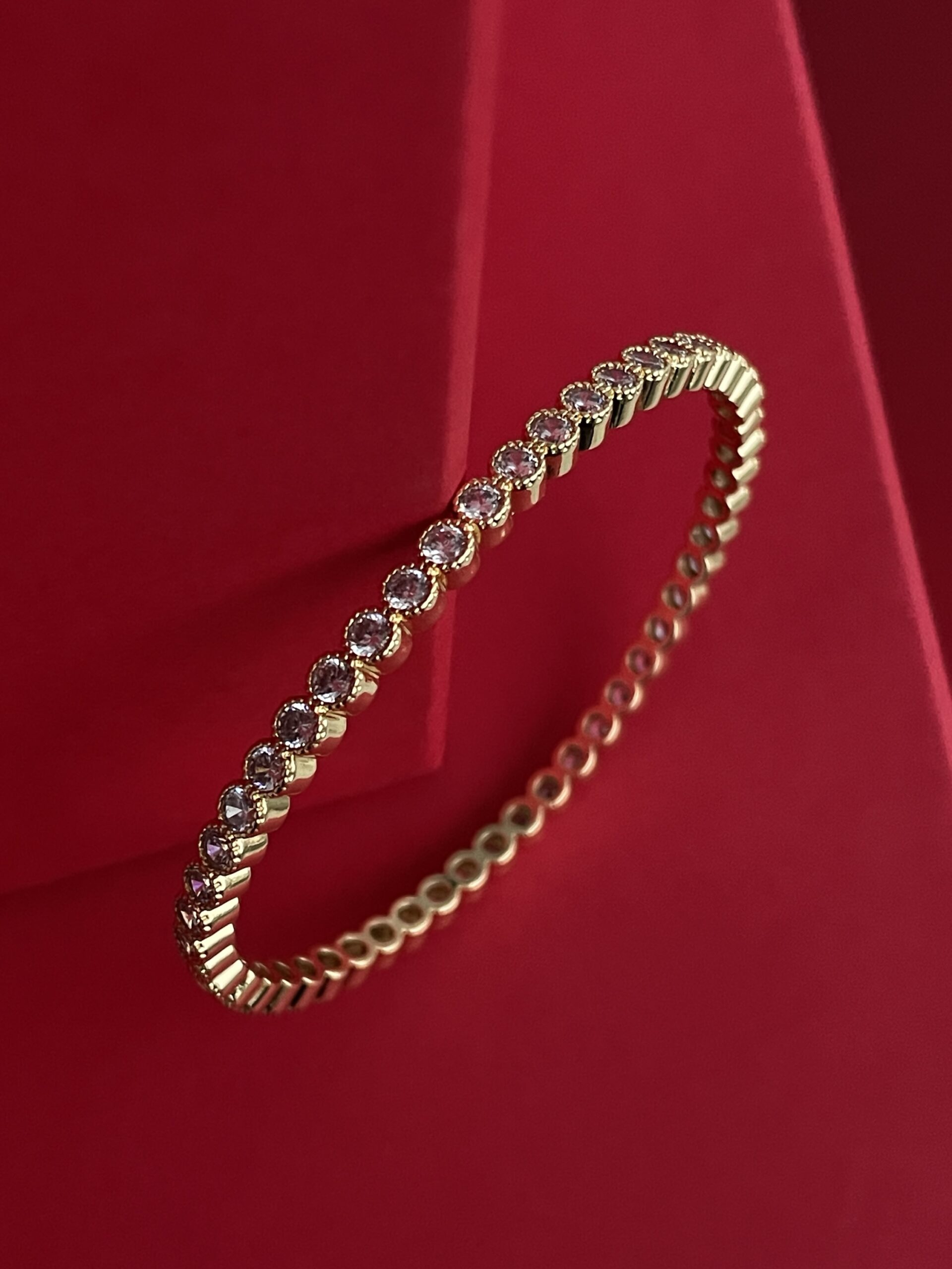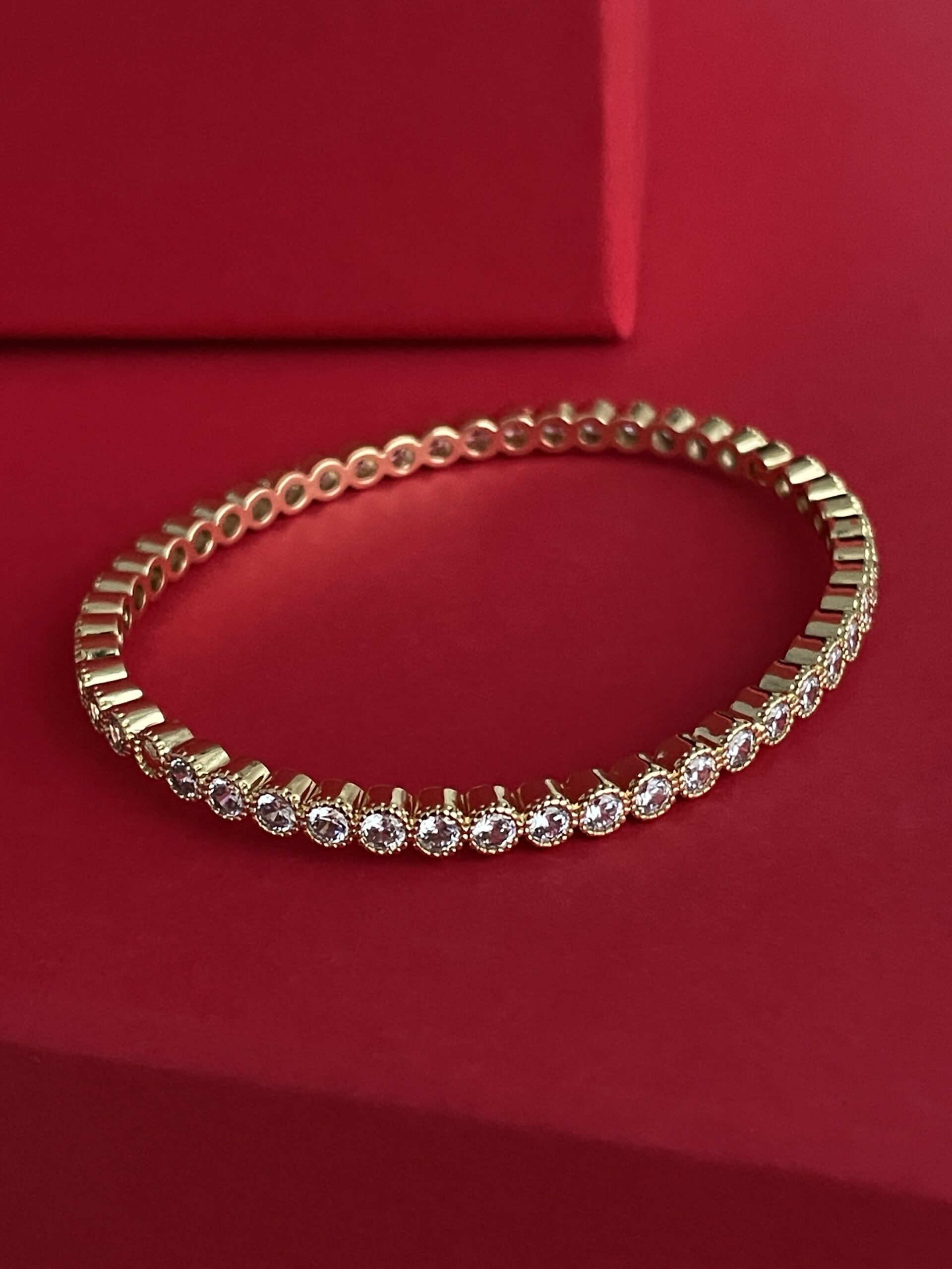 NS-Zirkon Taş Tam Tur Tasarım Gold Kelepçe Bileklik