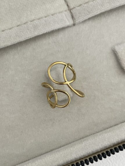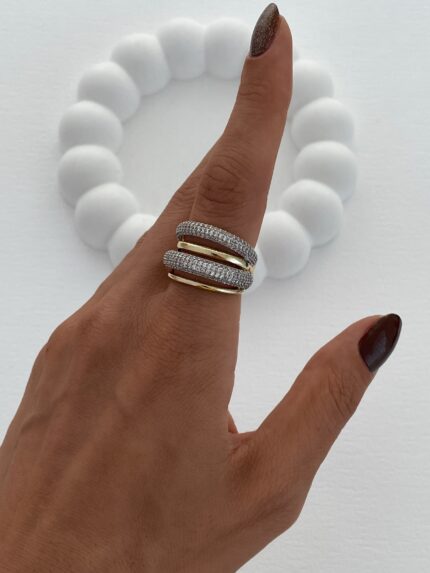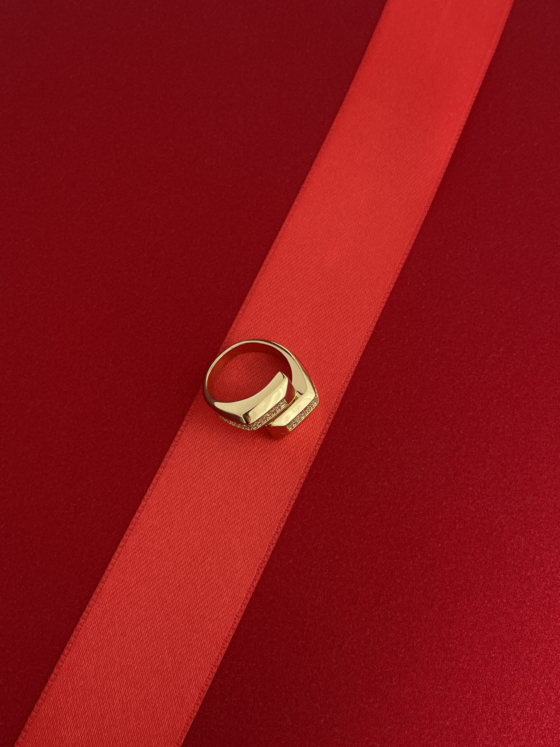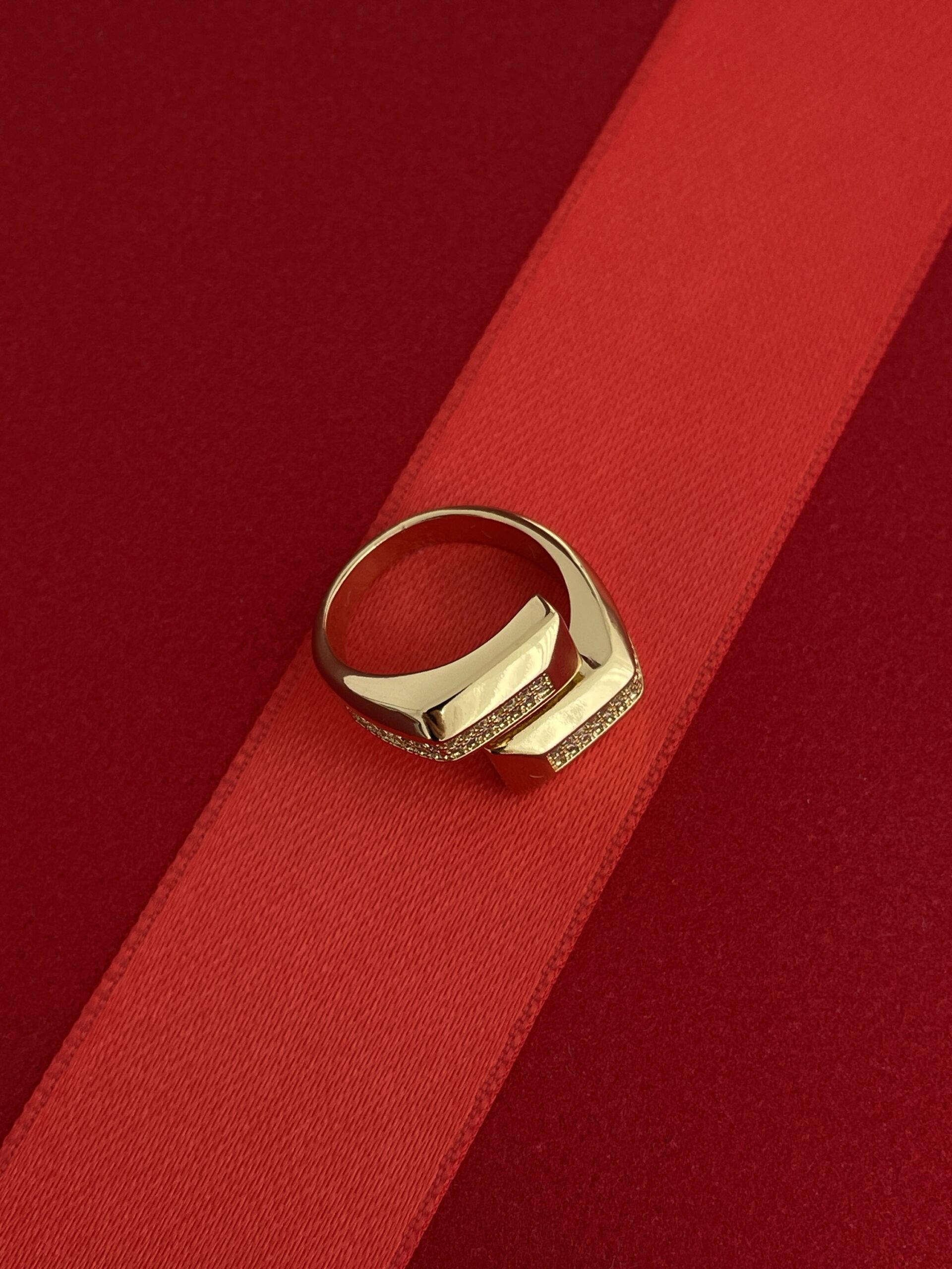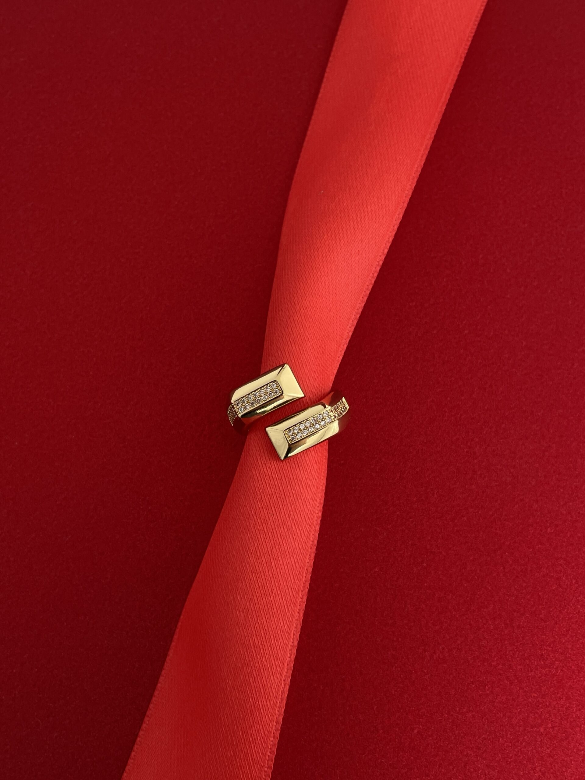 NS-Zirkon Taşlı Ayrık Dörtgen Tasarım Ayarlanabilir Gold Yüzük
