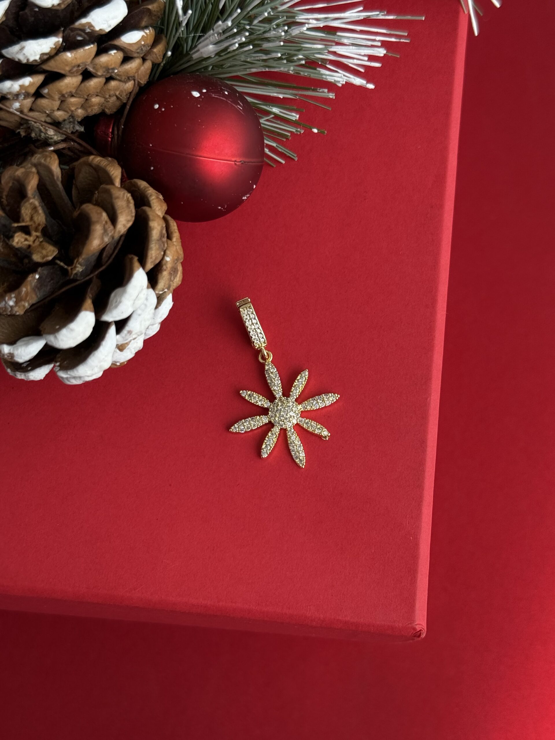 NS-Zirkon Taşlı Çiçek Tasarım Gold Charm Uç