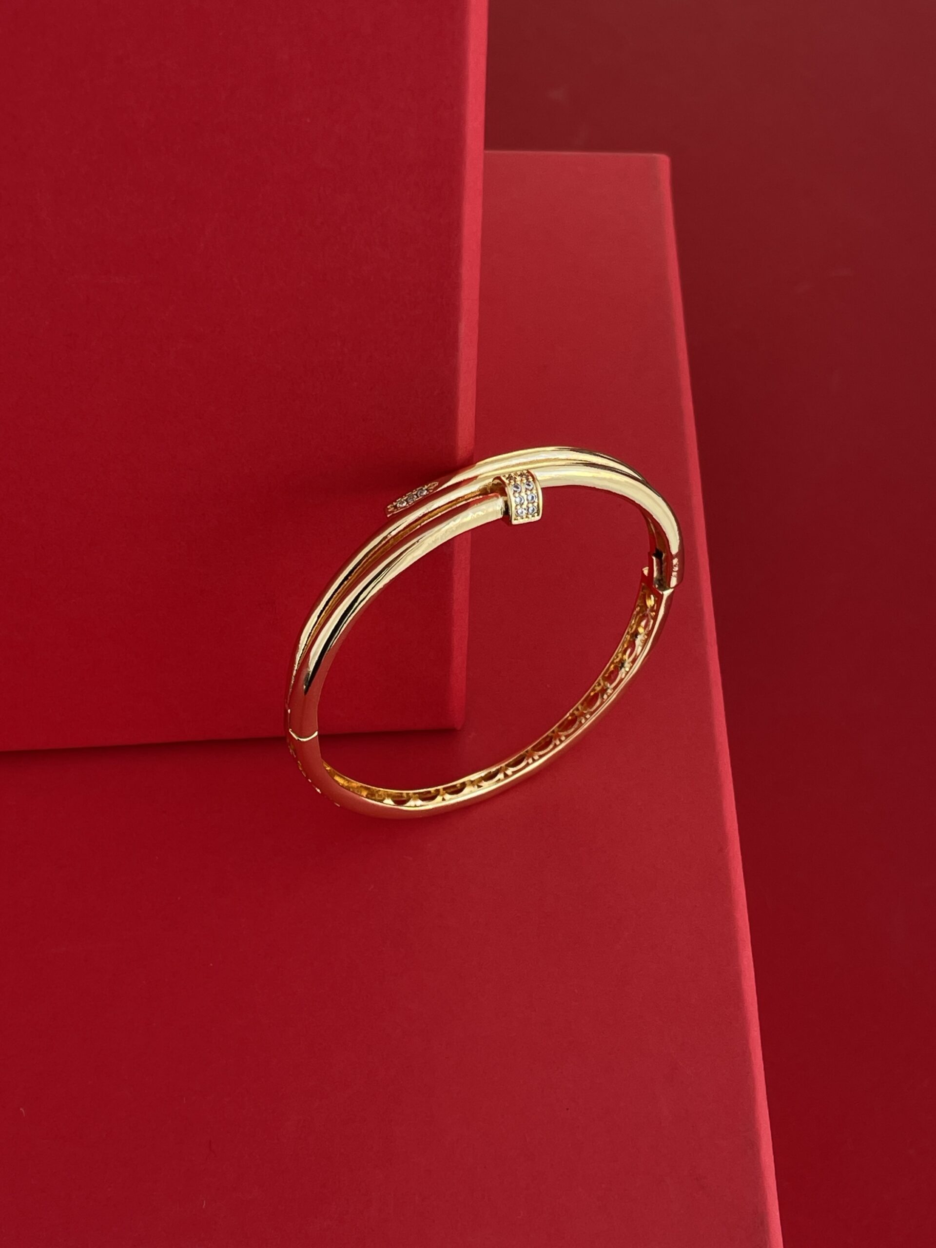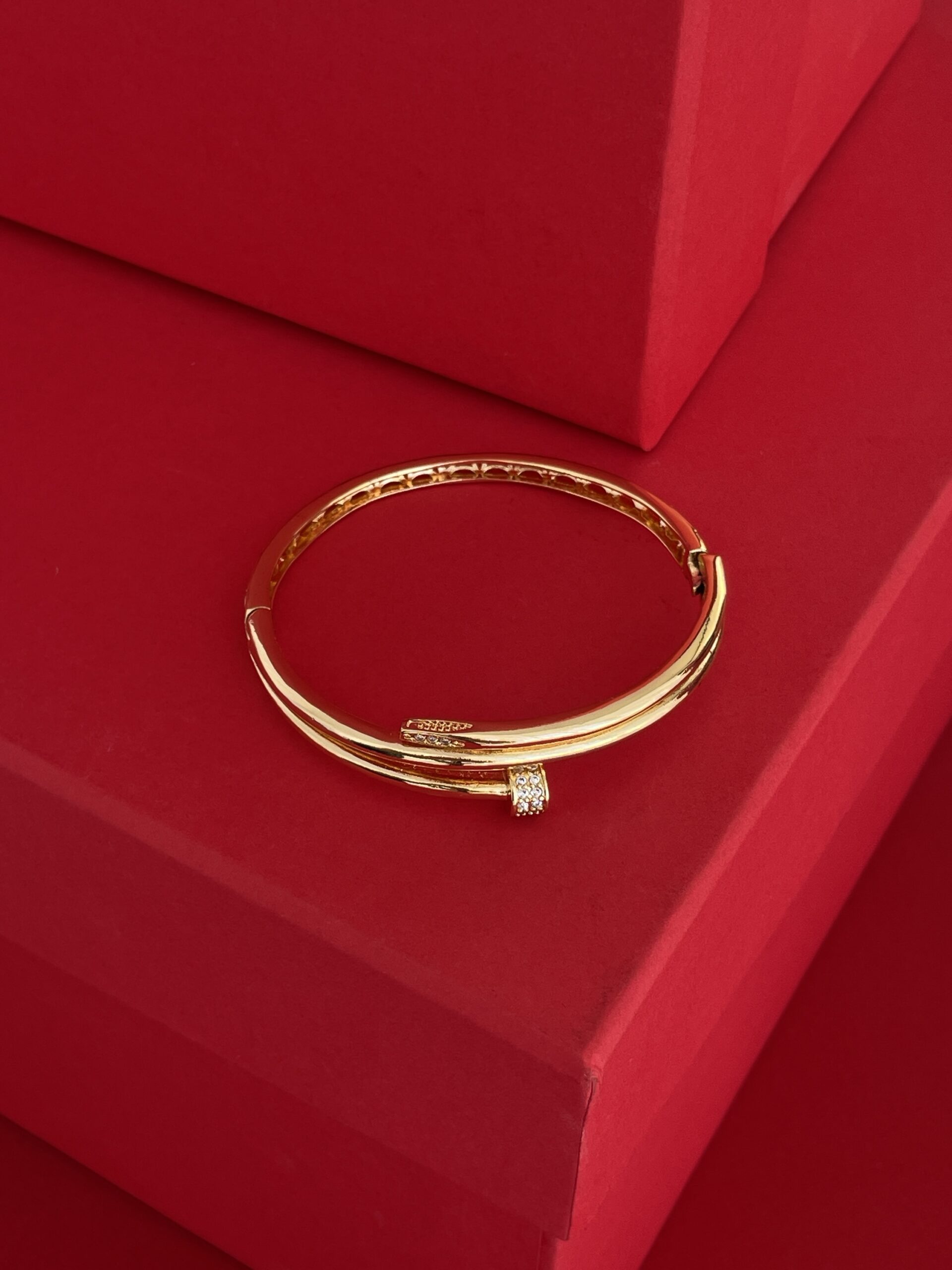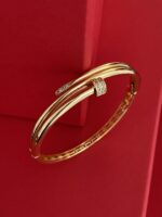 NS-Zirkon Taşlı Çivi Tasarım Gold Kelepçe Bileklik