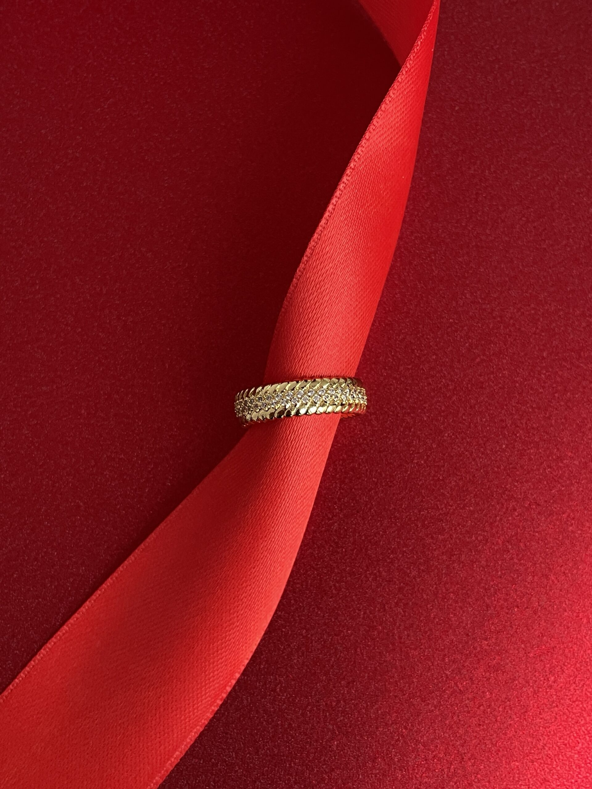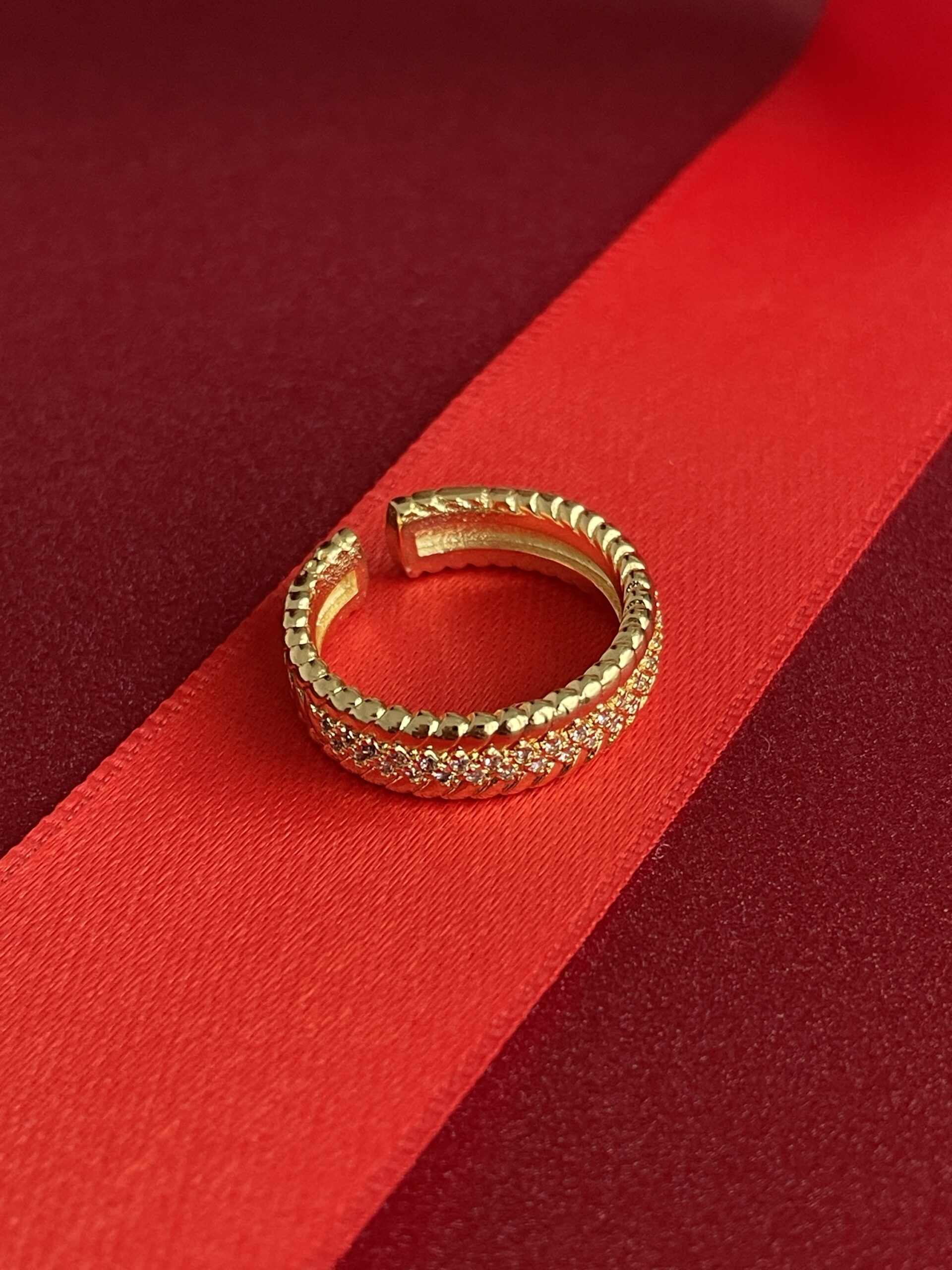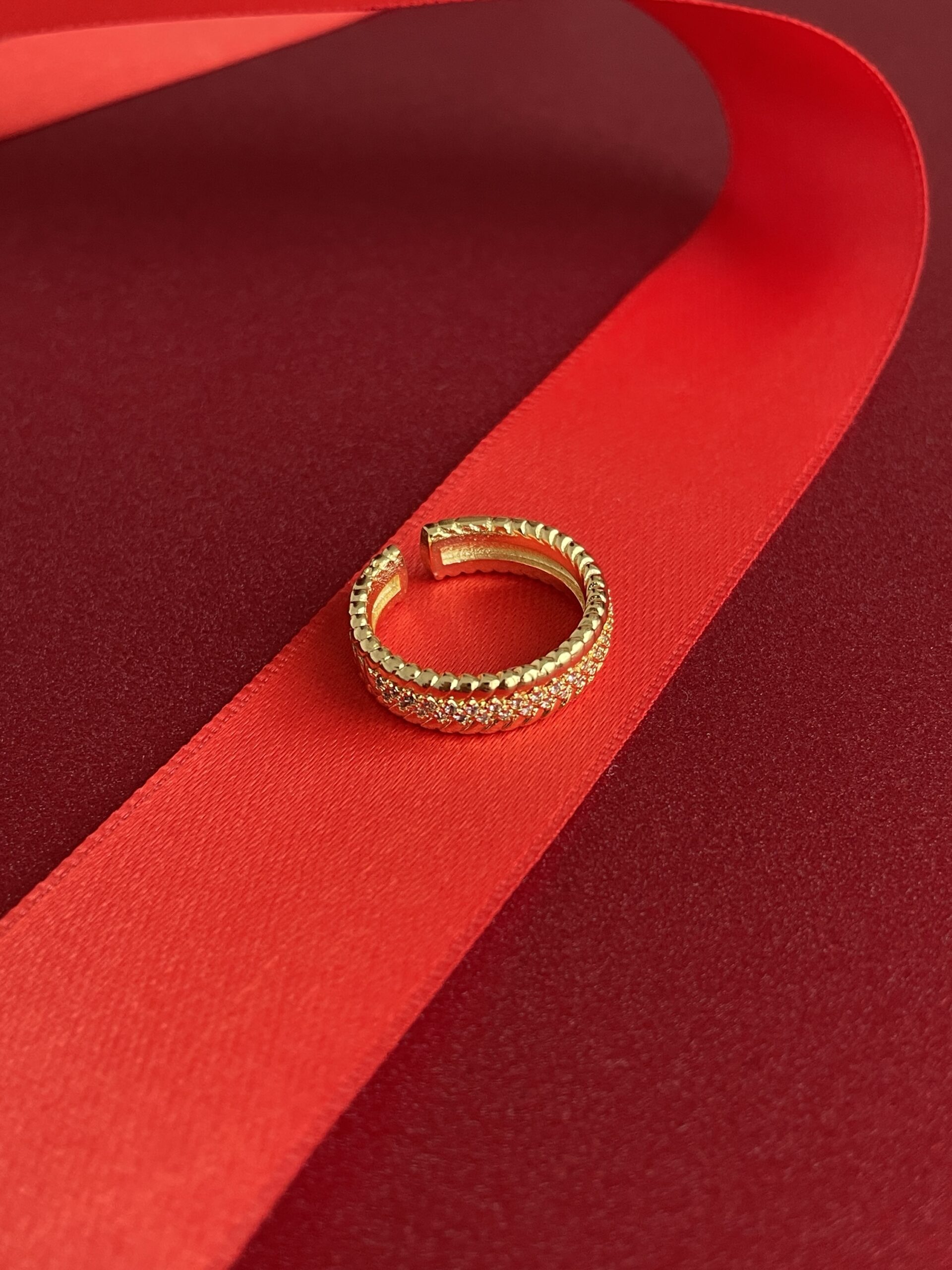 NS-Zirkon Taşlı Desenli Ayarlanabilir Gold Yüzük