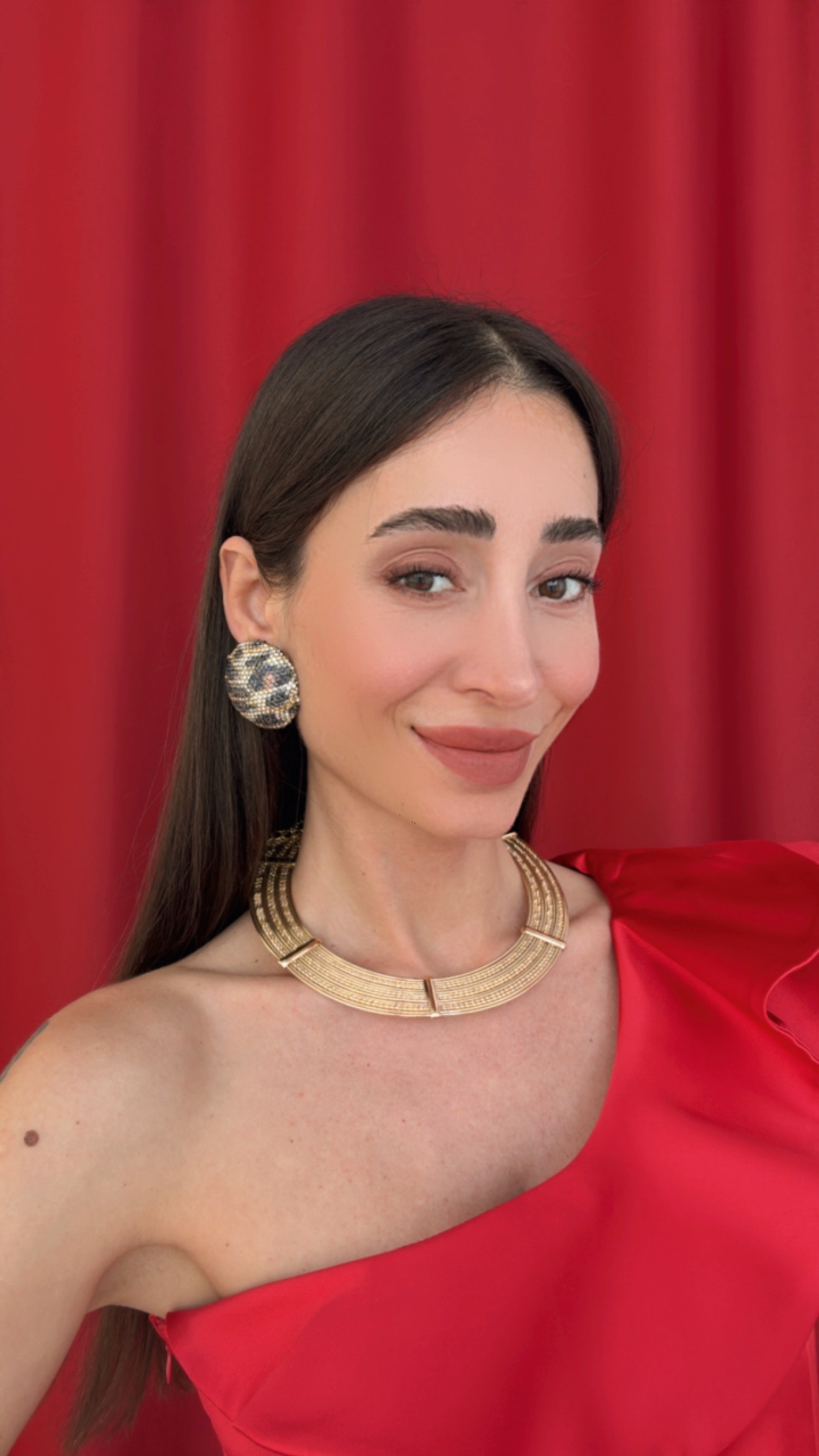 NS-Zirkon Taşlı Yuvarlak Tasarım Gold Leopar Küpe