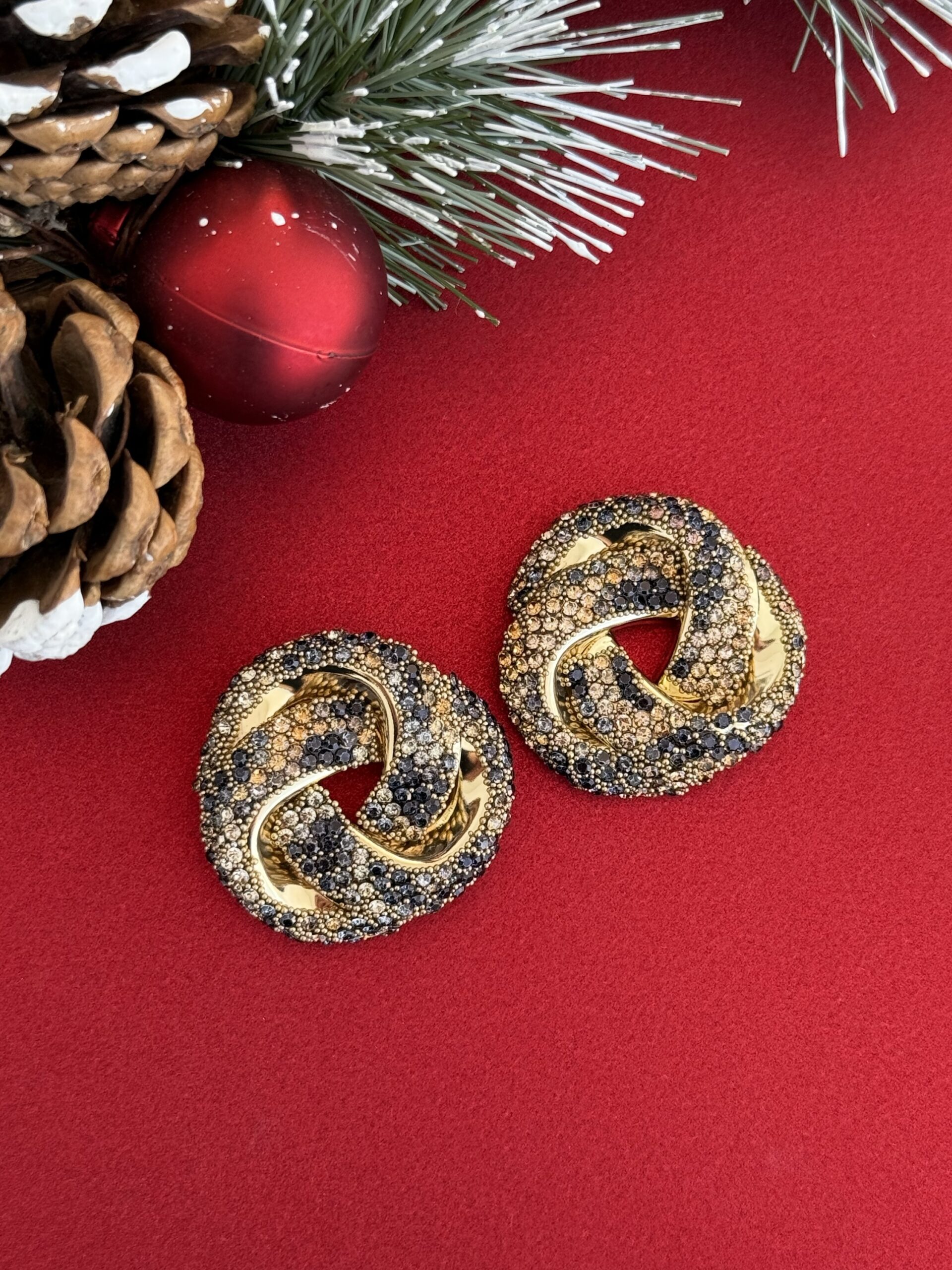 NS-Zirkon Taşlı Gül Tasarım Gold Leopar Küpe