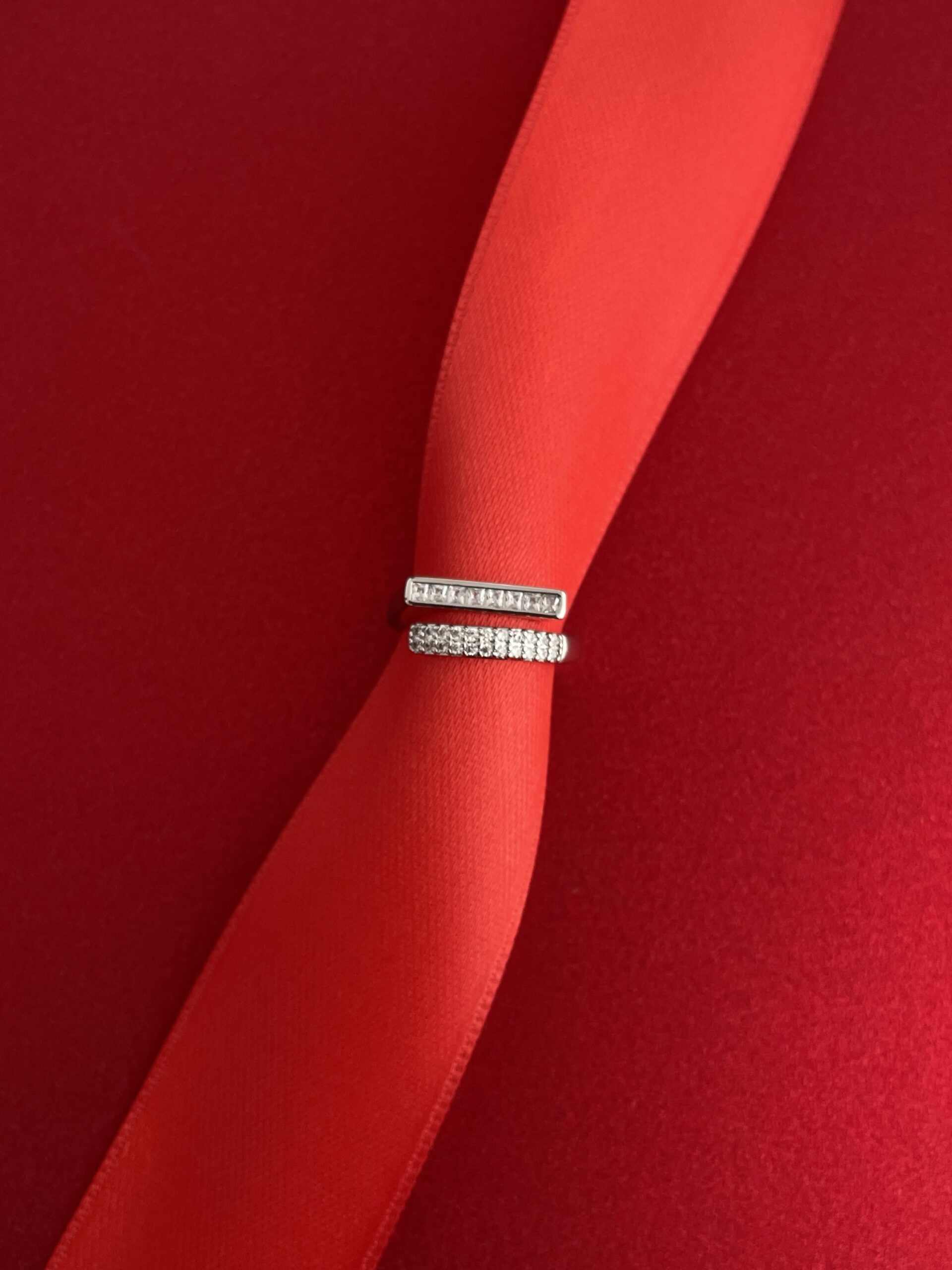NS-Zirkon Taşlı İkili Baget Taş Ayarlanabilir Gümüş Yüzük