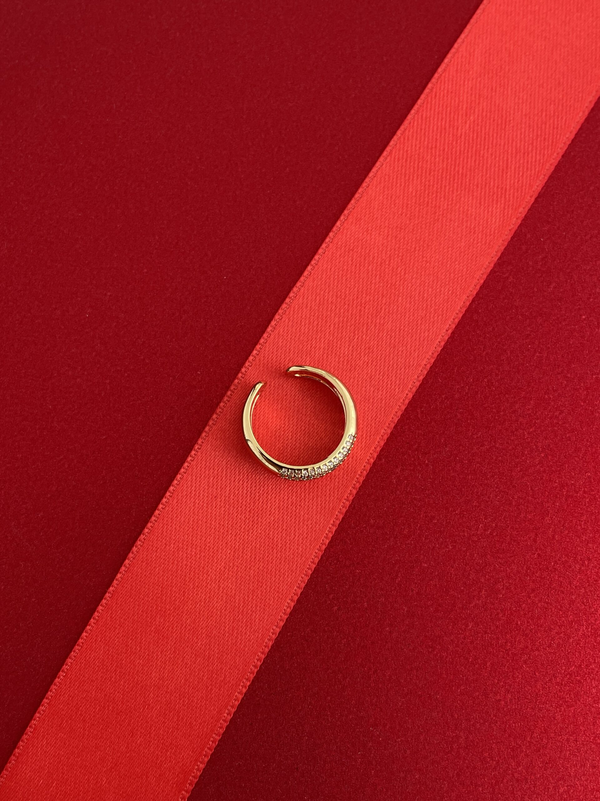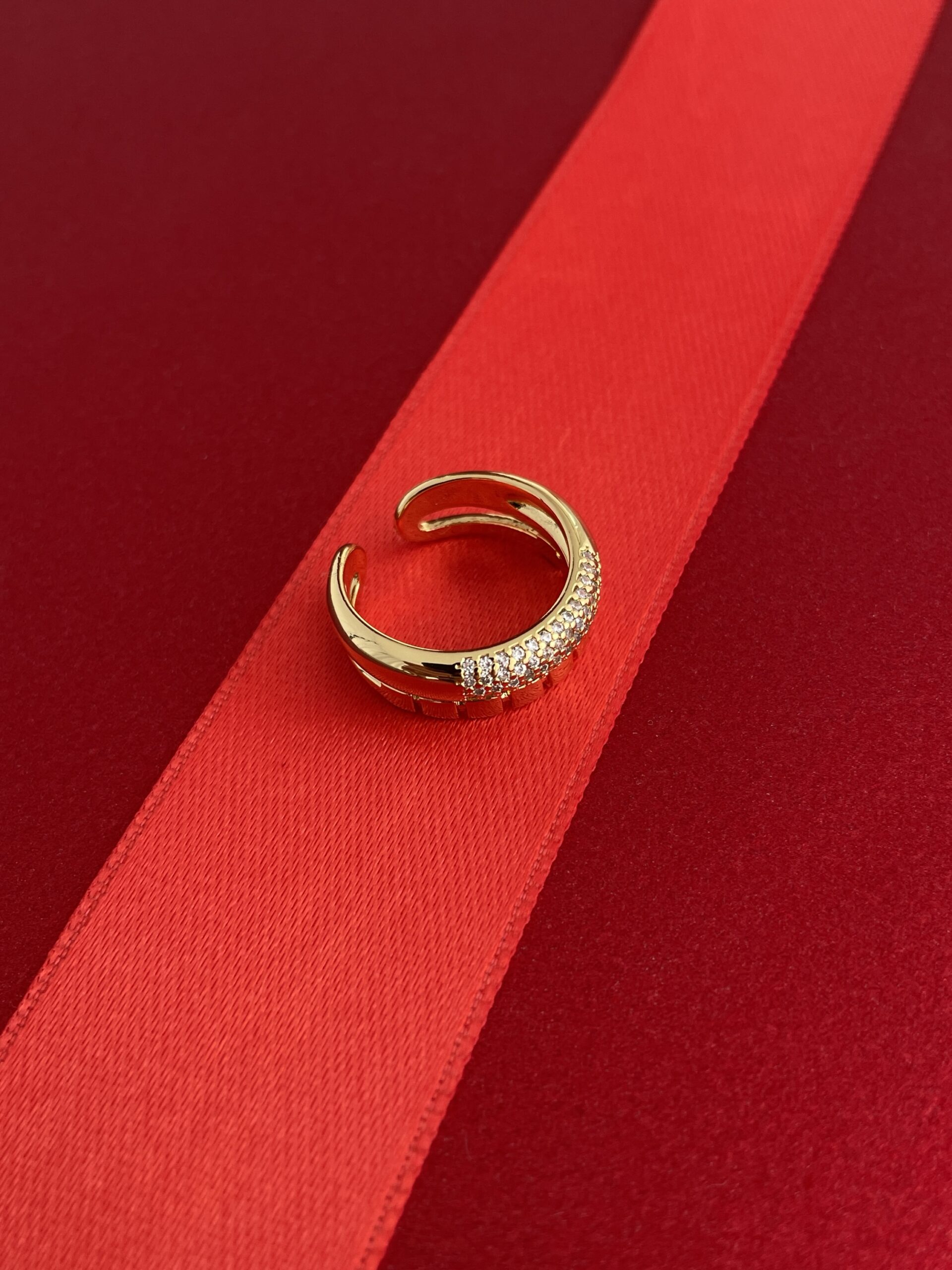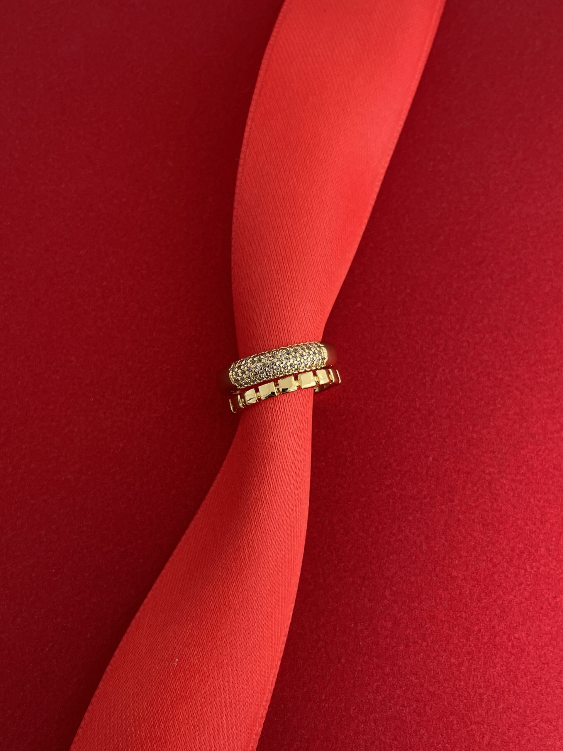 NS-Zirkon Taşlı İkili Kare Tasarım Ayarlanabilir Gold Yüzük