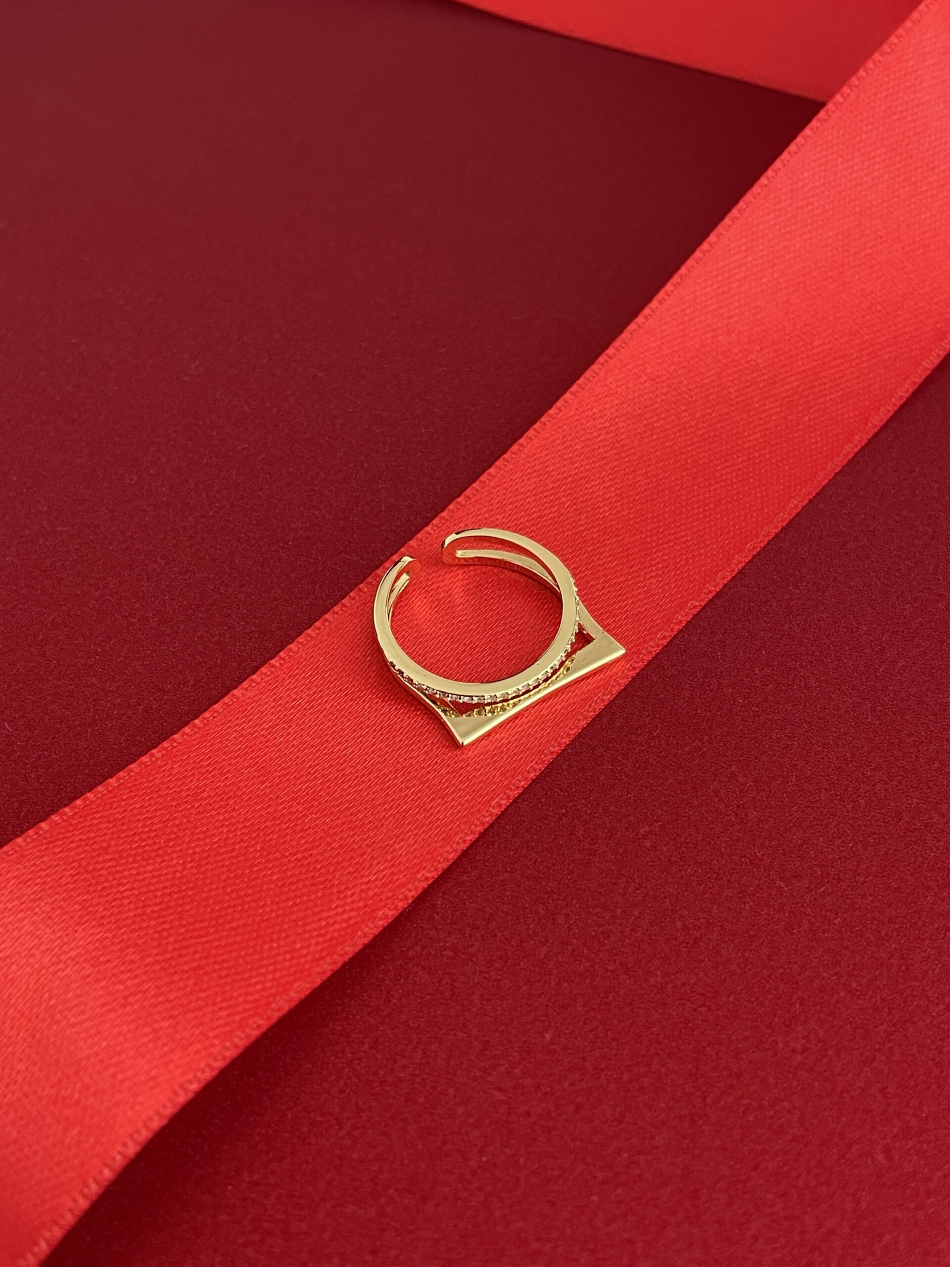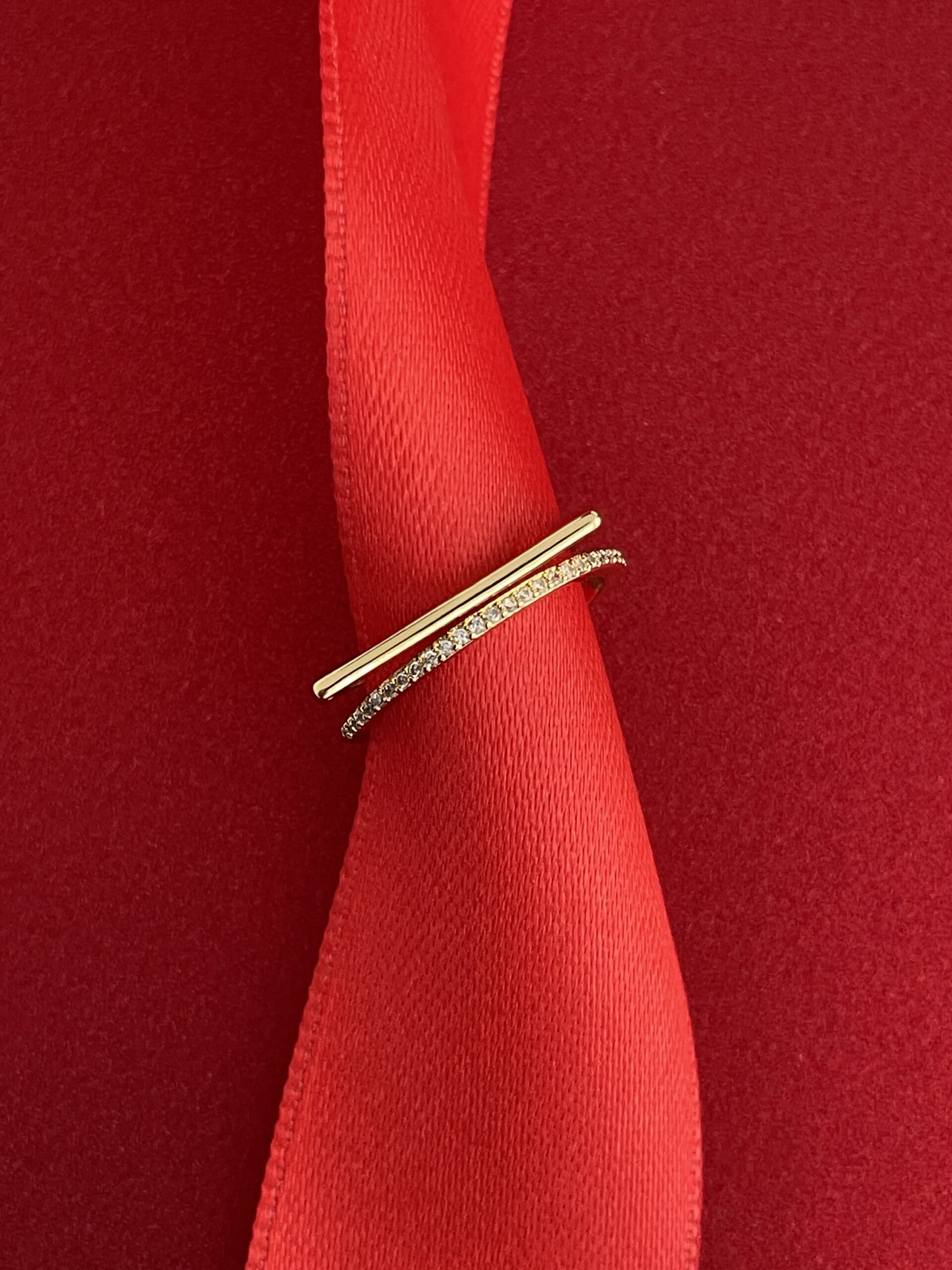NS-Zirkon Taşlı İnce İkili Ayarlanabilir Gold Yüzük