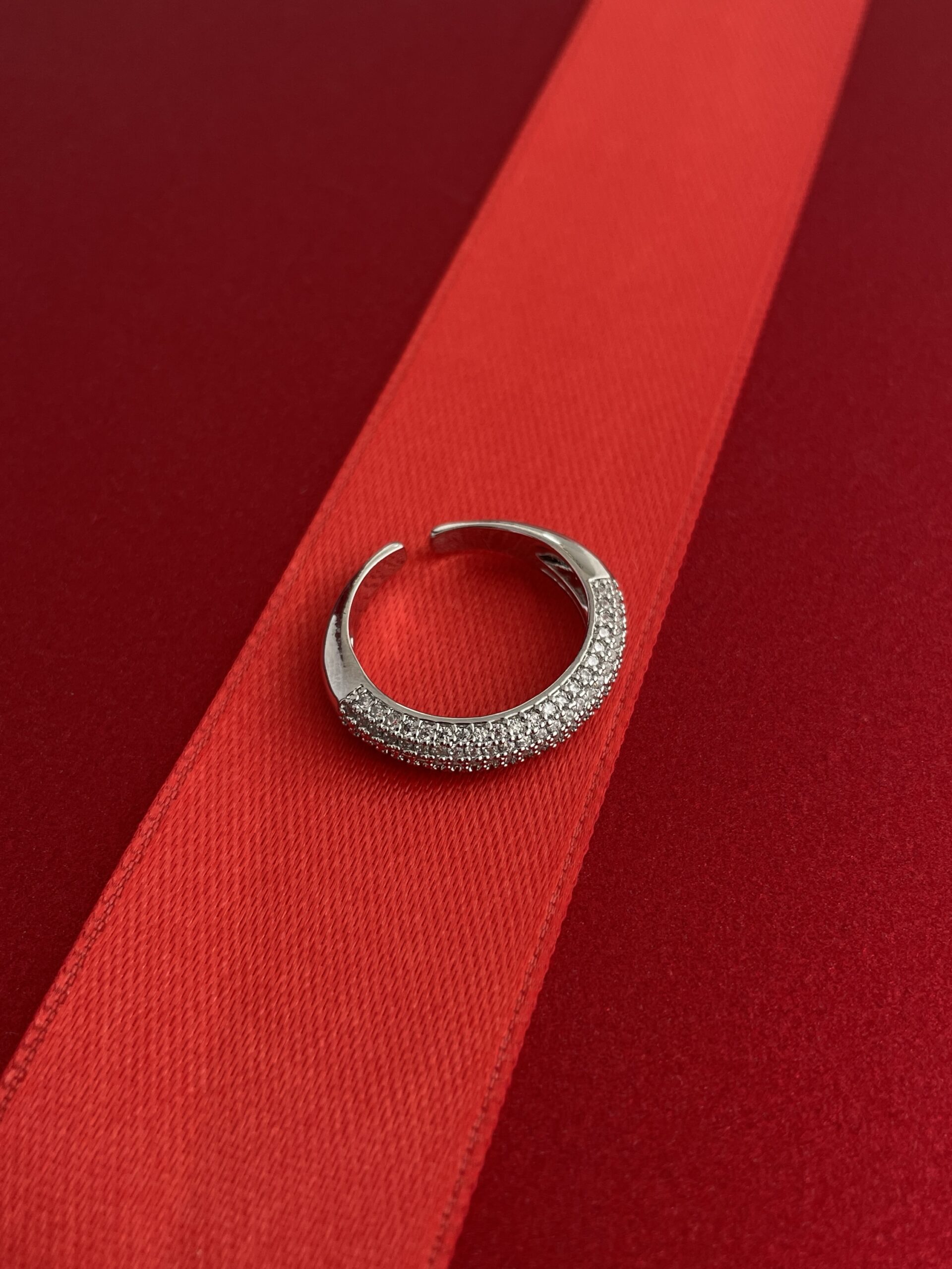 NS-Zirkon taşlı Kalın Oval Ayarlanabilir Gümüş Yüzük