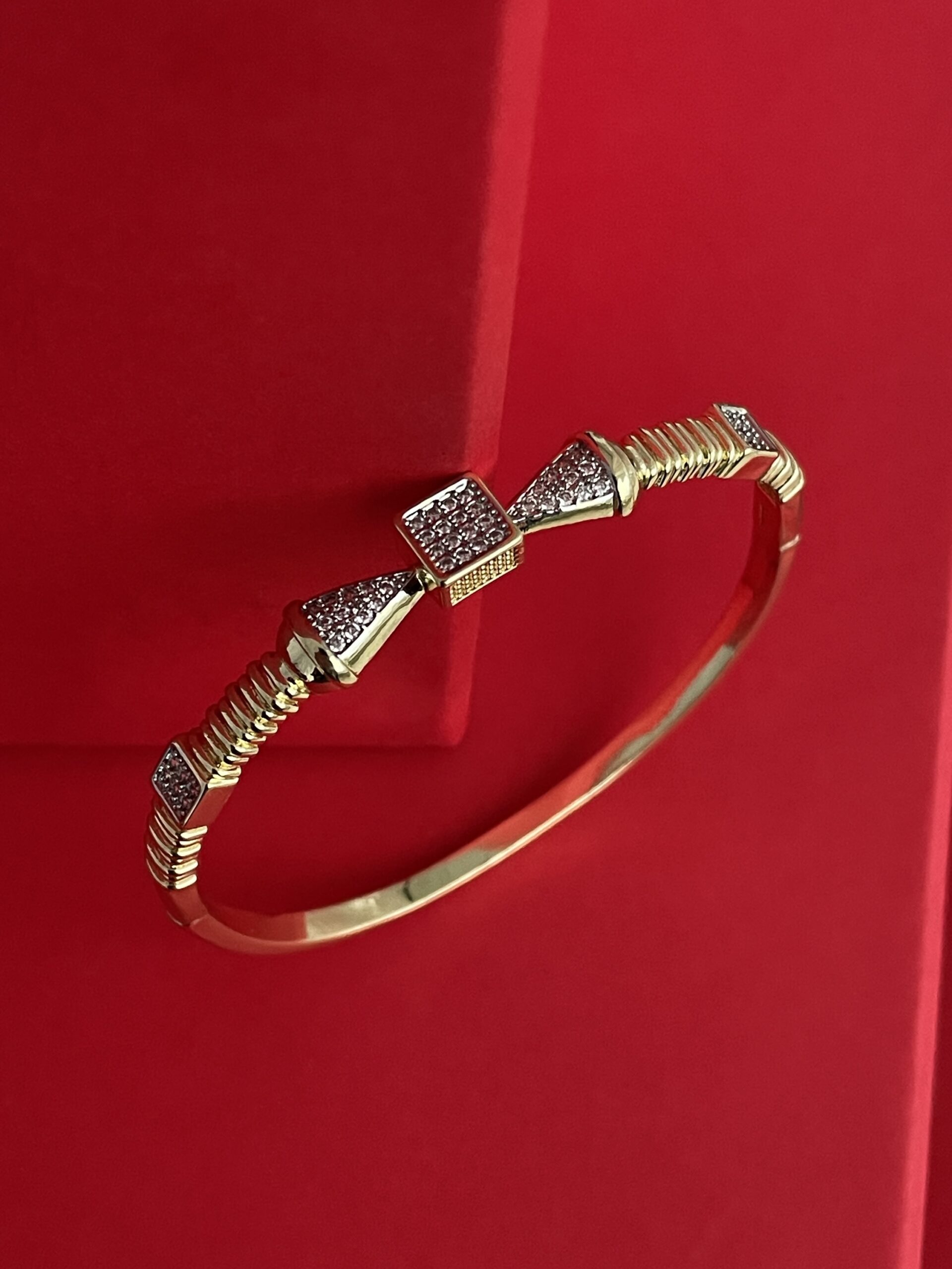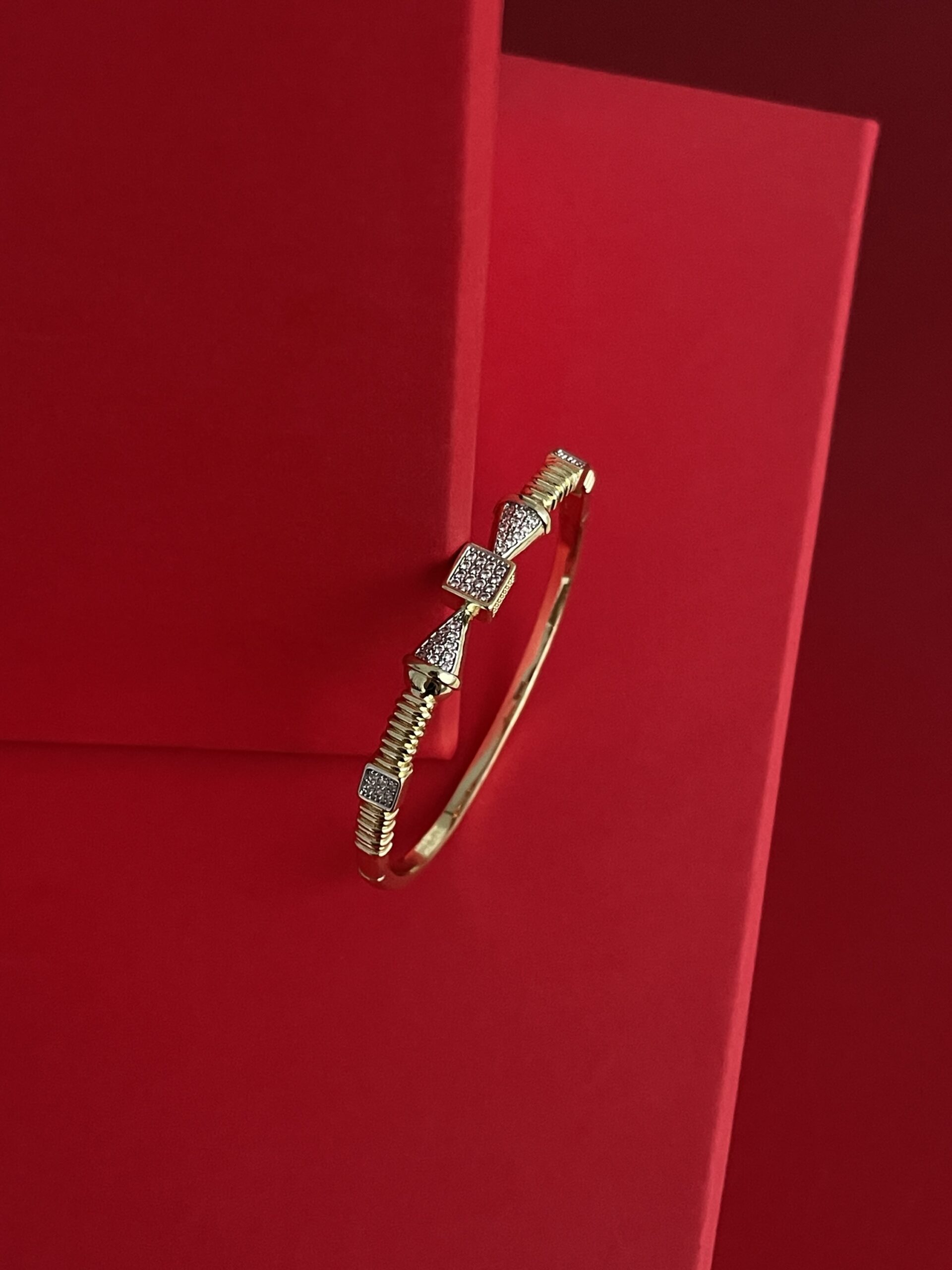 NS-Zirkon Taşlı Kare & Üçgen Tasarım Gold Kelepçe Bileklik