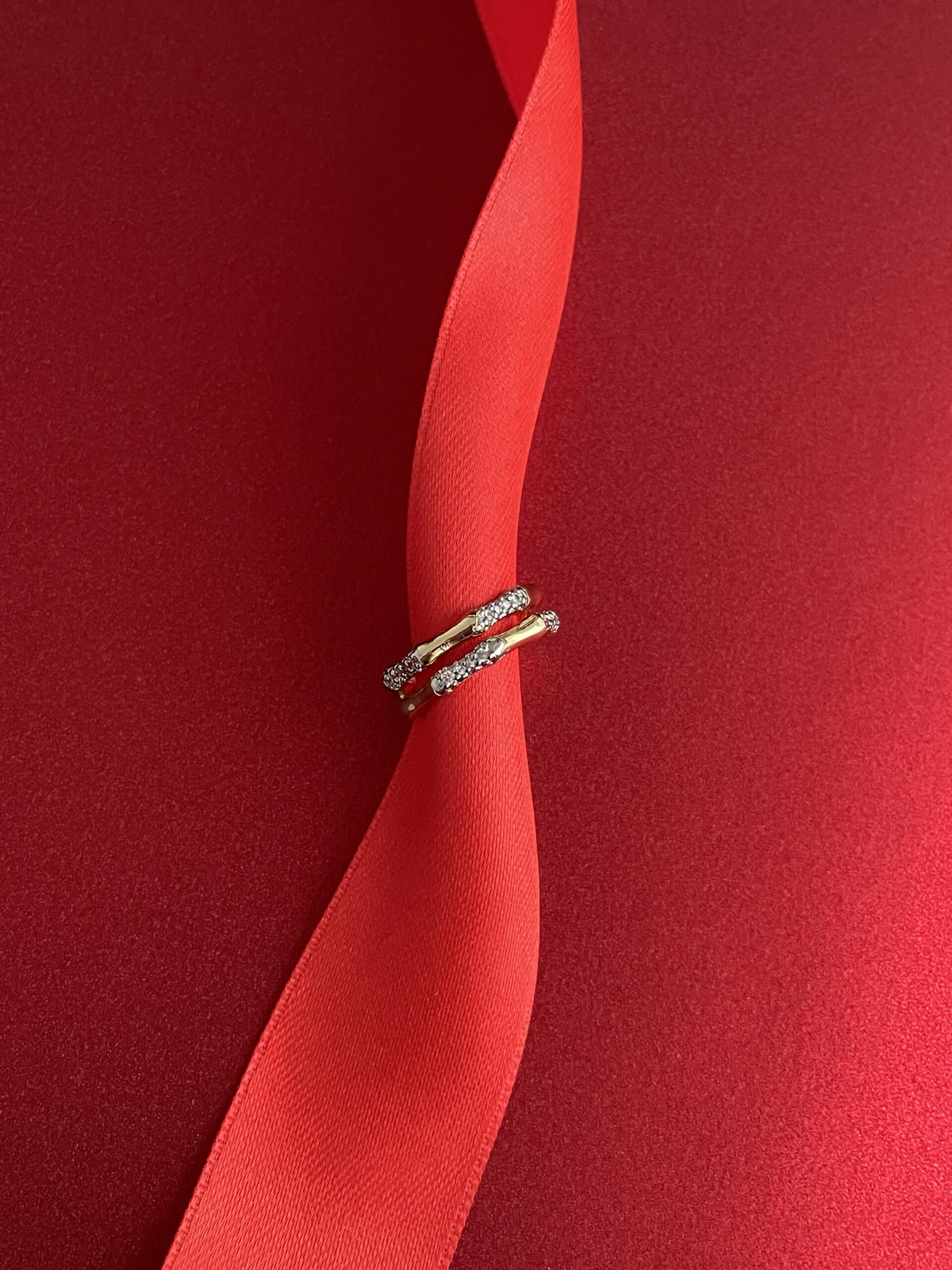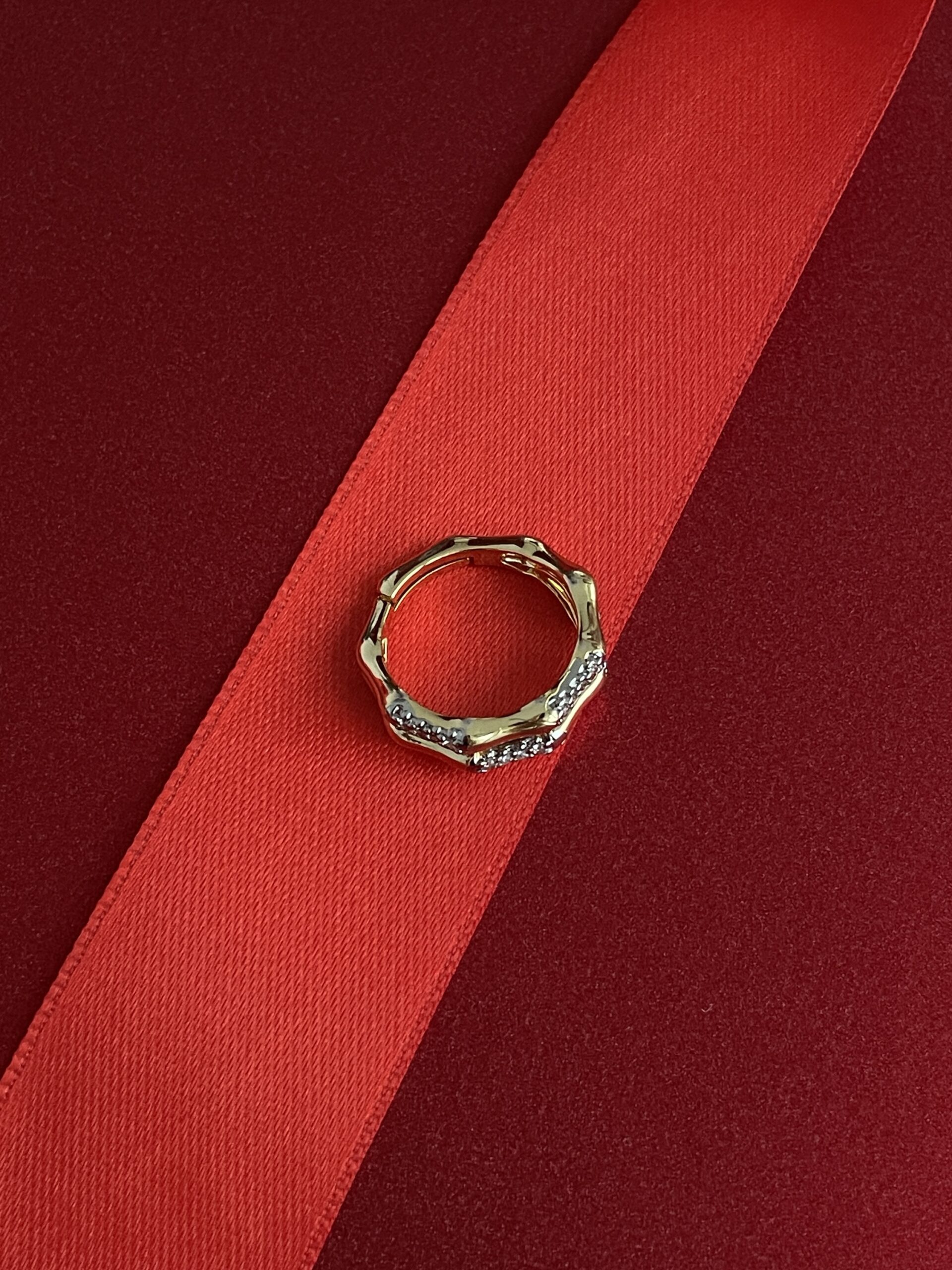 NS-Zirkon Taşlı Kemik Tasarım Ayarlanabilir Gold Yüzük