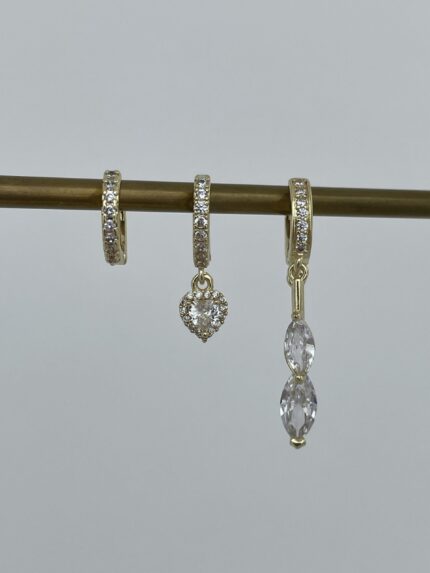 NS-Zirkon Taşlı Küçük İkili Dikdörtgen Gold Küpe