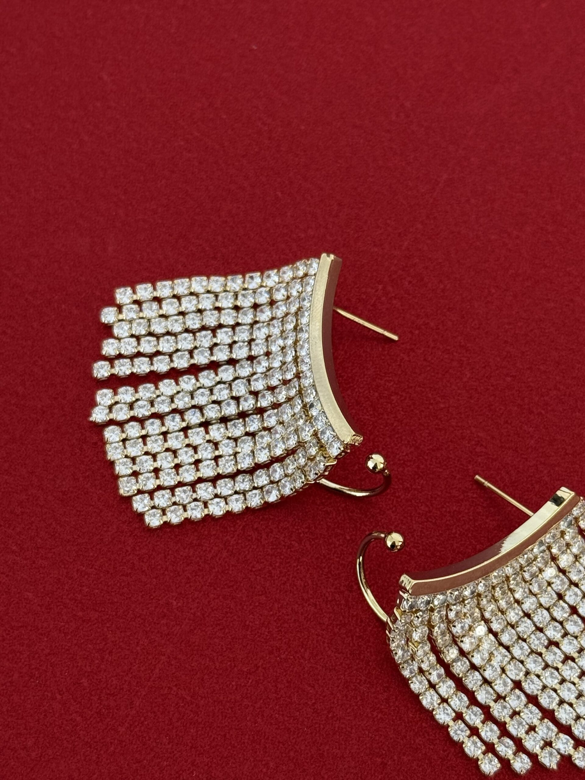 NS-Zirkon Taşlı Kulak Geçmeli Sallantılı Kısa Gold Küpe