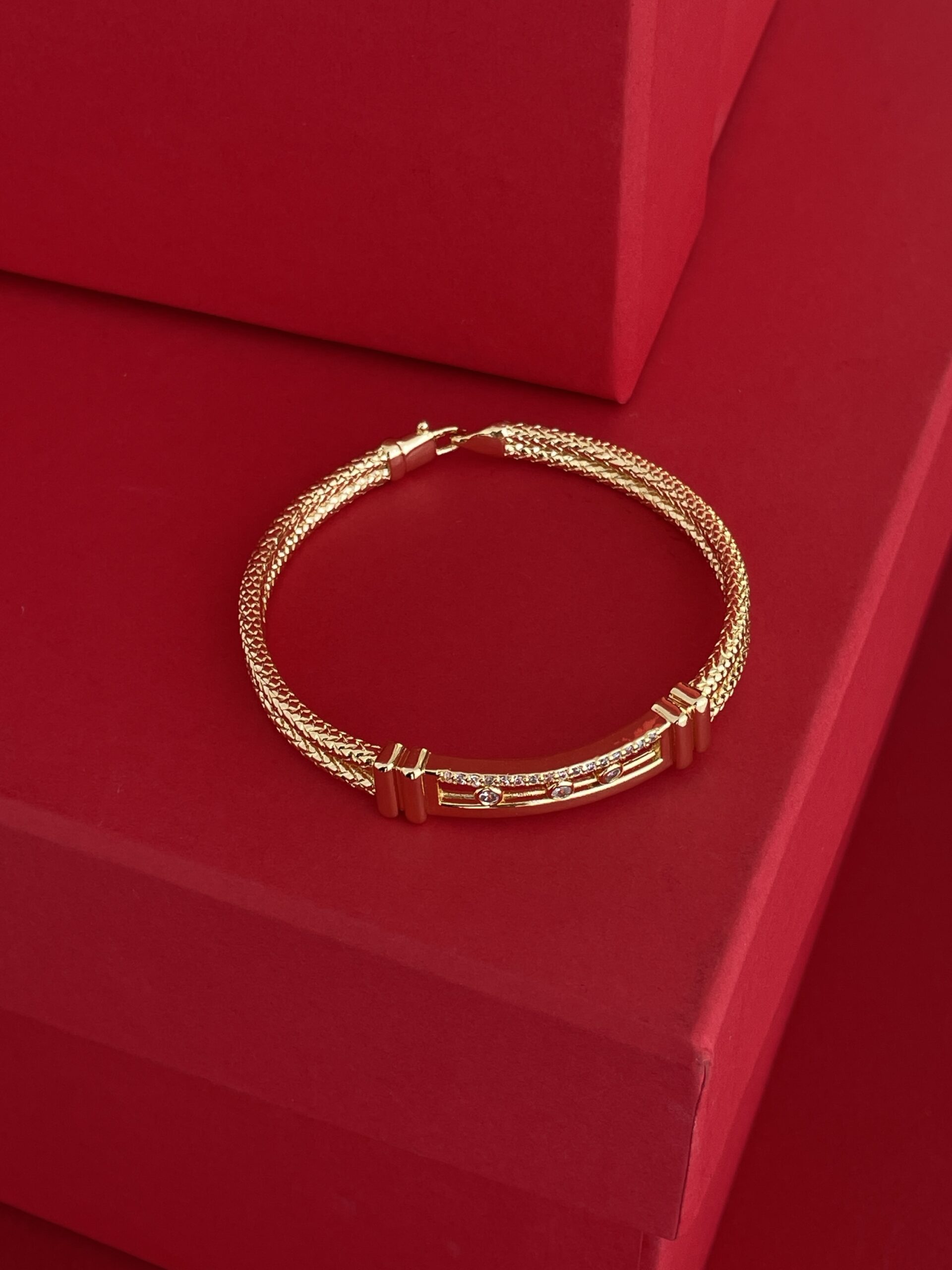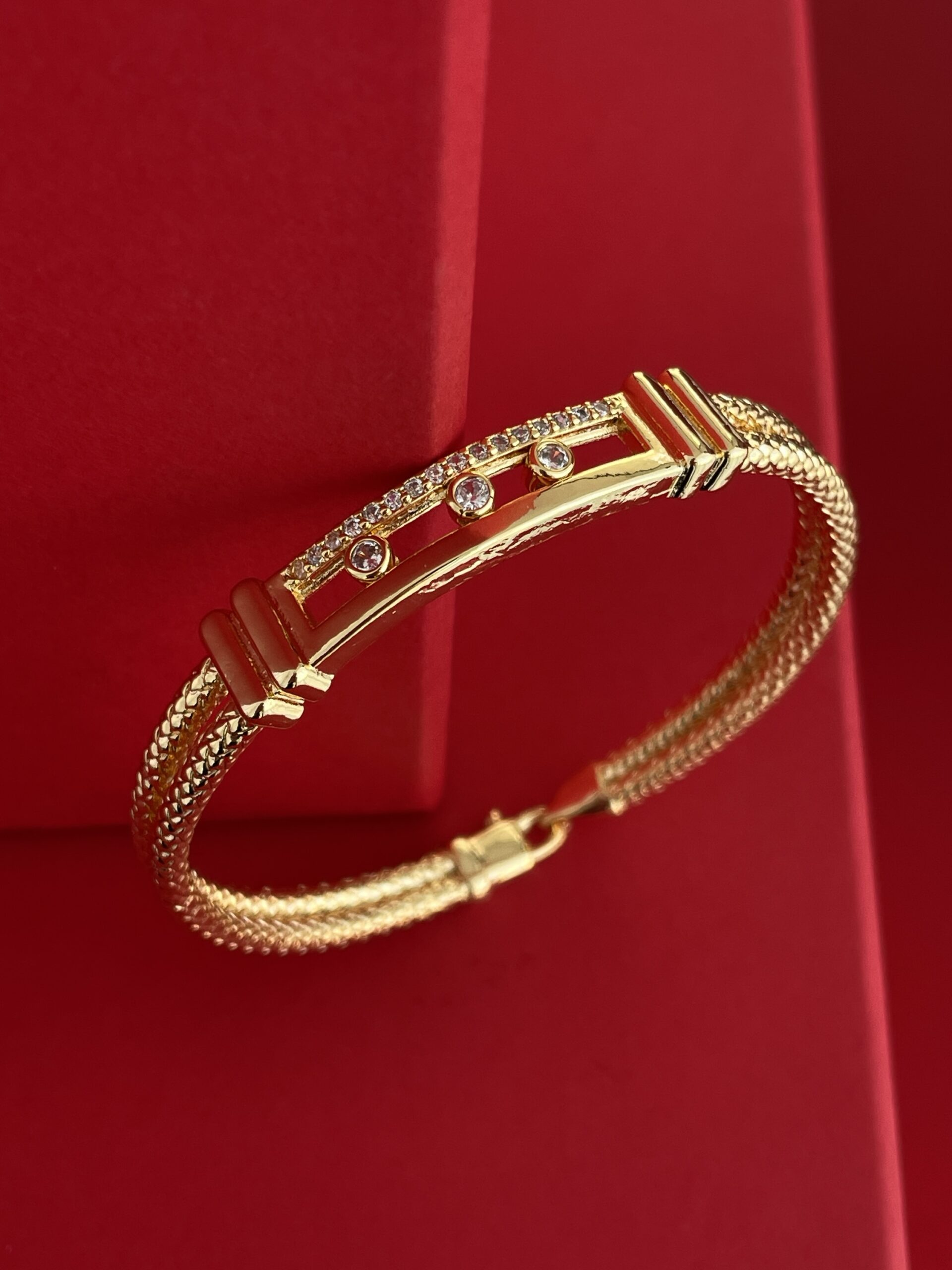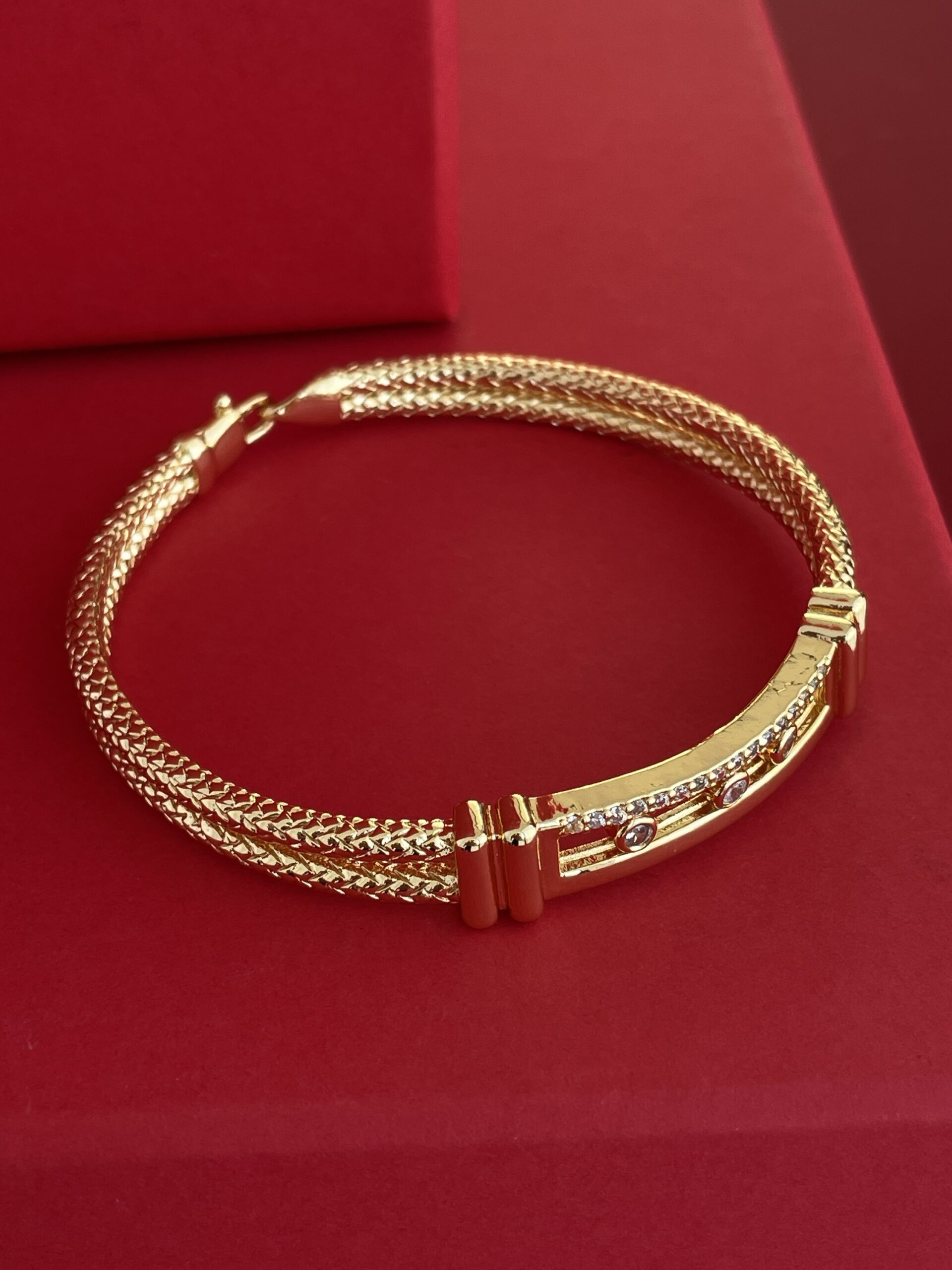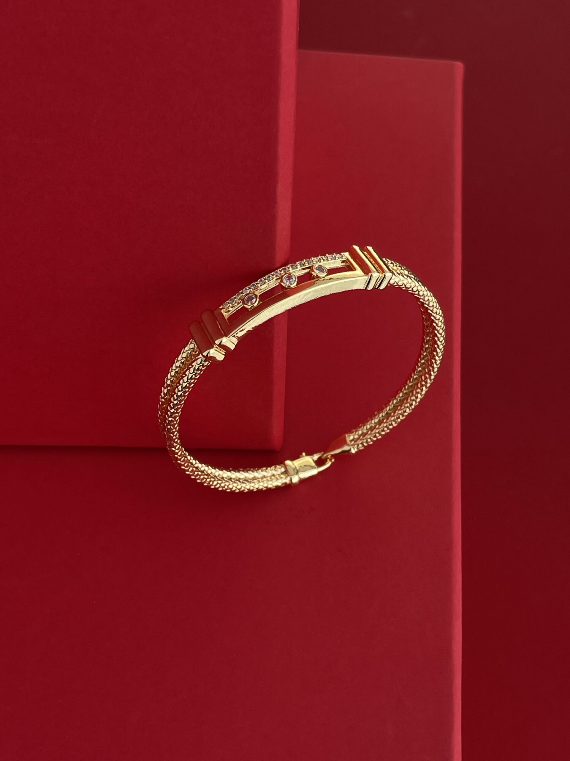 NS-Zirkon Taşlı Marka Model Gold Kelepçe Bileklik